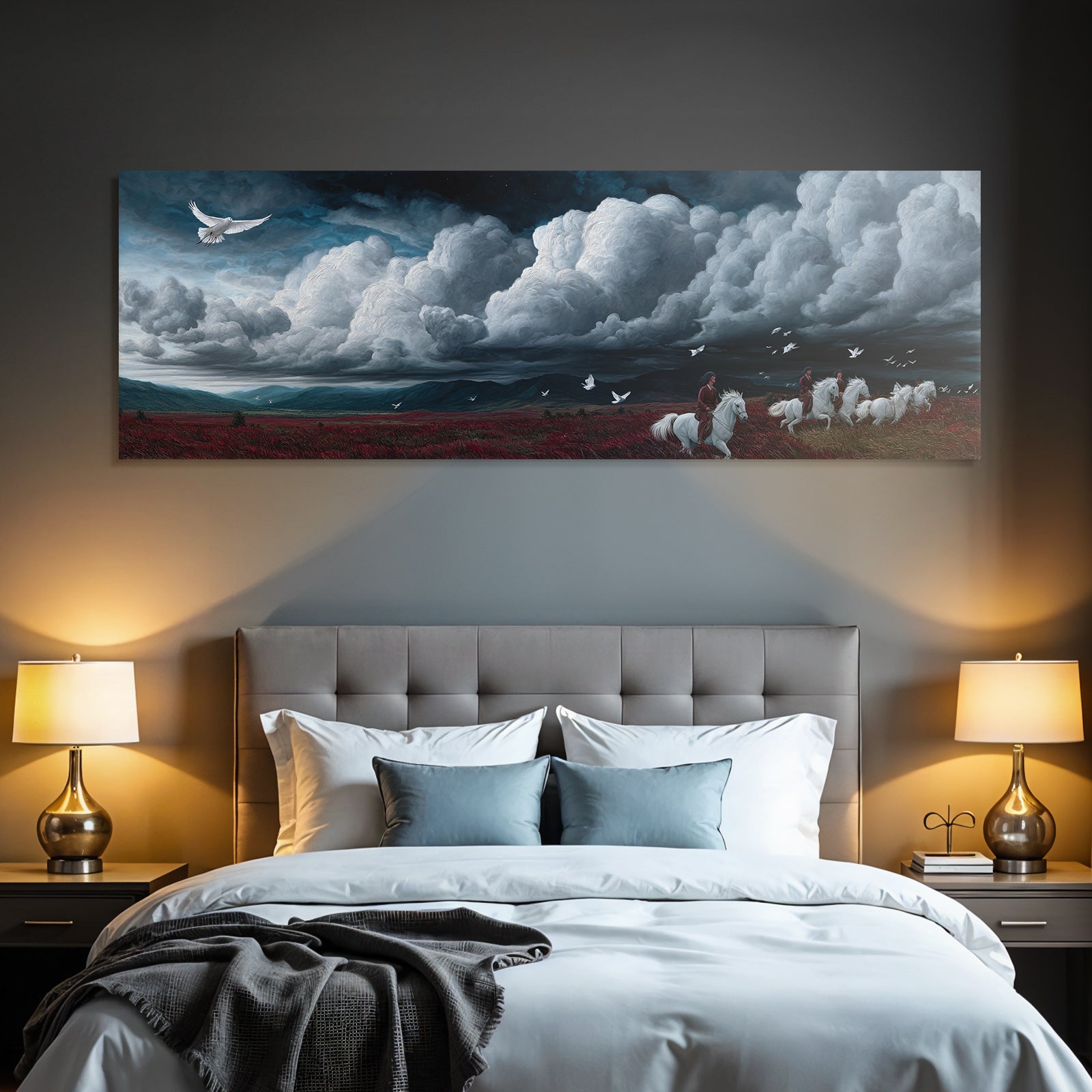 Pferd Und Maedchen Im Landscape Mit Mond Und Bunten Himmel | Collagen | Kunstgattungen Pferd Und Maedchen Im Landscape Mit Mond Und Bunten Himmel