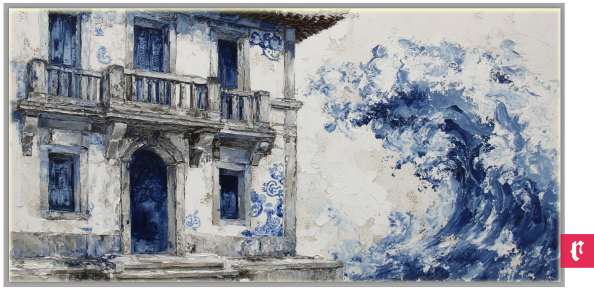 Voegel Im Wasser Mit Blumen Und Stadtansicht | Collagen | Kunstgattungen Voegel Im Wasser Mit Blumen Und Stadtansicht