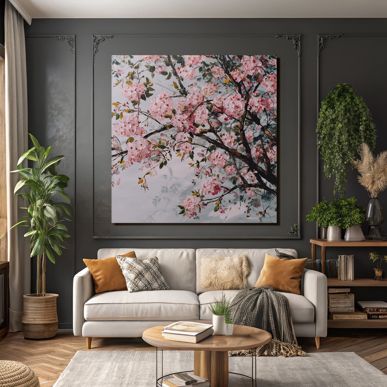 Ein Meisterwerk im Stil Japanische Zierkirsche: „Kirschblütenbaum Frühlingserwachen“ fängt die Atmosphäre und die typischen Elemente dieses Stils ein und wird im FameFrame zum zeitlosen Hingucker.
