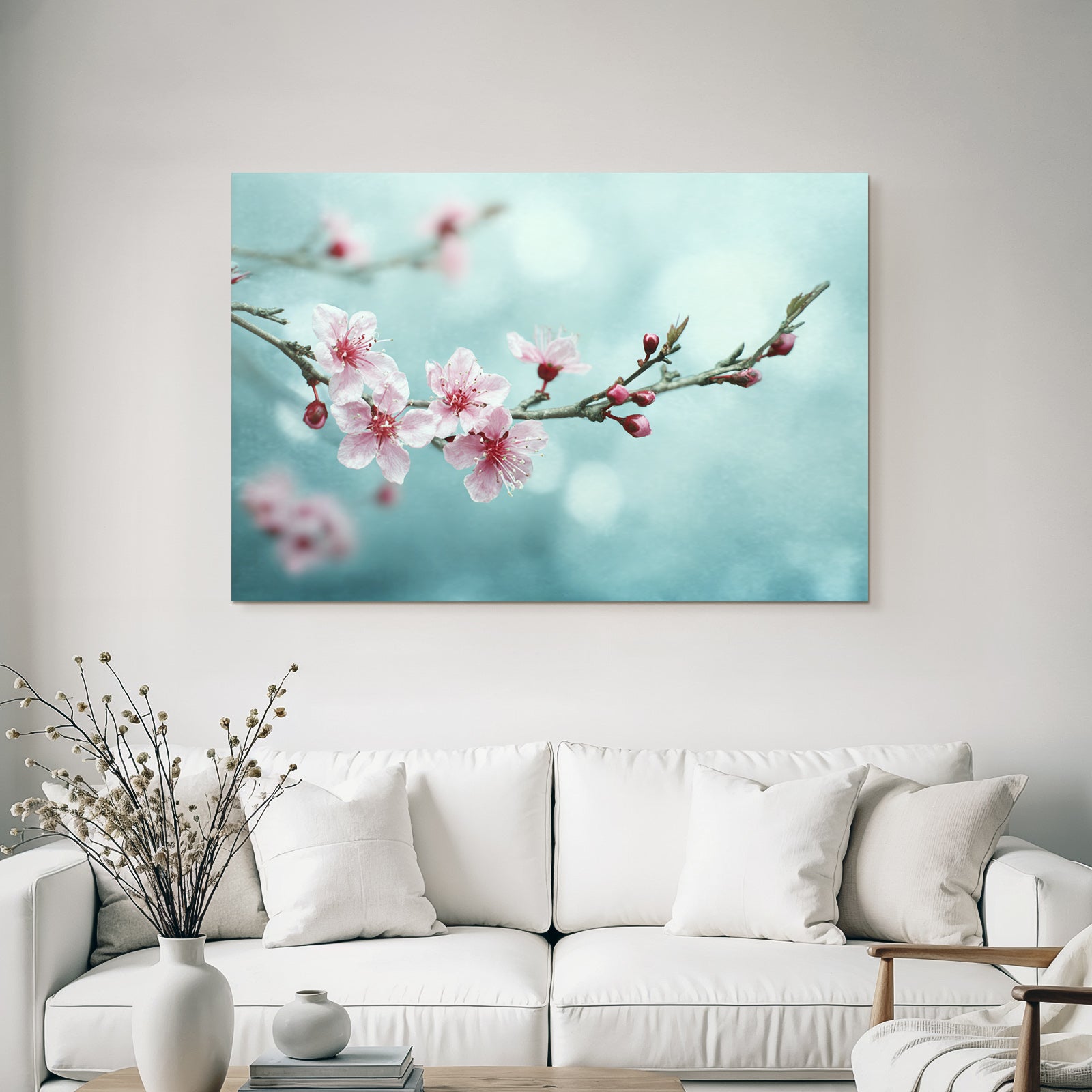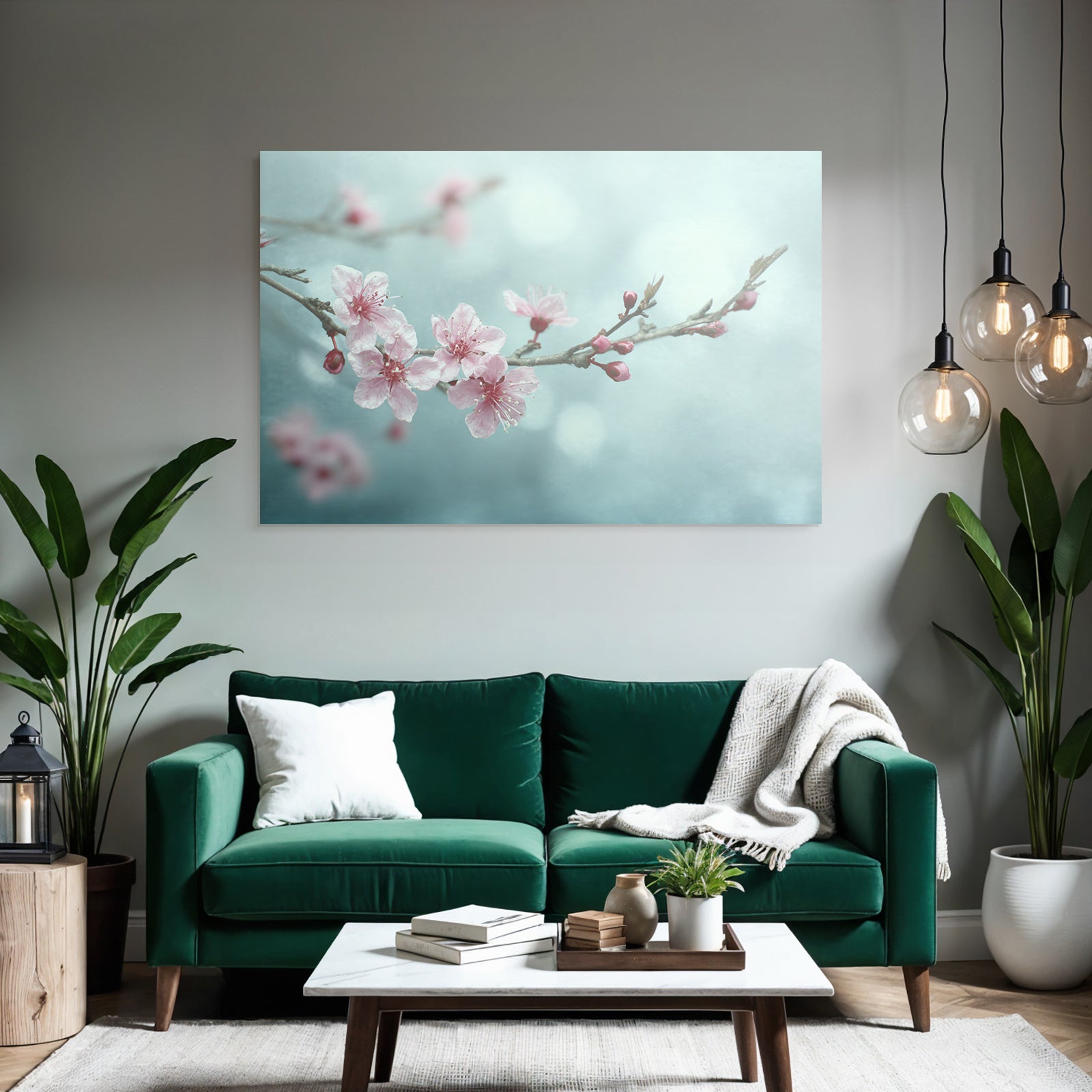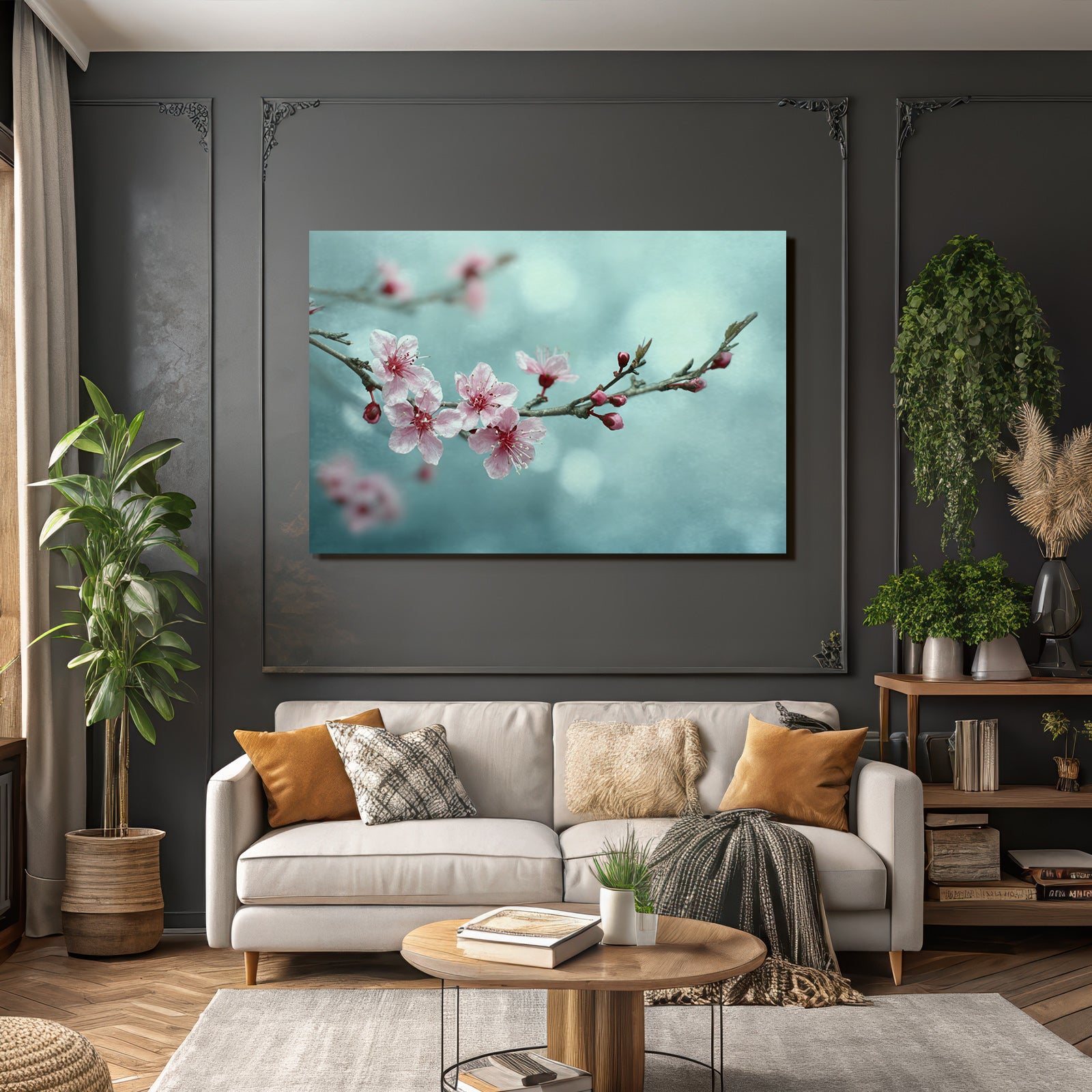 Die Kombination aus dem Motiv „Kirschblütenzweig Vor Weichem Unscharfen Hintergrund“ und dem Stil Japanische Zierkirsche schafft eine Brücke zwischen Klassik und Moderne. Der FameFrame vollendet dieses Zusammenspiel perfekt.