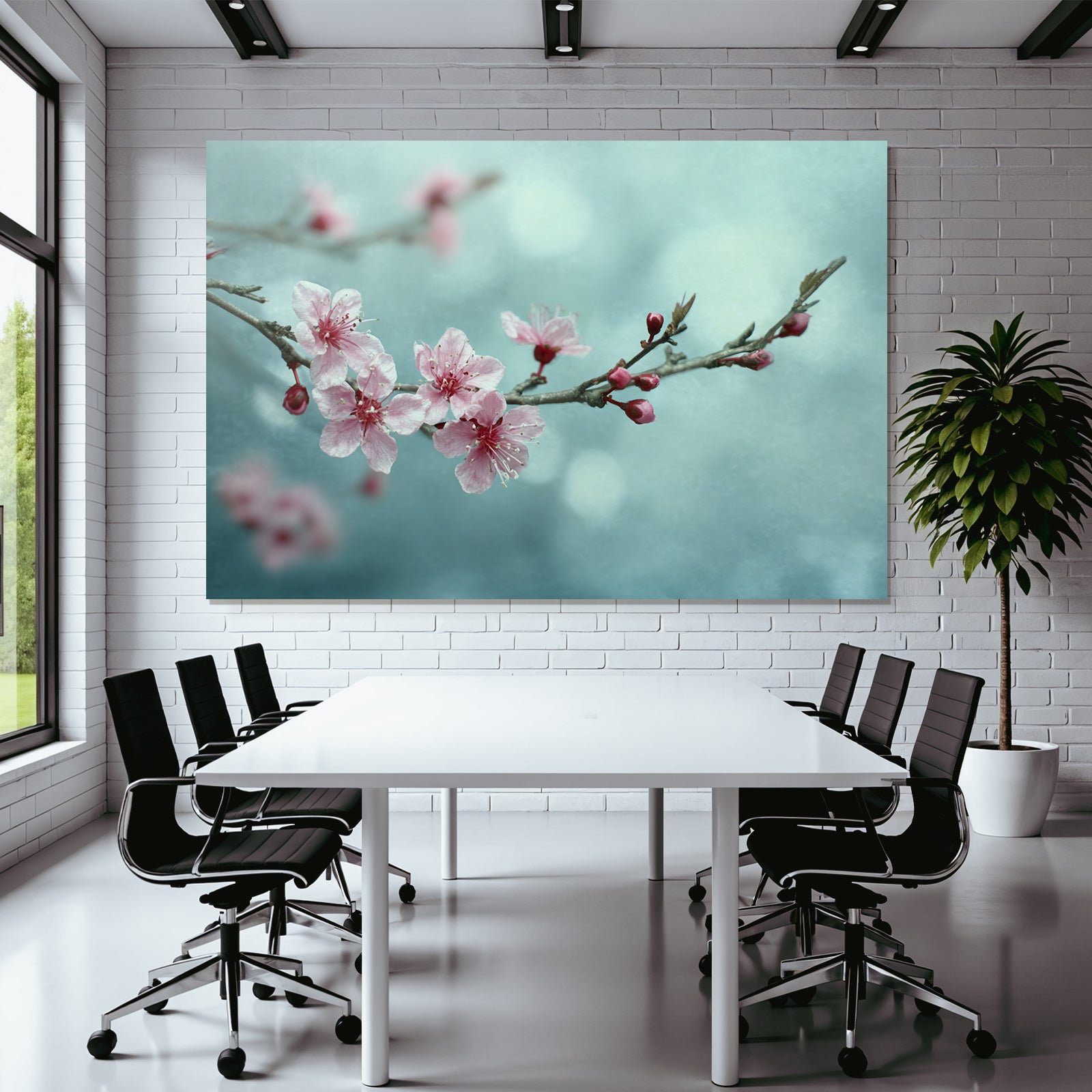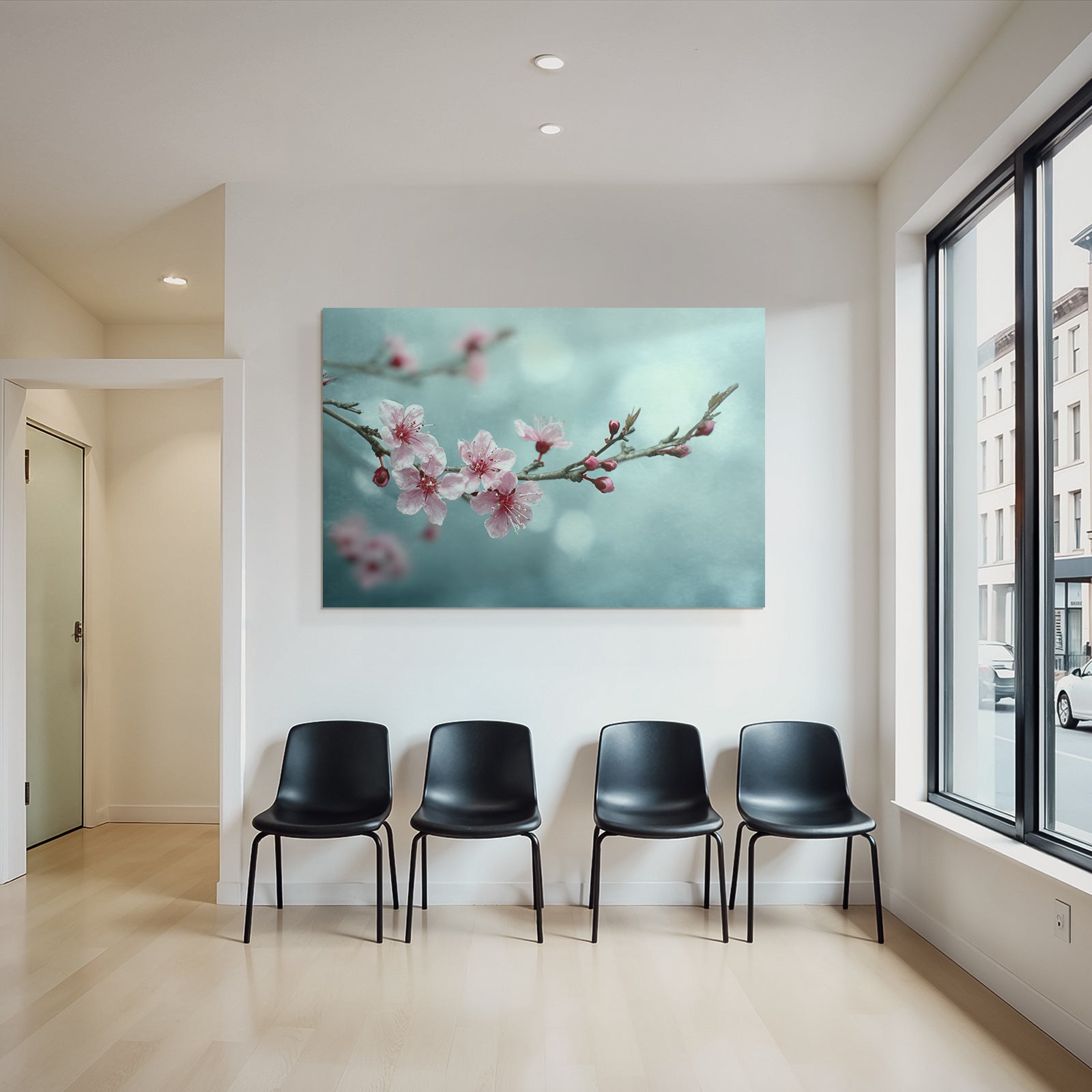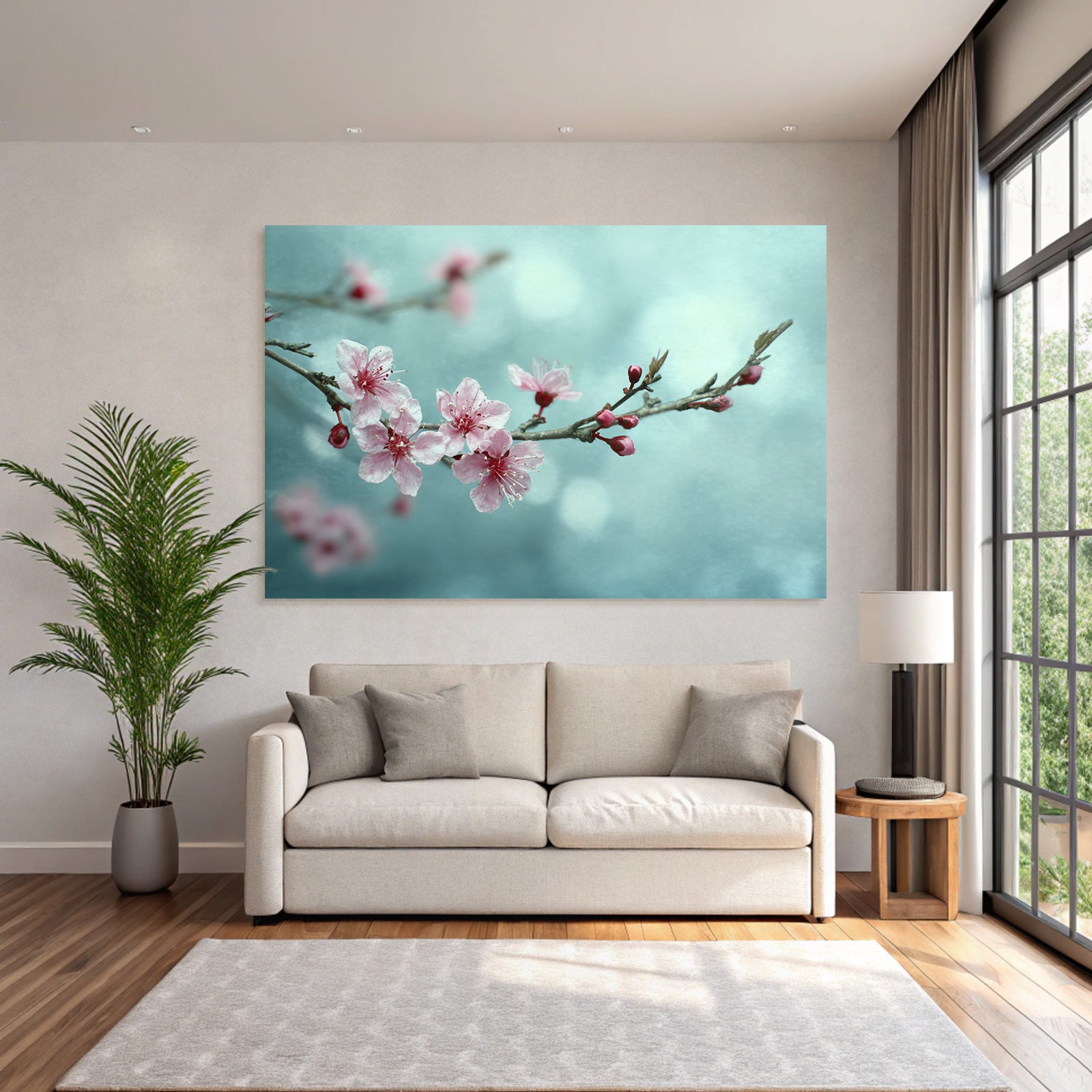 Die Kombination aus dem Motiv „Kirschblütenzweig Vor Weichem Unscharfen Hintergrund“ und dem Stil Japanische Zierkirsche schafft eine Brücke zwischen Klassik und Moderne. Der FameFrame vollendet dieses Zusammenspiel perfekt.