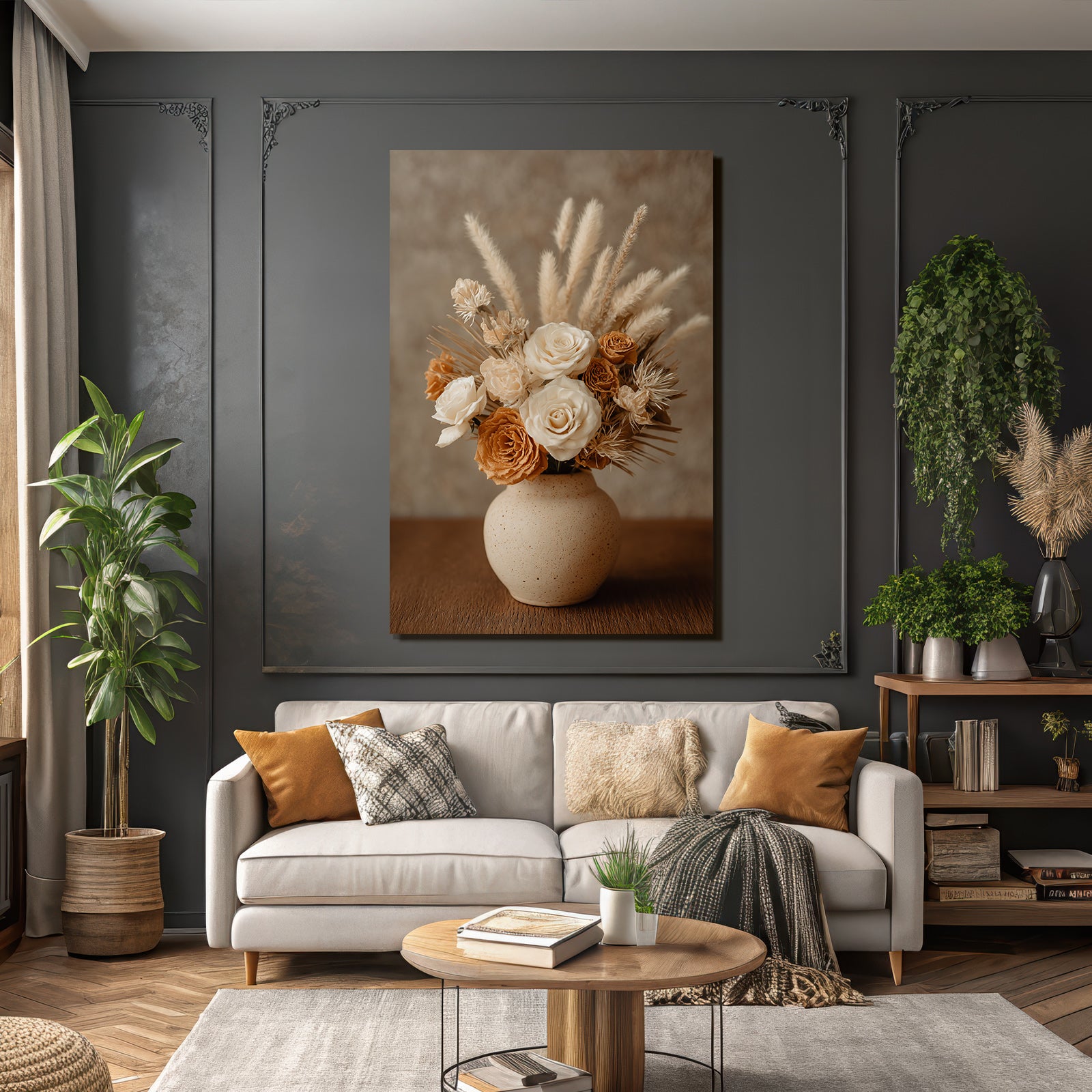 Wenn Sie den Trockenblumen Retro Flowers-Look schätzen, werden Sie „Trocken Retro Flowers Strauss In Vase Gedämpfte Tone Rembisheften Aus Der Erde“ lieben. Im exklusiven FameFrame wird dieses Motiv zum zentralen Element Ihrer Raumgestaltung.