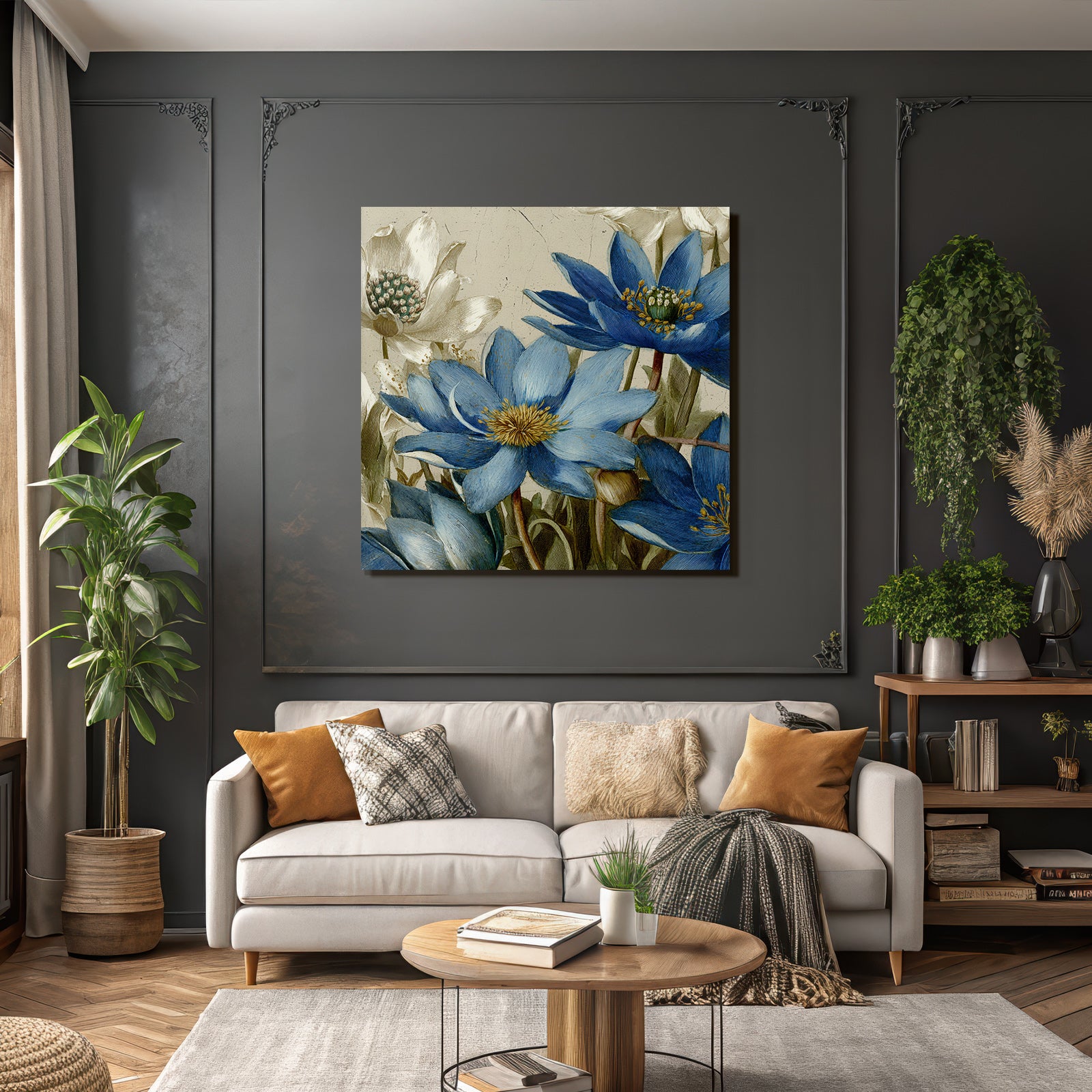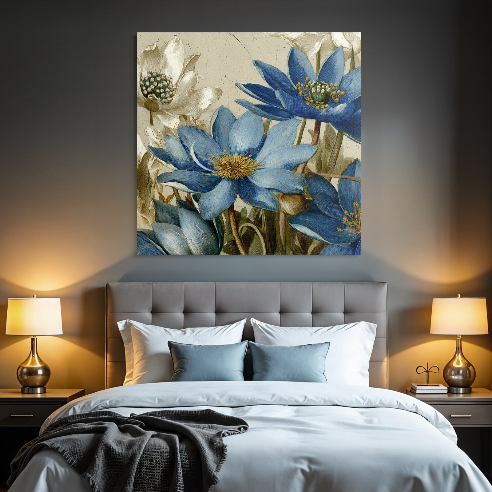 Wenn Sie den Botanische Illustrationen-Look schätzen, werden Sie „Blaü Weisse Seerosen Illustration Mit Detailreichen Petalen Und Texturiertem Hintergrund“ lieben. Im exklusiven FameFrame wird dieses Motiv zum zentralen Element Ihrer Raumgestaltung.