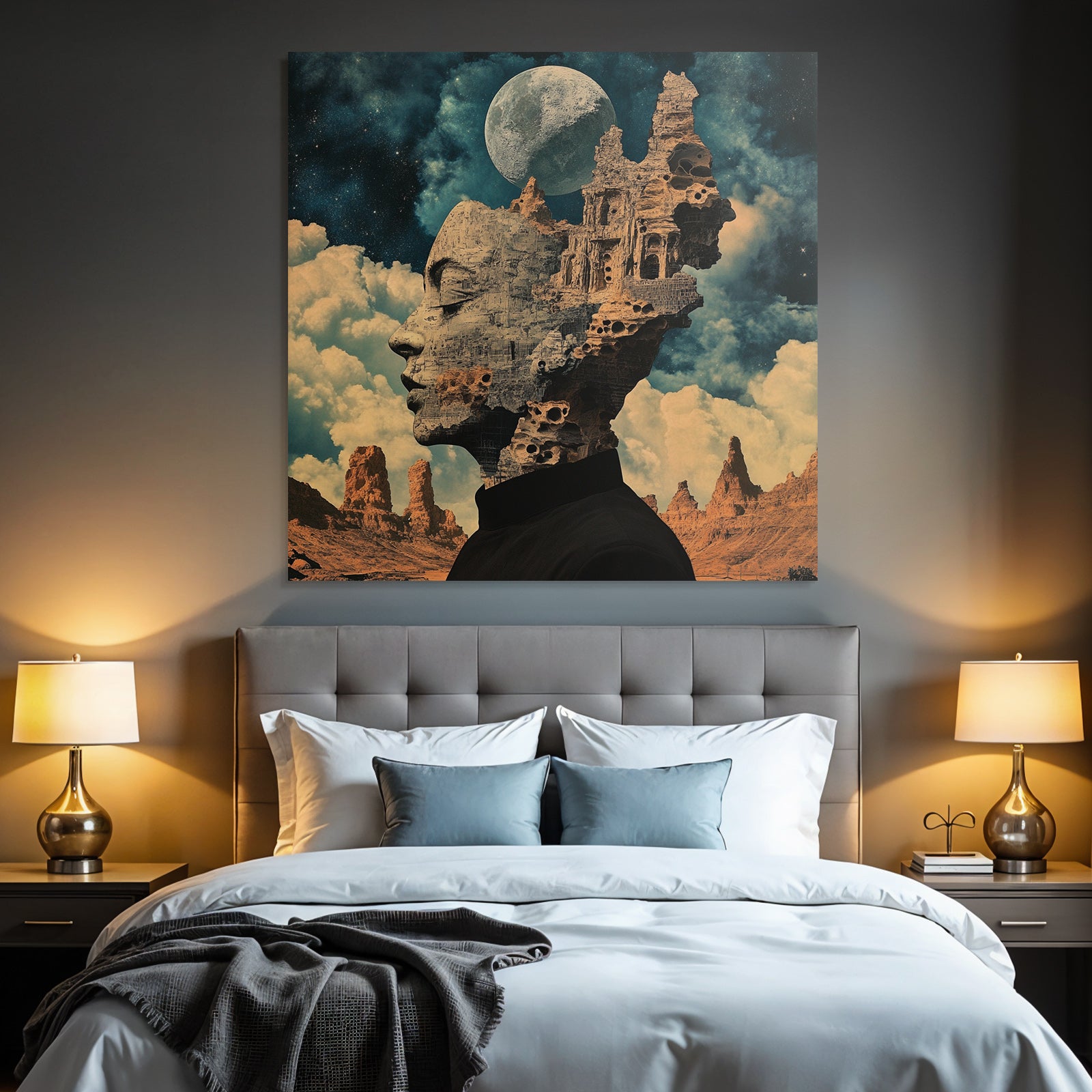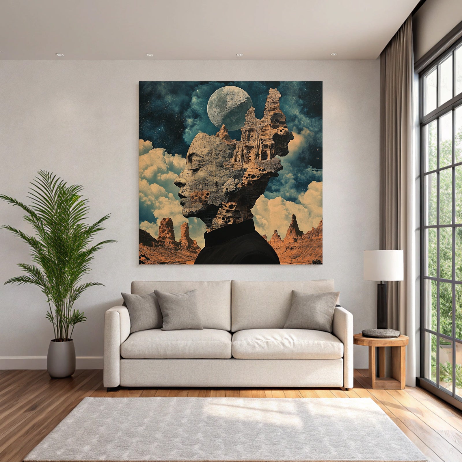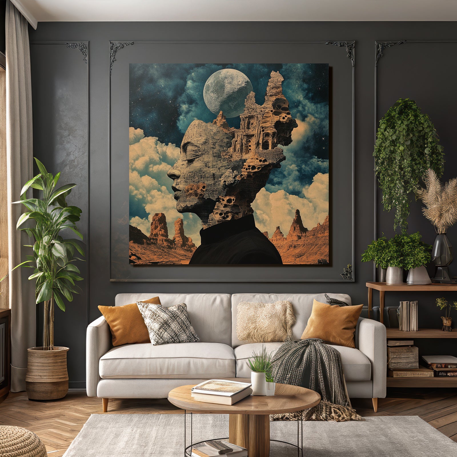 Kunst trifft Design: „„Kopf Naturmond Traeume““ im Stil Collagen entfaltet im FameFrame seine volle Ausdruckskraft.
