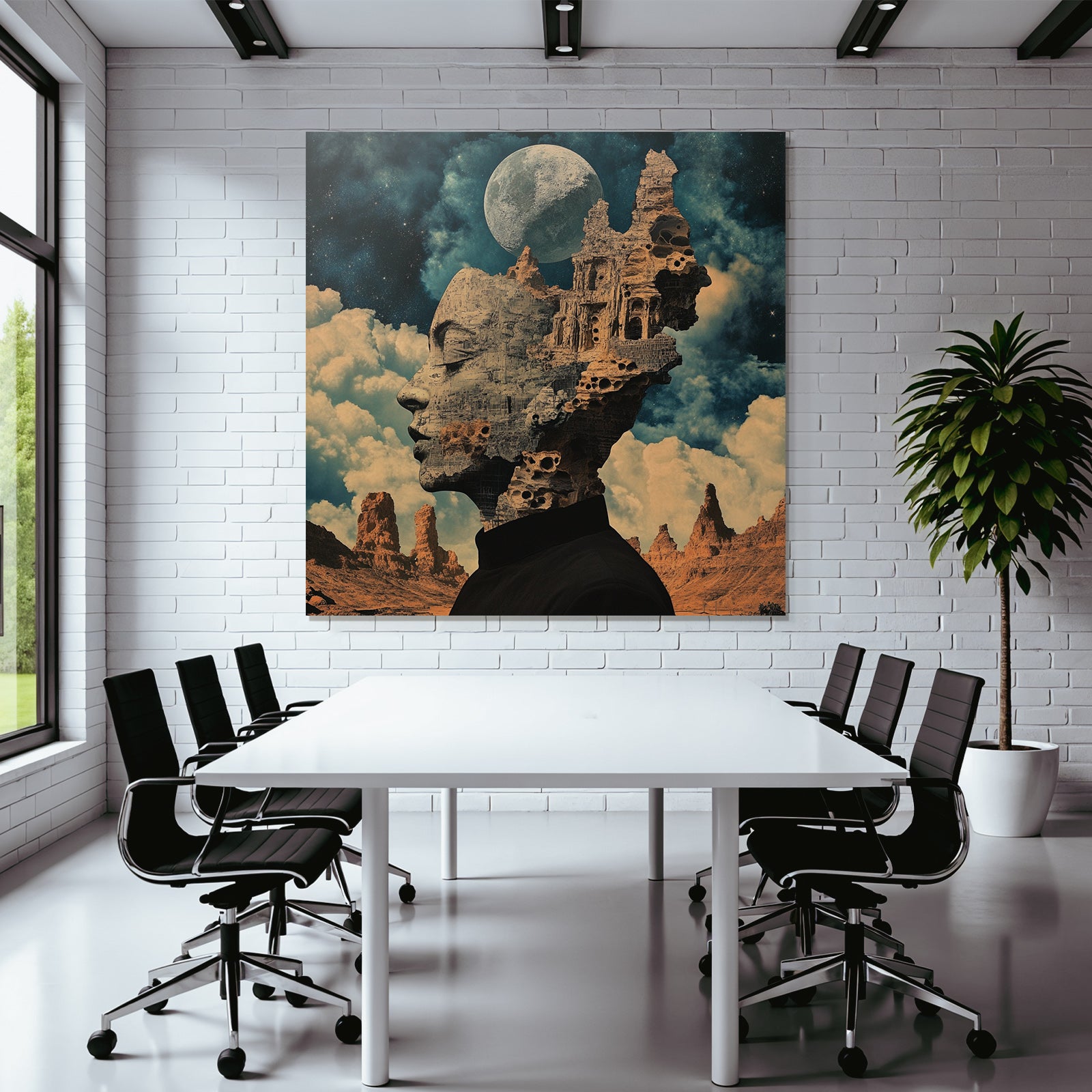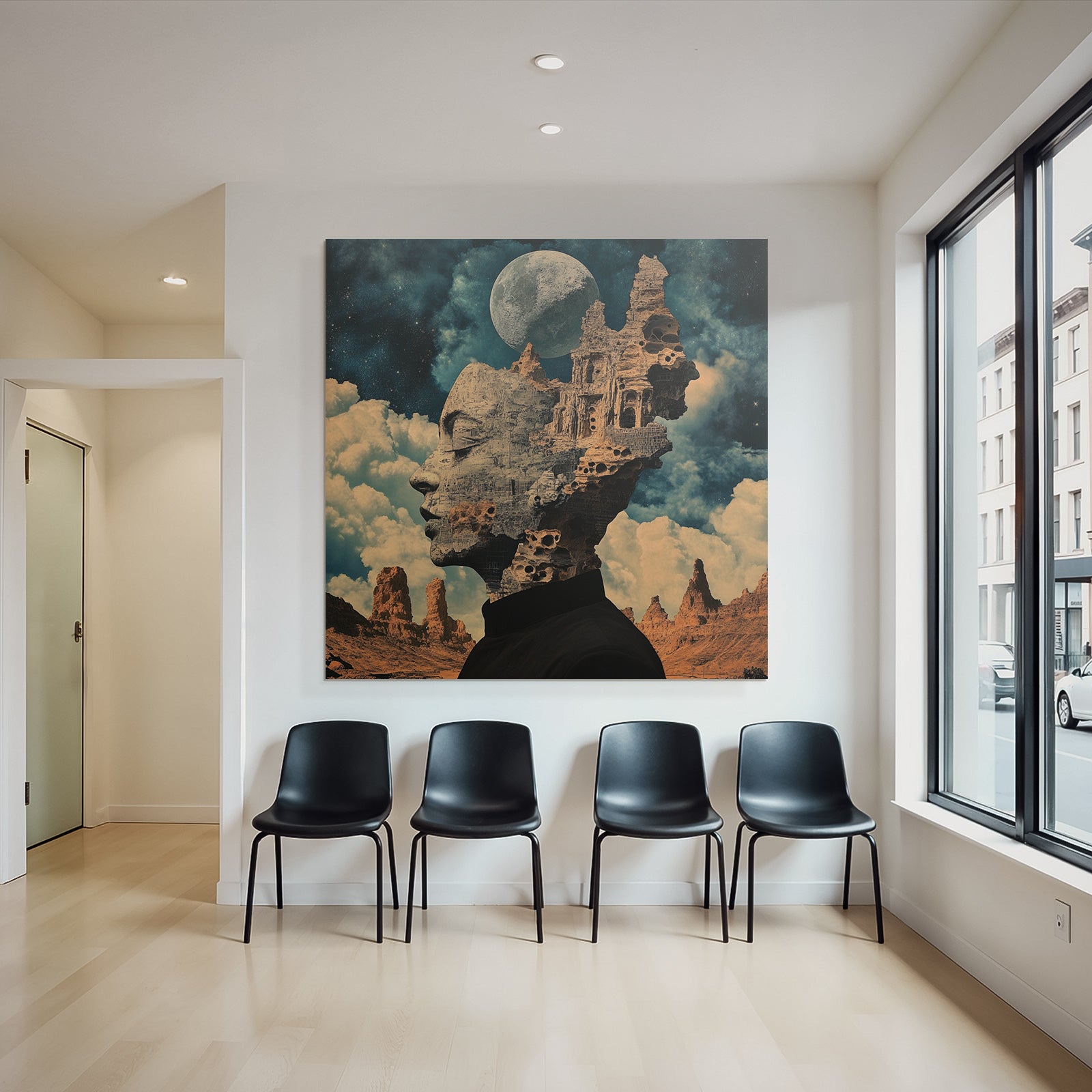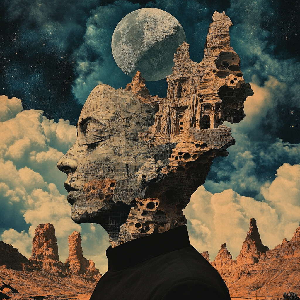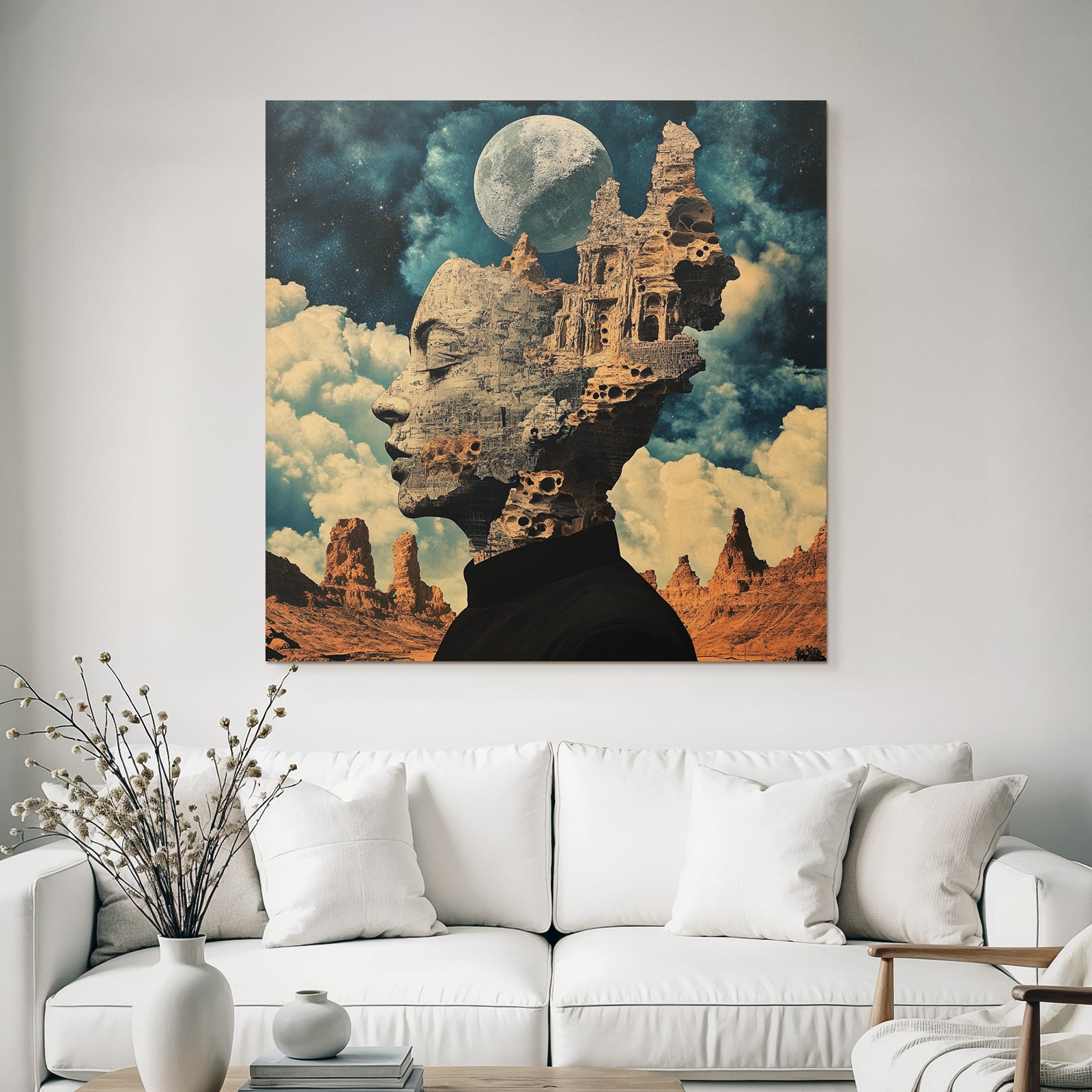 Kunst trifft Design: „„Kopf Naturmond Traeume““ im Stil Collagen entfaltet im FameFrame seine volle Ausdruckskraft.