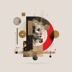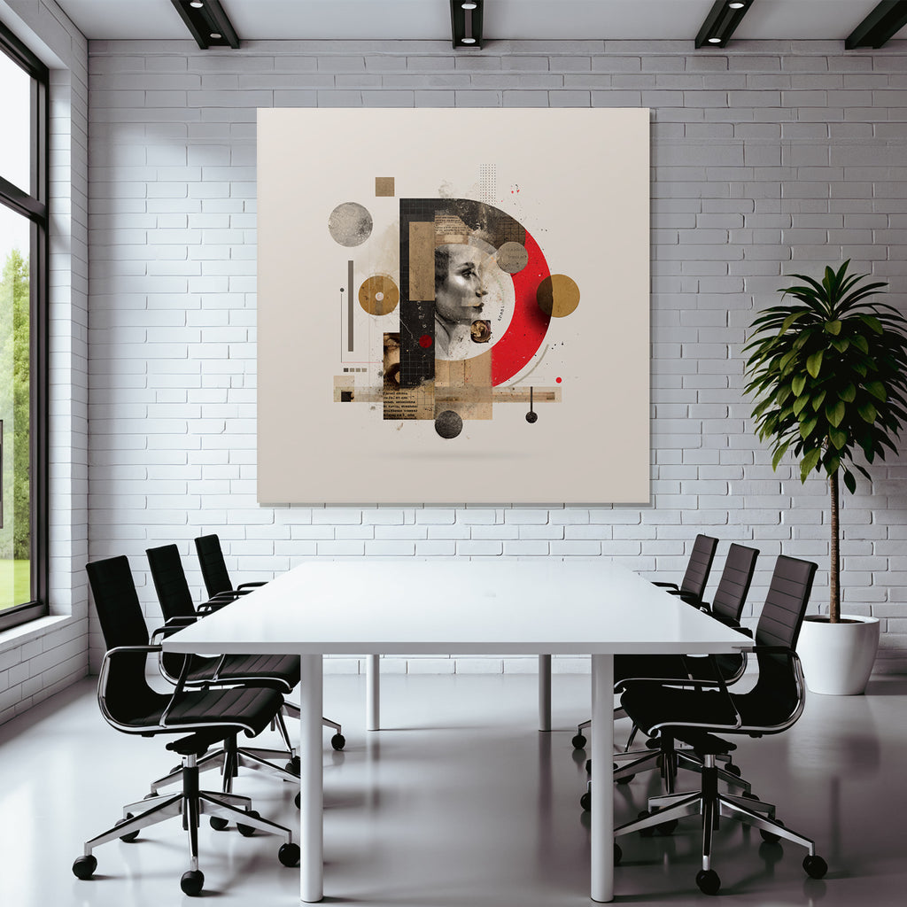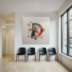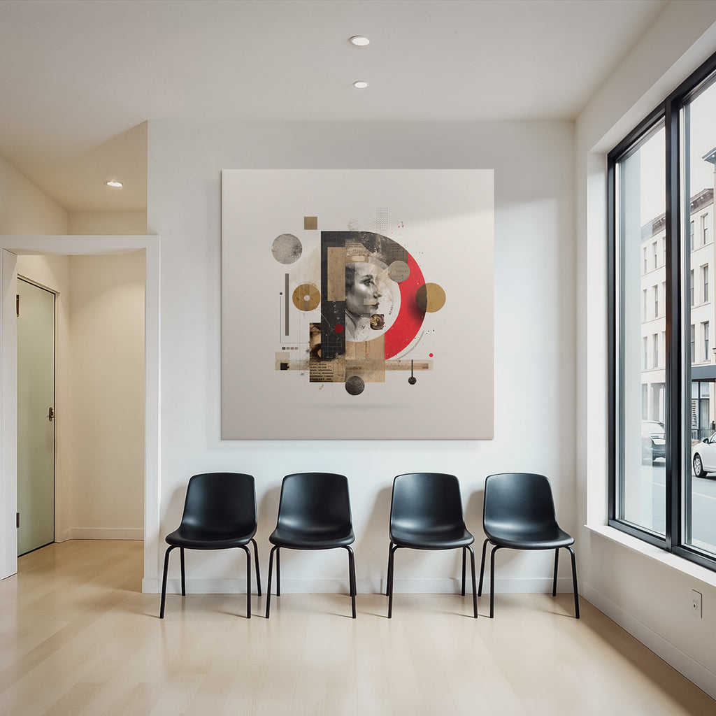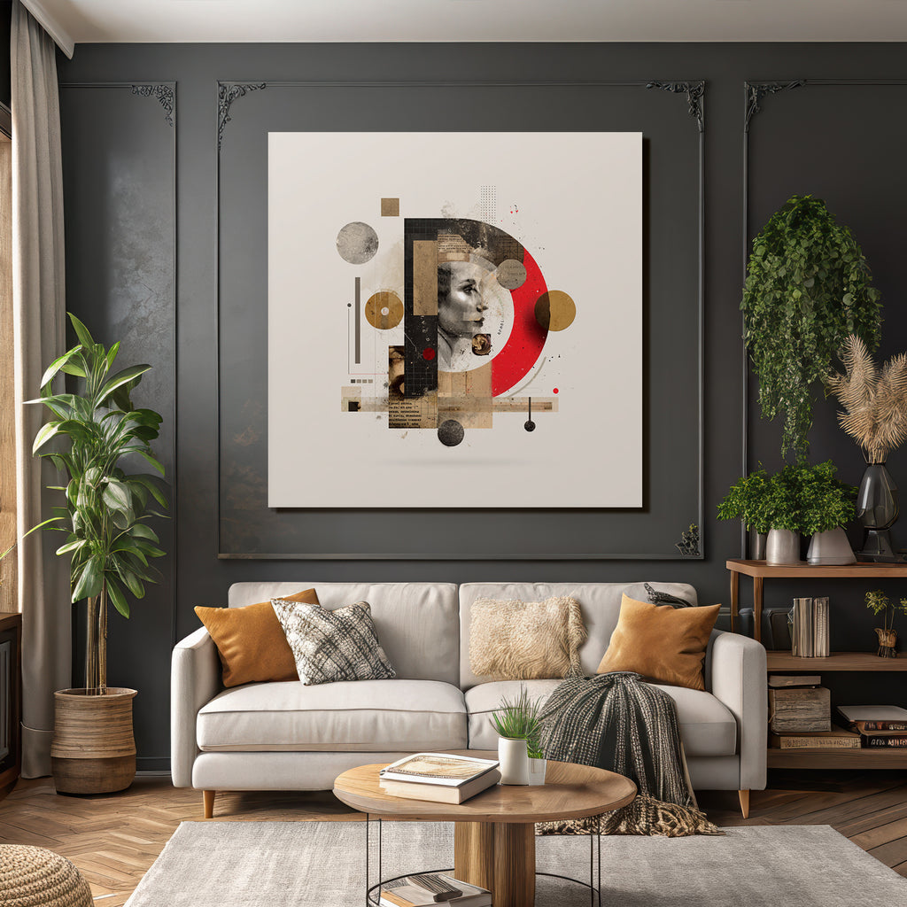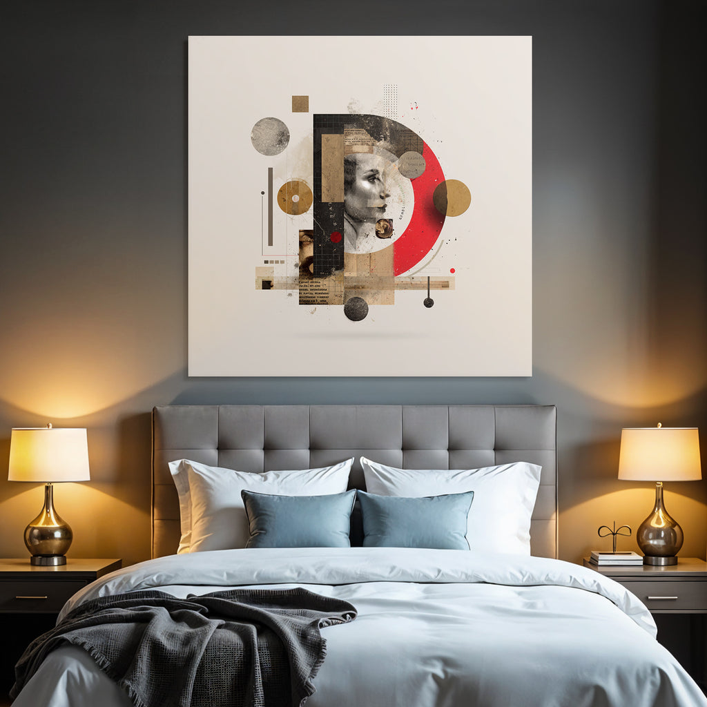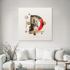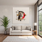 Verwandeln Sie Ihr Schlafzimmer in eine Oase der Ruhe. Das Motiv „Abstraktes Design Mit Form Und Farbenfrohen Elementen“ im Stil Dadaismus wirkt im FameFrame™ besonders harmonisch und beruhigend.