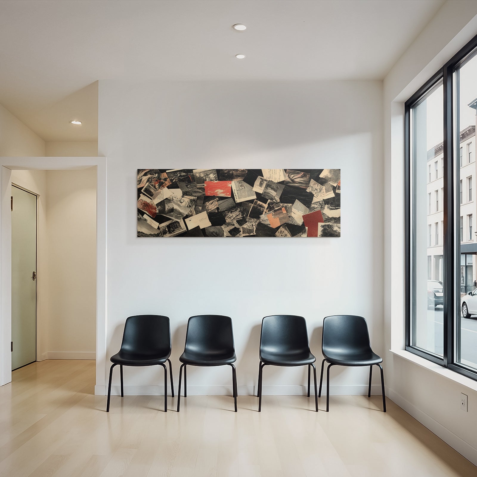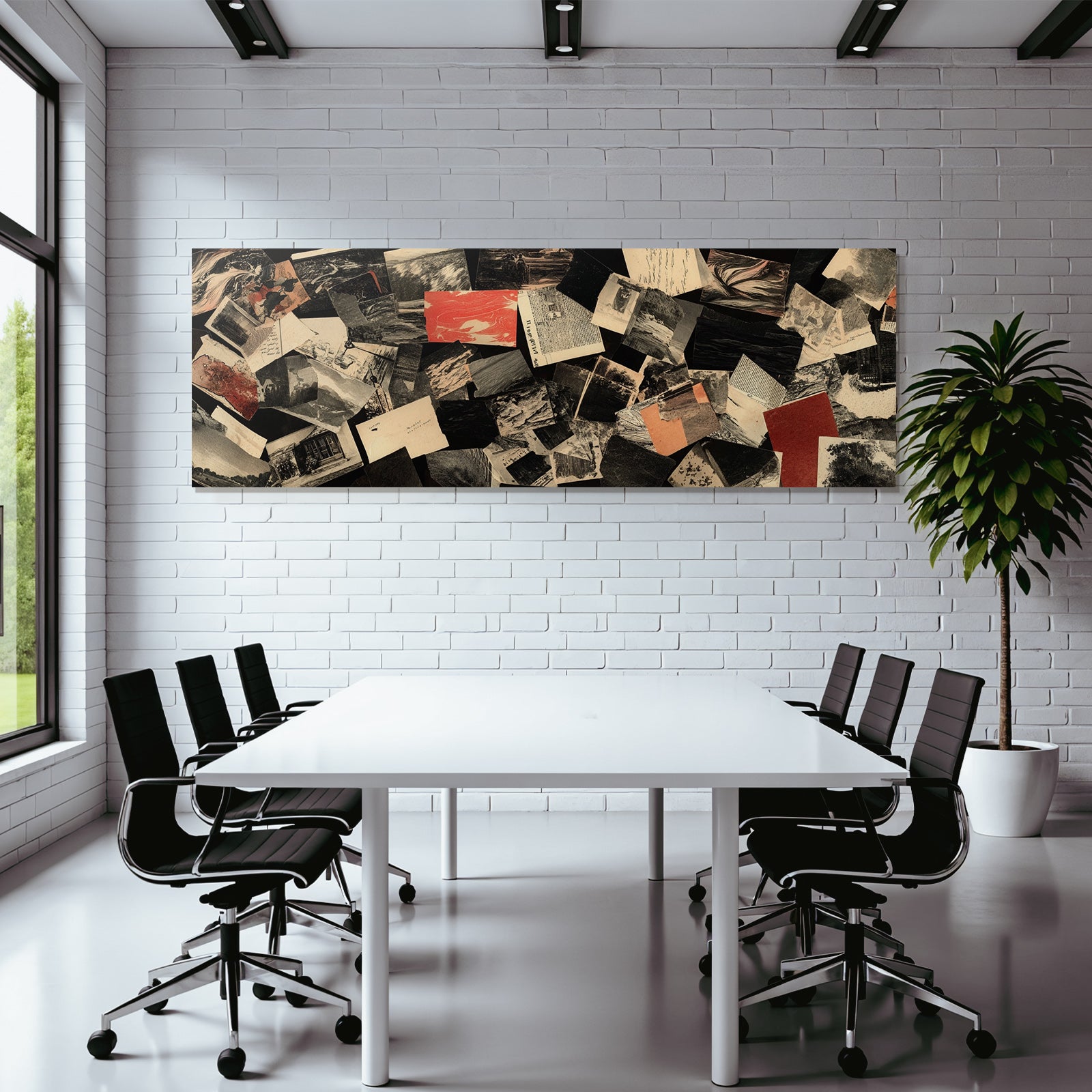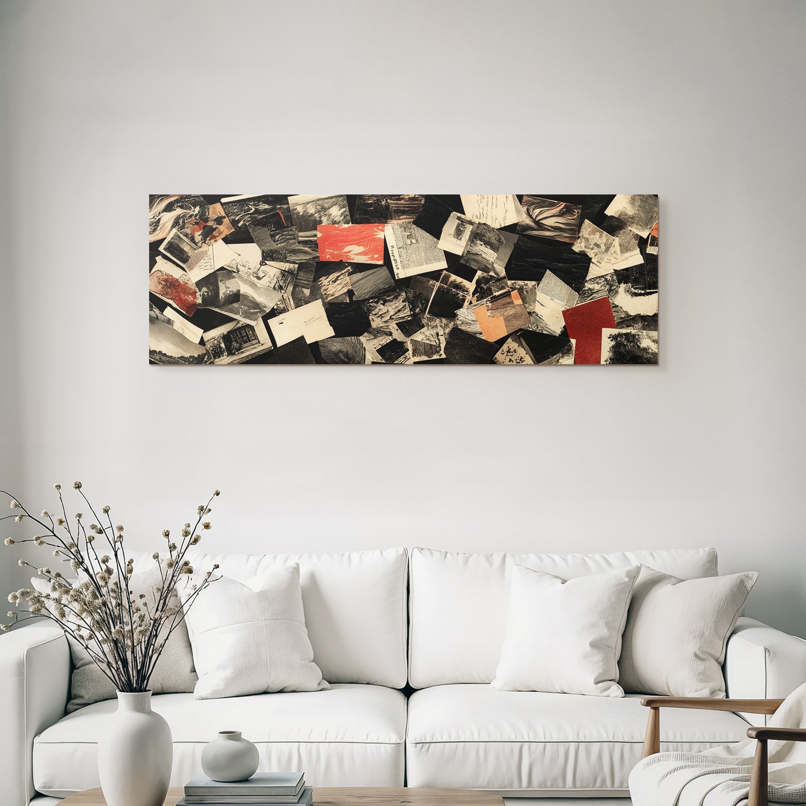 Für Liebhaber des Dadaismus-Looks: Das Kunstwerk „Fragmentierte Erinnerungen Und Gegensätze“ bringt die charakteristischen Merkmale dieses Stils brillant auf Stoff – perfektioniert durch den FameFrame™.