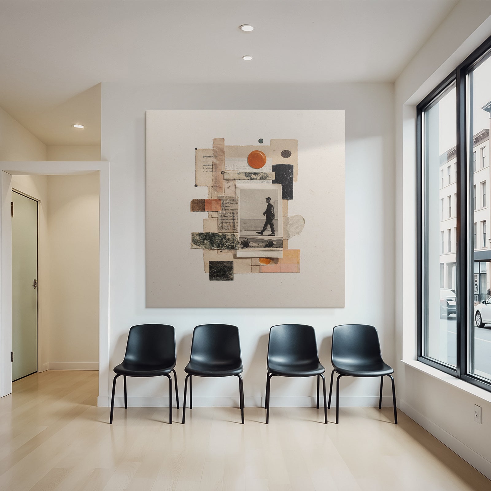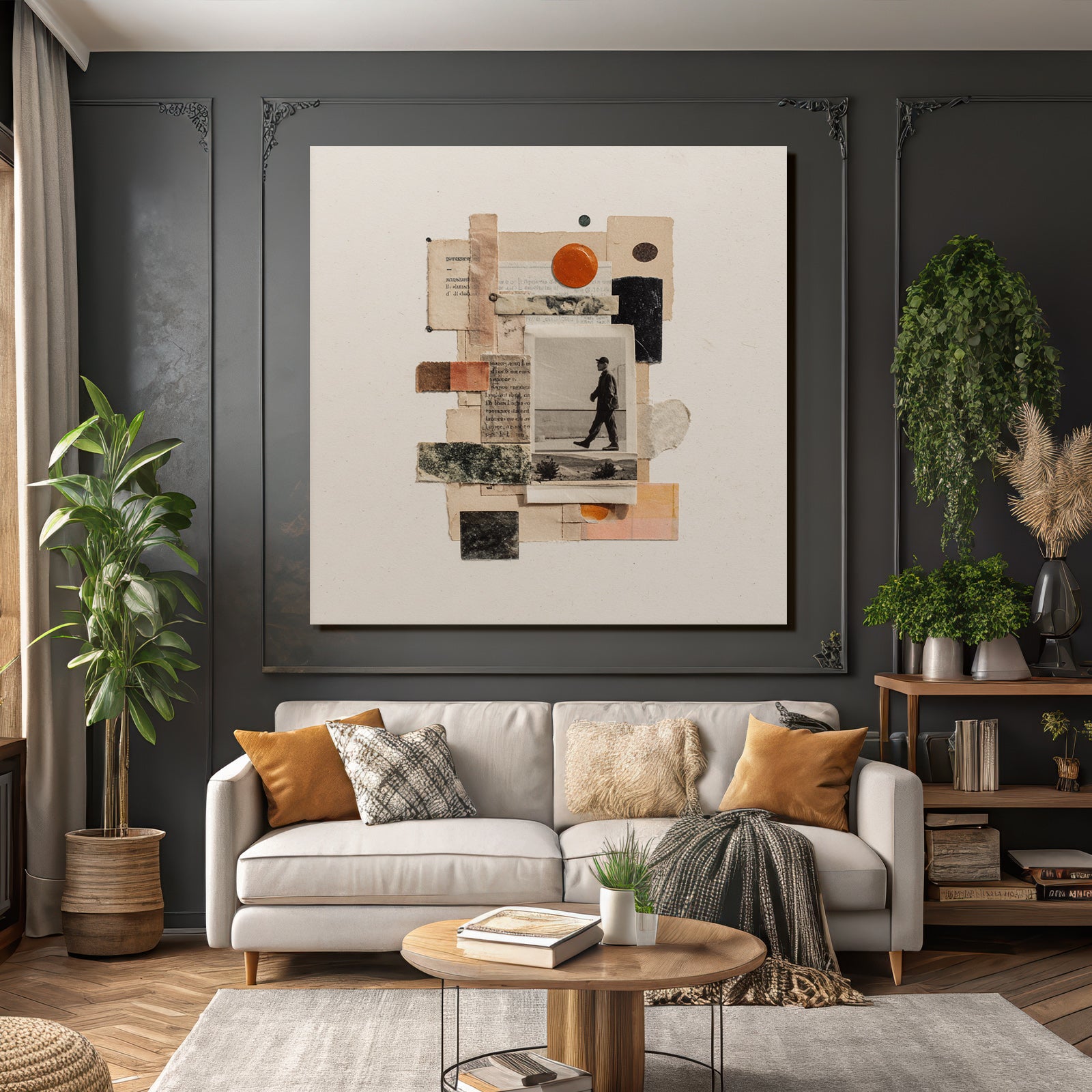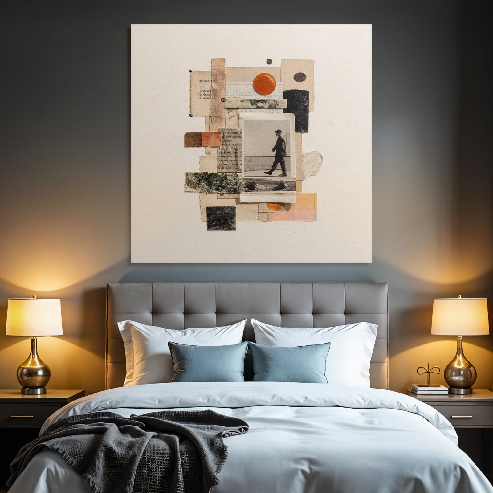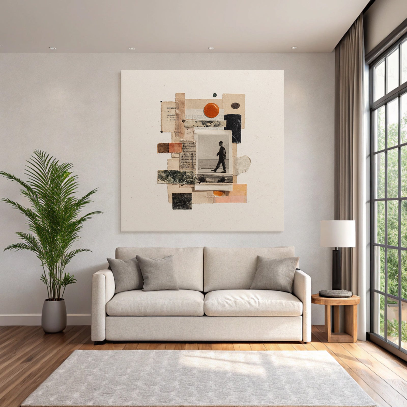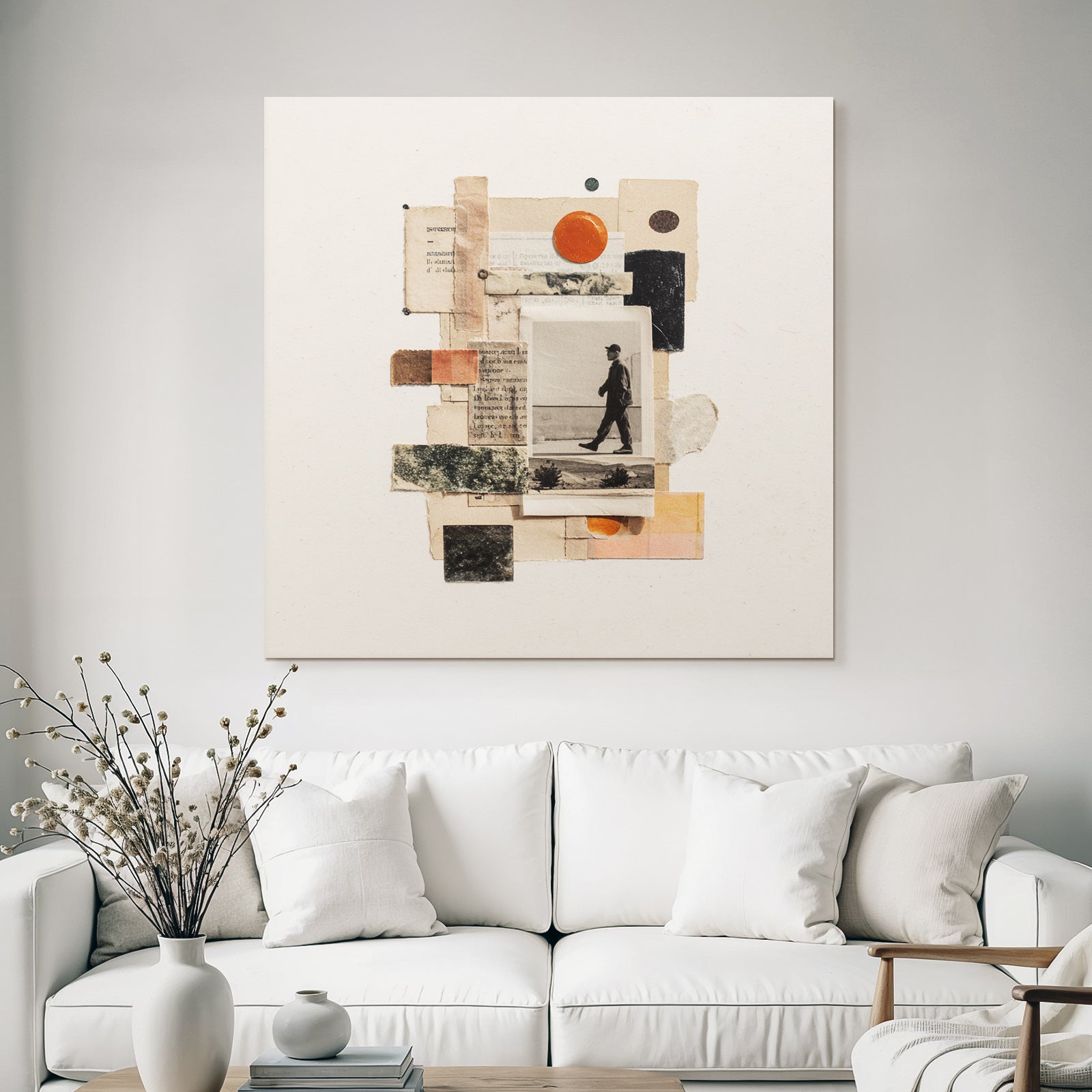 Ob Flur, Wohnraum oder Wartebereich – das Motiv „Nostalgische Papiercollage Mit Schwarzweissfoto“ im Stil Dadaismus wirkt durch den hochwertigen FameFrame™ besonders modern.