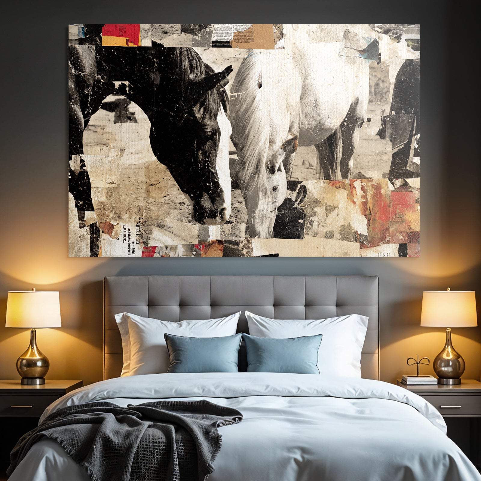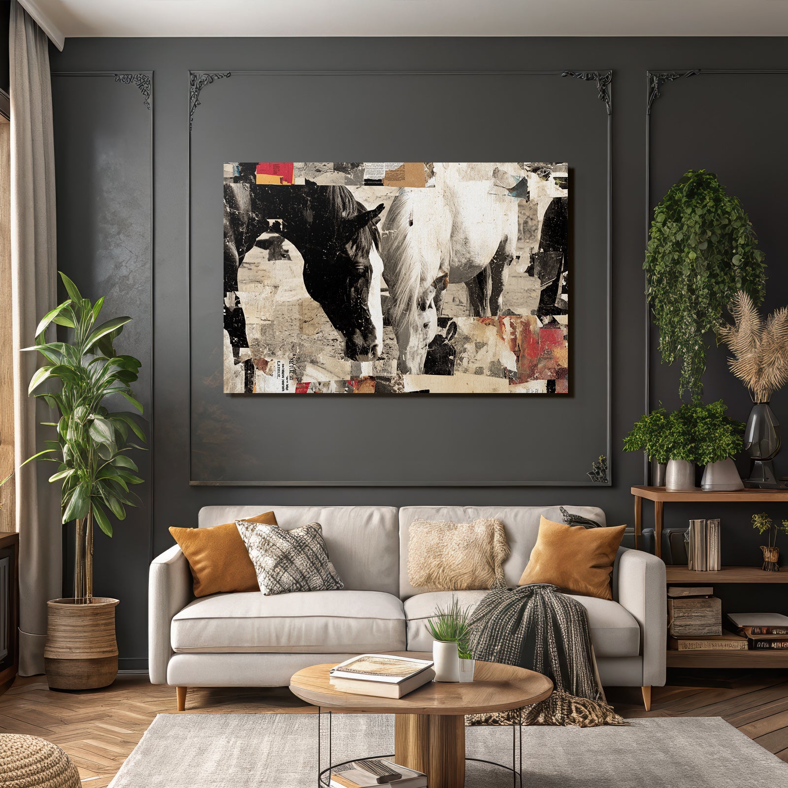 Schwarz Weiss Pferde Kunstvolle Kollage