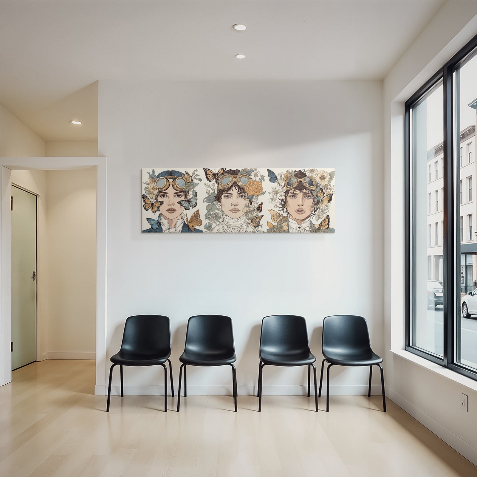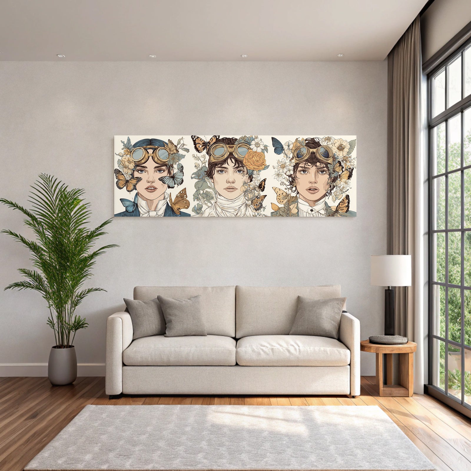 Setze stilvolle Akzente mit Kunst im Look von Digital Art. Das Werk „„Fantasy Steampunk Charaktere Blumen Schmetterlinge““ entfaltet im edlen FameFrame seine volle Wirkung.