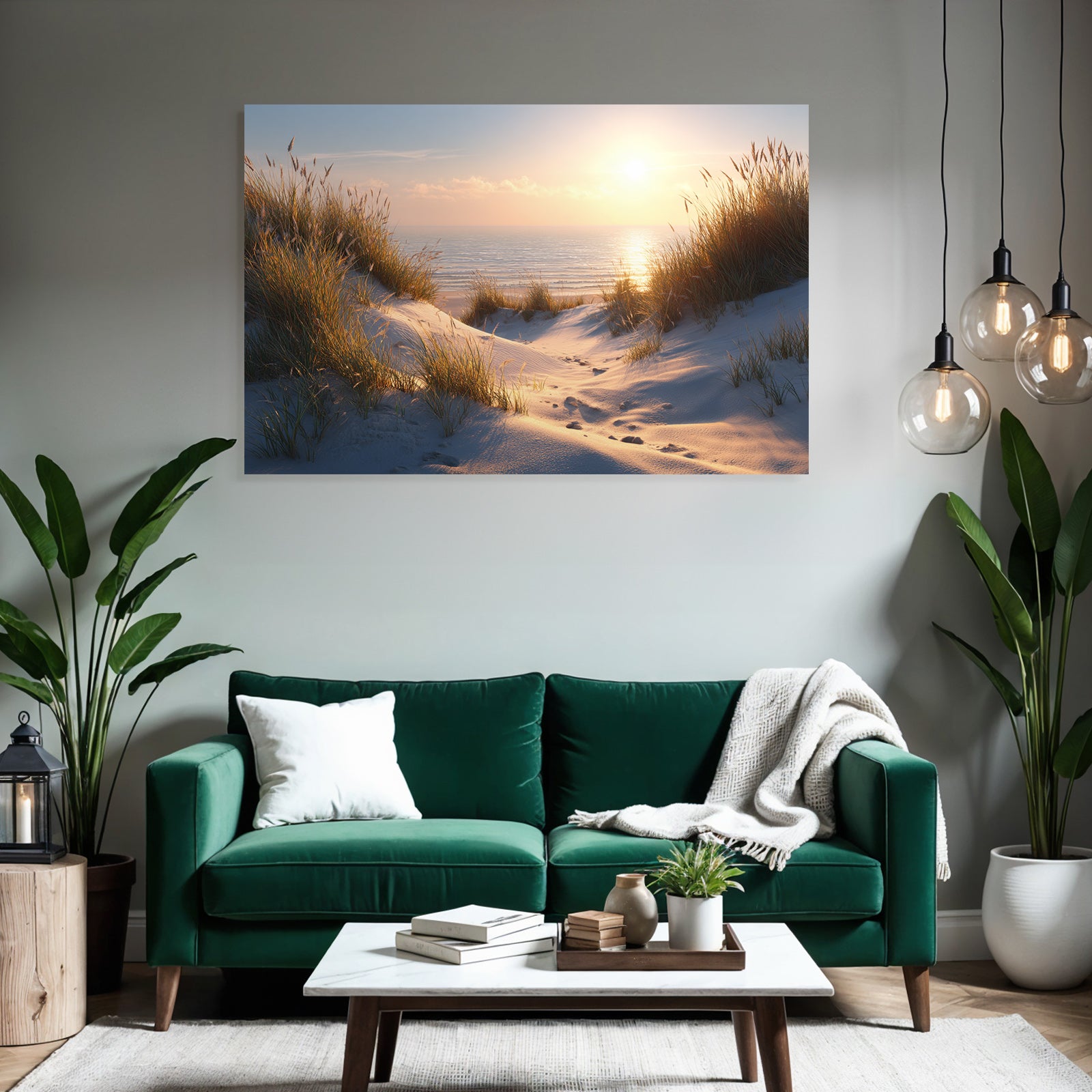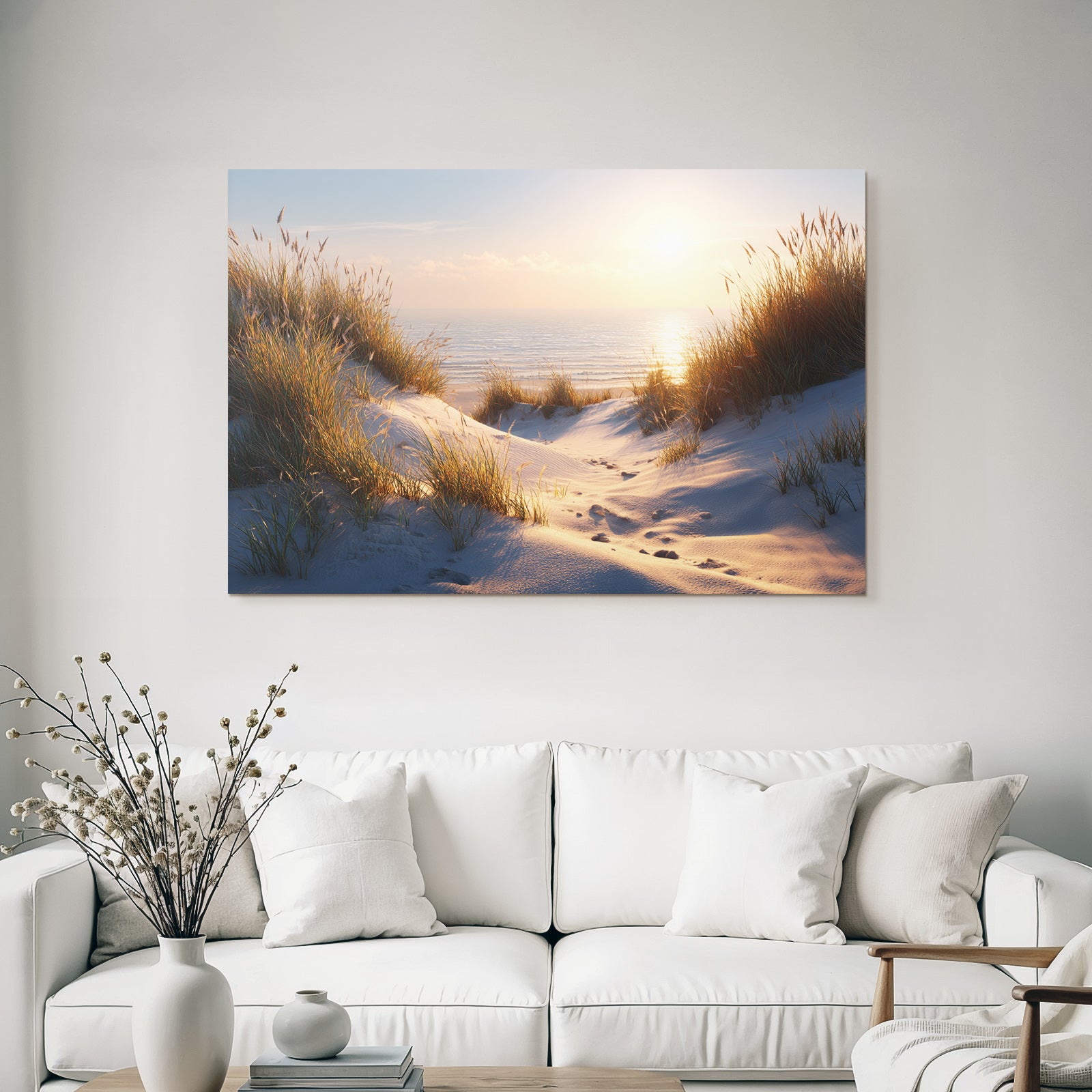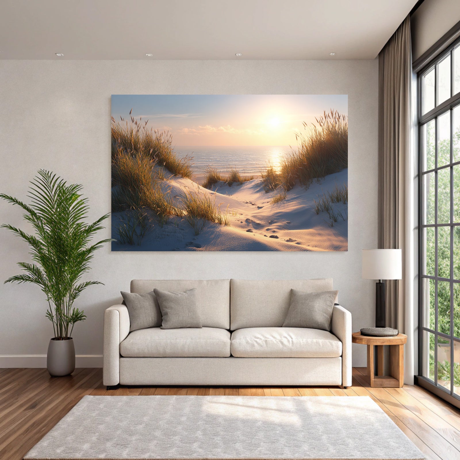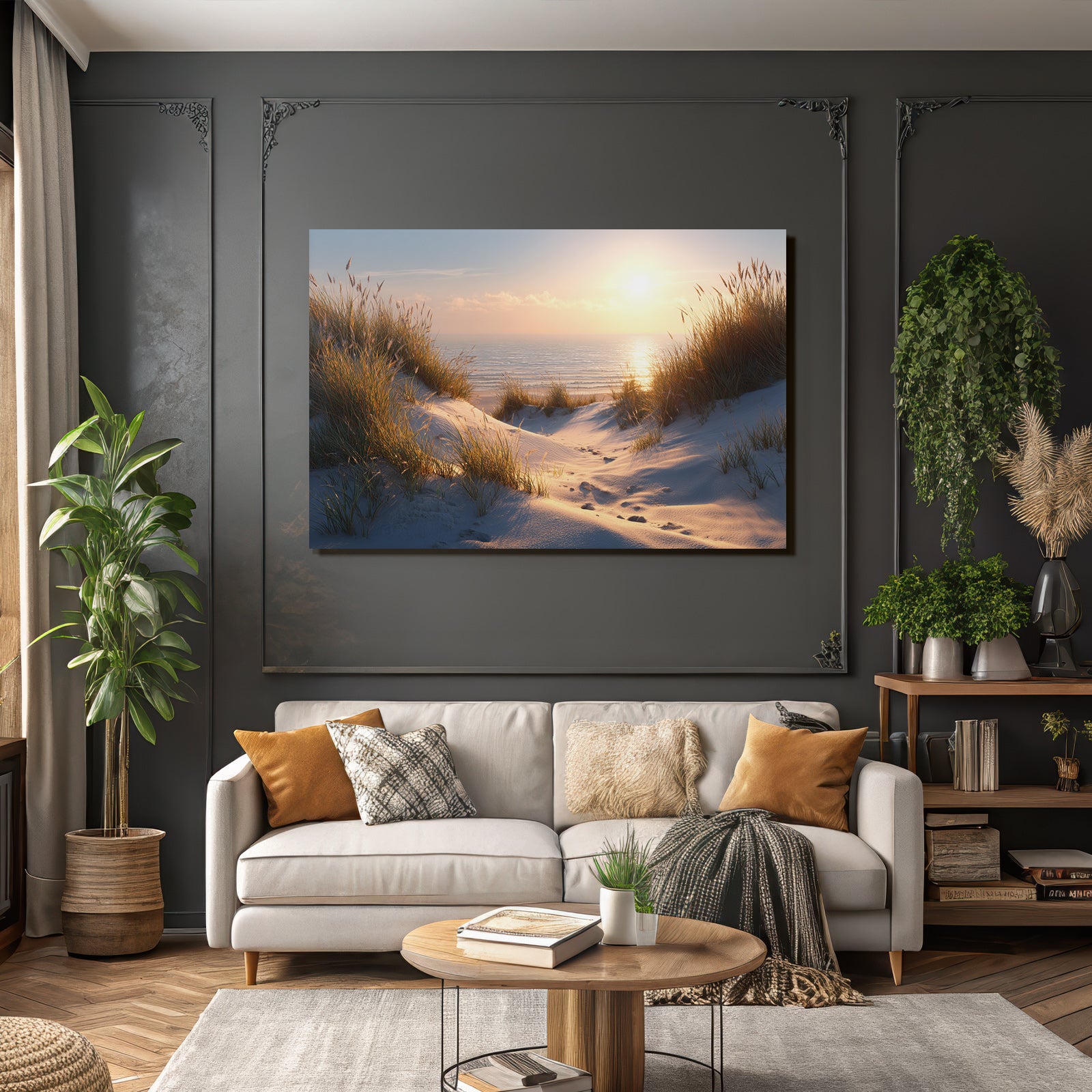 Lassen Sie sich von der Ästhetik des Dünen und Heide inspirieren. „Ruhiger Strand Bei Sonnenuntergang Mit Fussabdrücken Im Sand“ ist mehr als nur ein Bild – es ist ein Lebensgefühl, das im FameFrame™ stilvoll gerahmt wird.