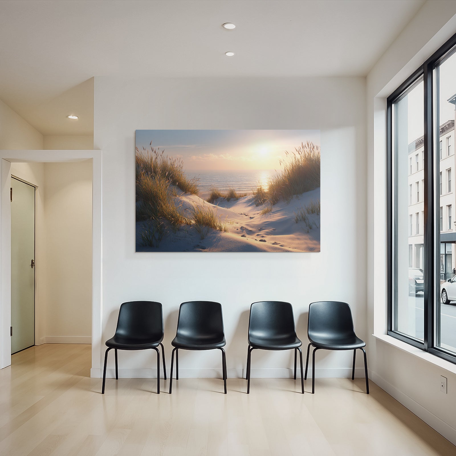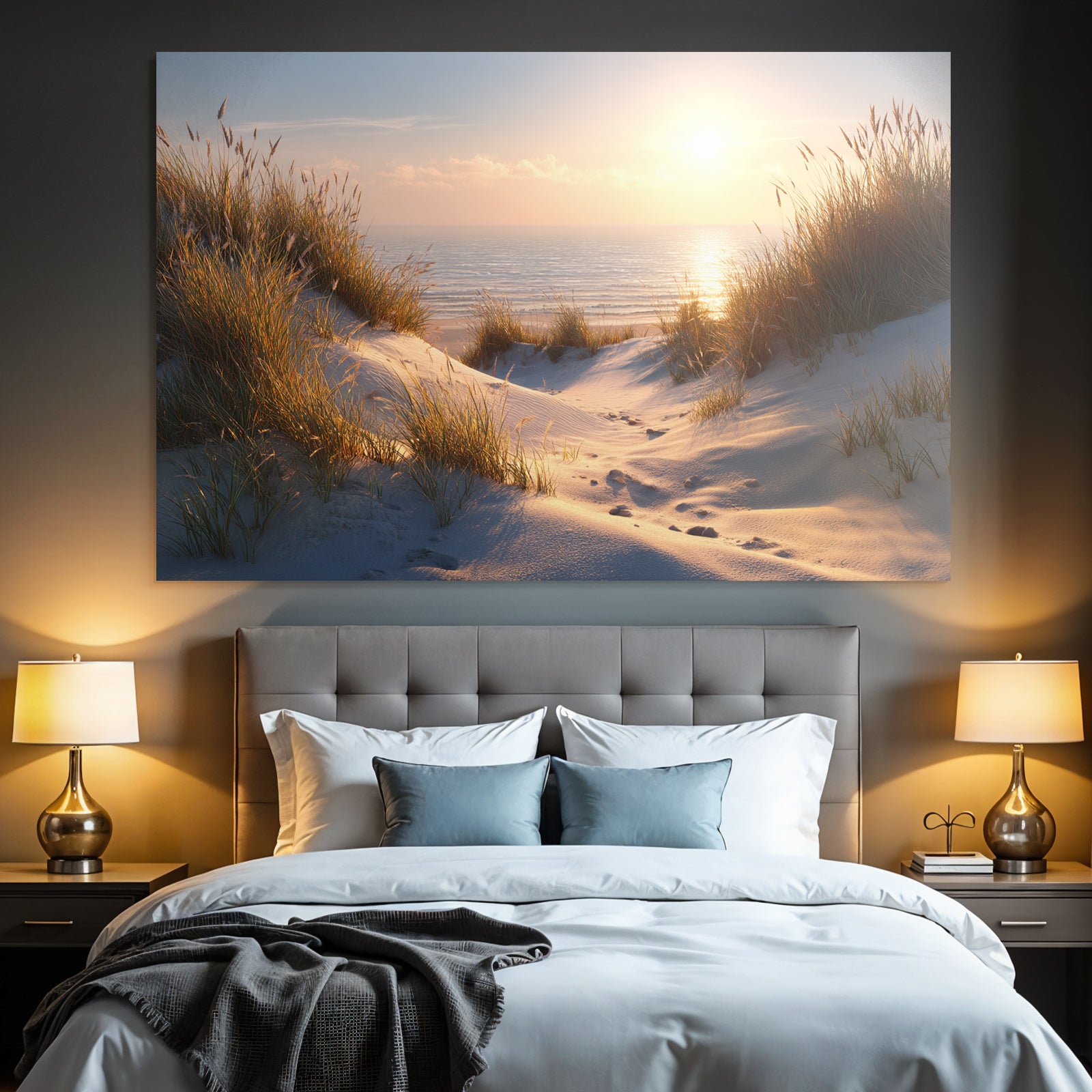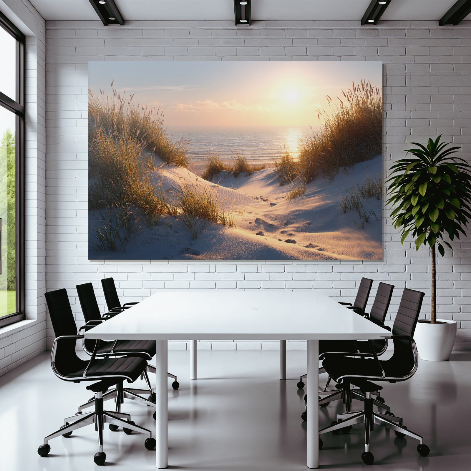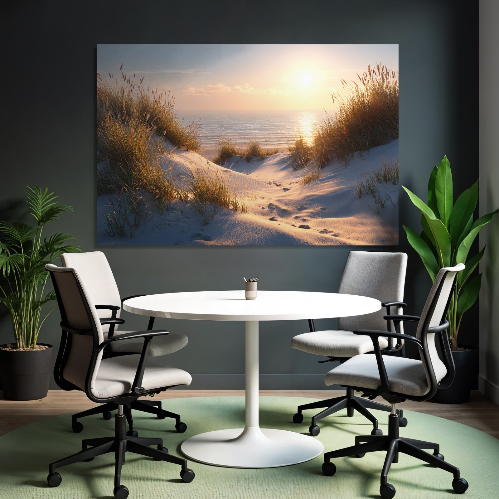 Lassen Sie sich von der Ästhetik des Dünen und Heide inspirieren. „Ruhiger Strand Bei Sonnenuntergang Mit Fussabdrücken Im Sand“ ist mehr als nur ein Bild – es ist ein Lebensgefühl, das im FameFrame™ stilvoll gerahmt wird.