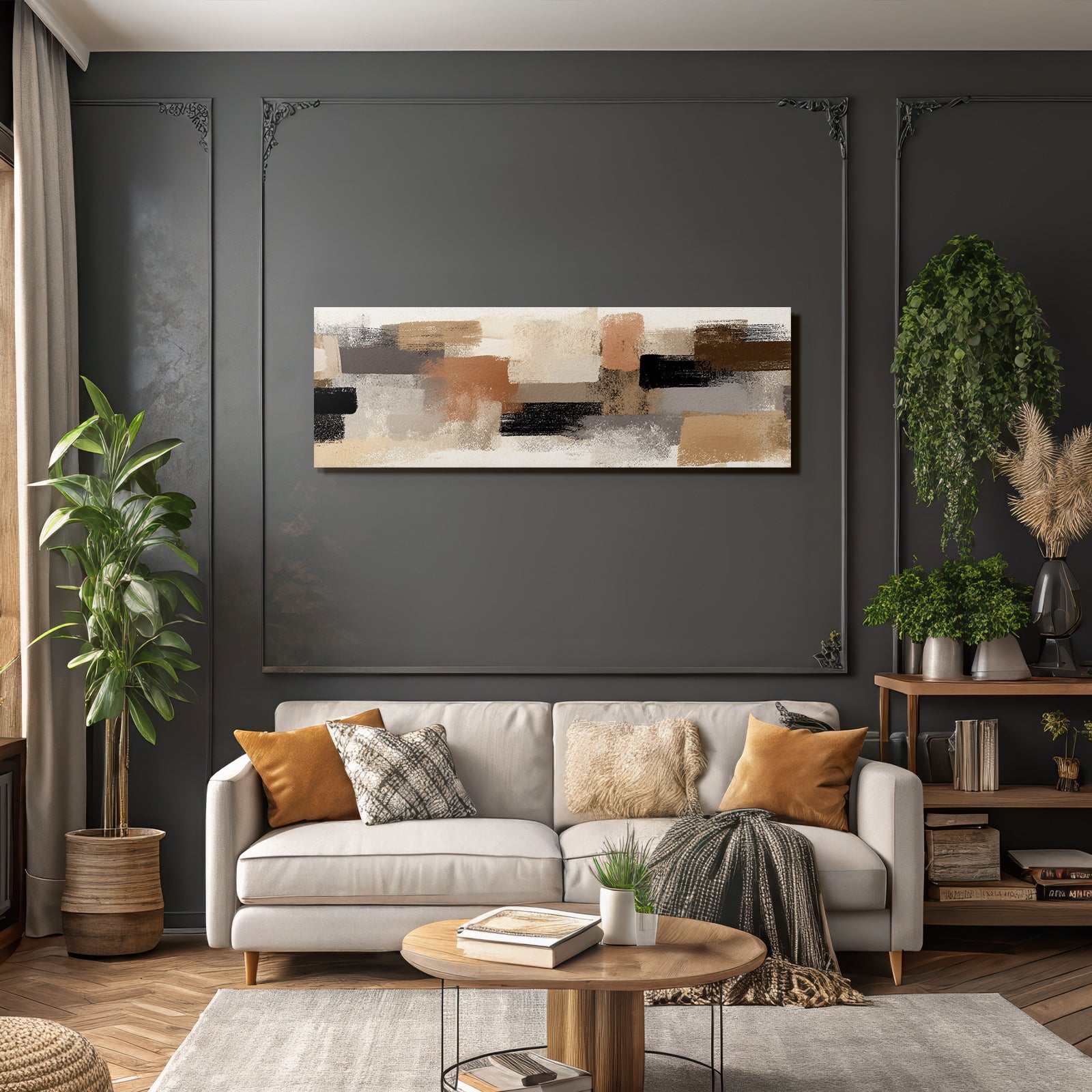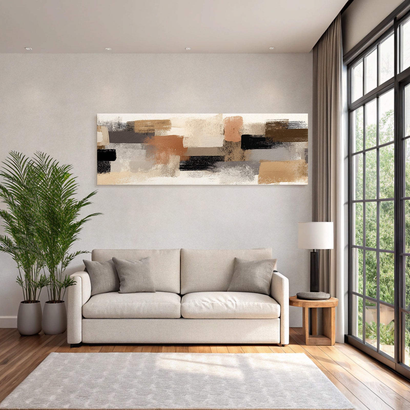 Mit dem Werk „„Abstracte Kunst Erde Ton Buerststrichmuster““ im Stil Modern Basic gestaltest Du Dein Wartezimmer oder Deine Hotel-Lobby eindrucksvoll und modern – auf Stoff im FameFrame.