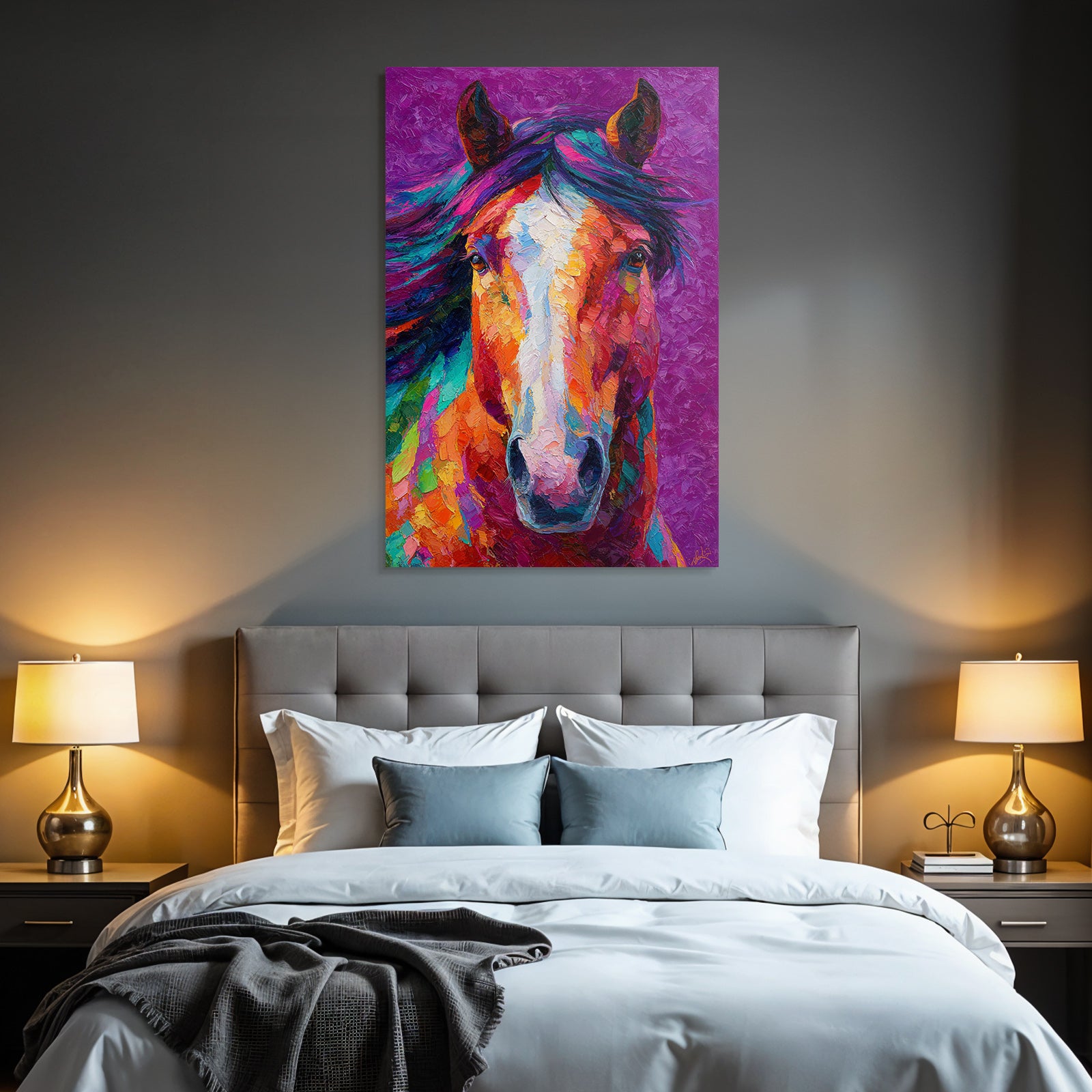 Buntes Pferdegemalde Mit Lila Hintergrund