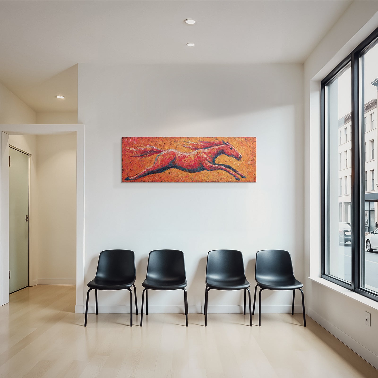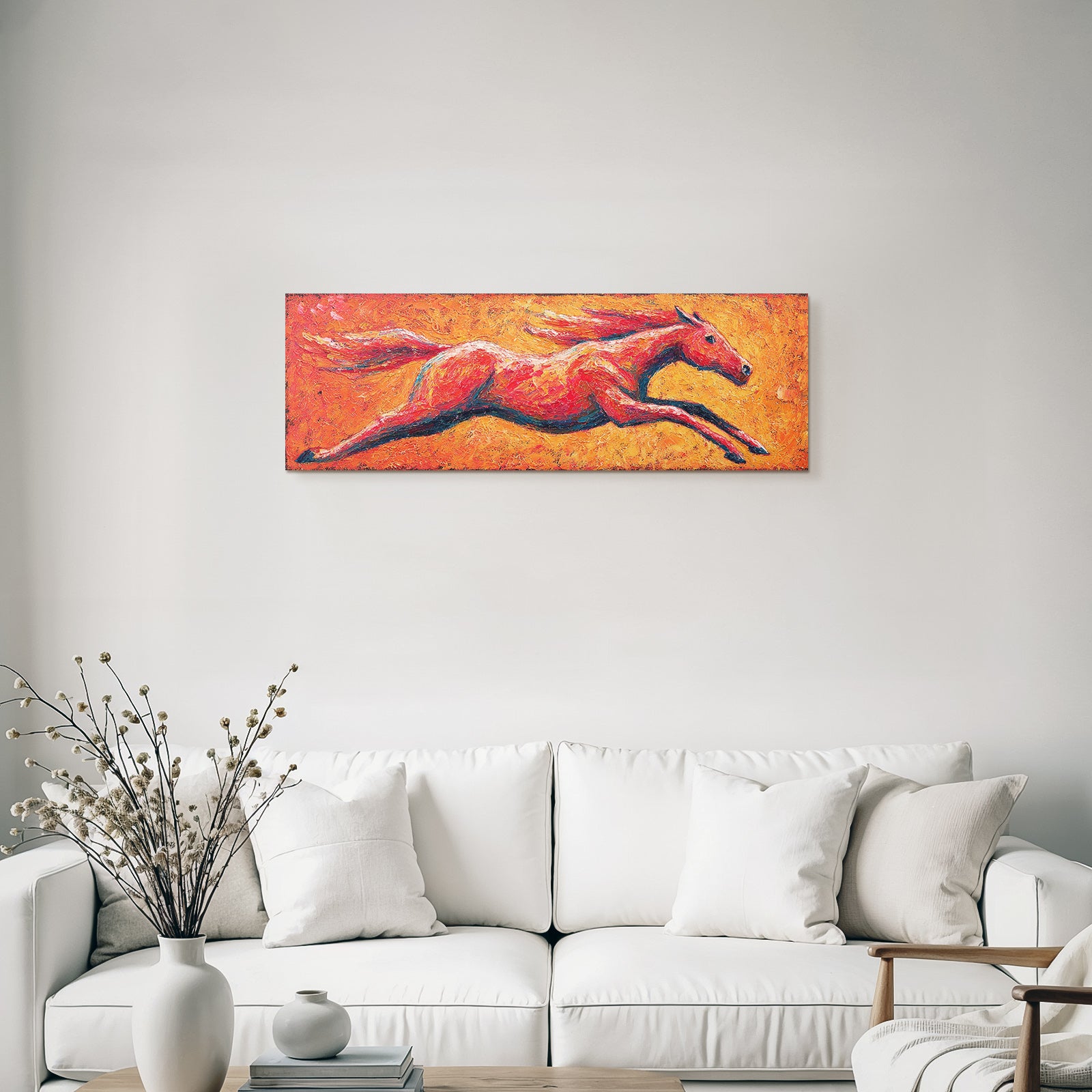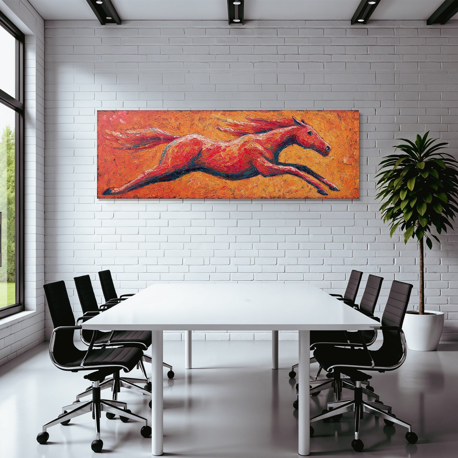 Ein Highlight für jeden Besprechungsraum oder eine großzügige Lobby. Das Werk „Stilisierte Bunte Pferdemalerei In Bewegung“ im Stil Expressionismus demonstriert im FameFrame™ Stilbewusstsein und Klasse.