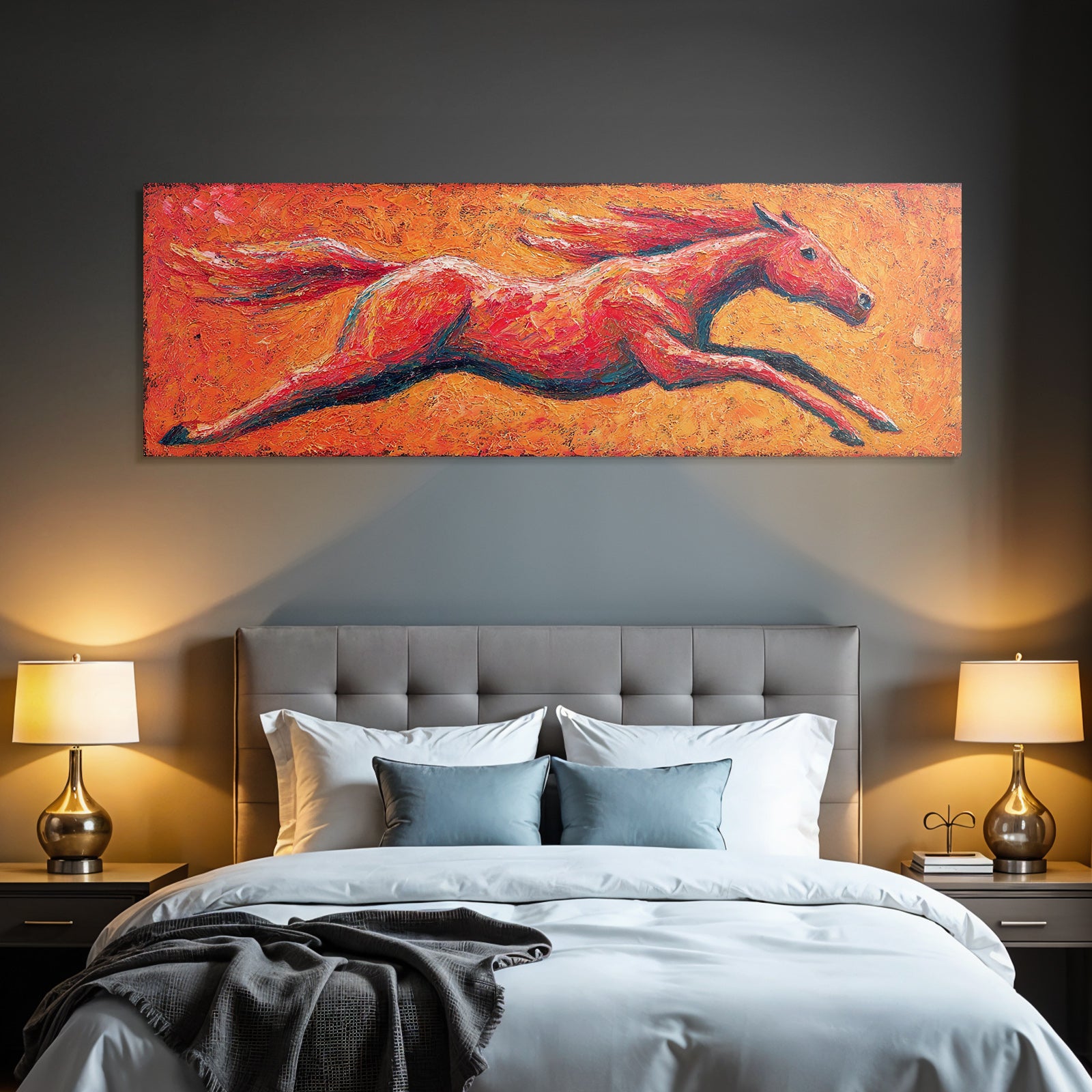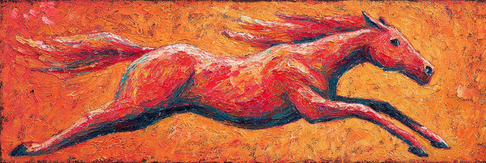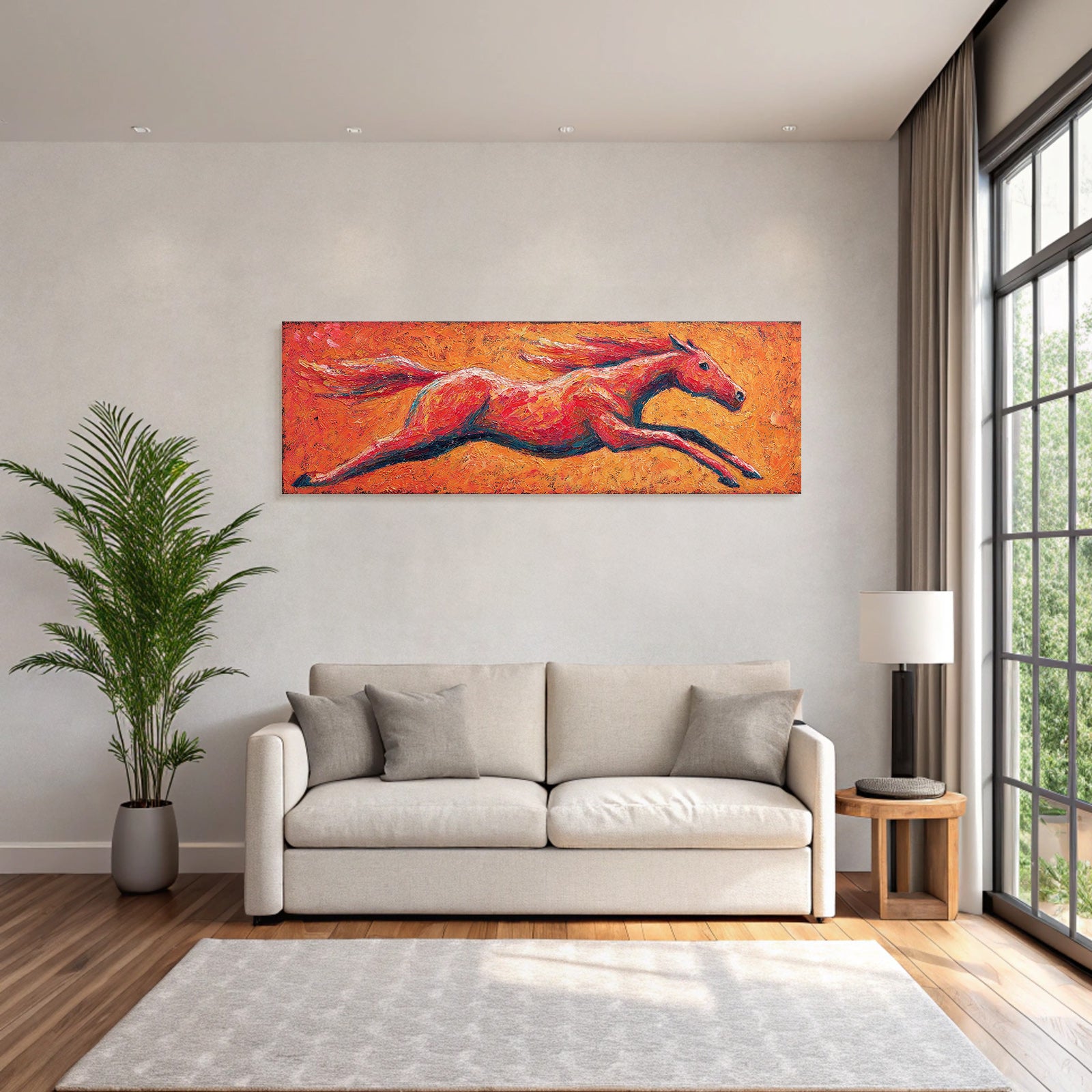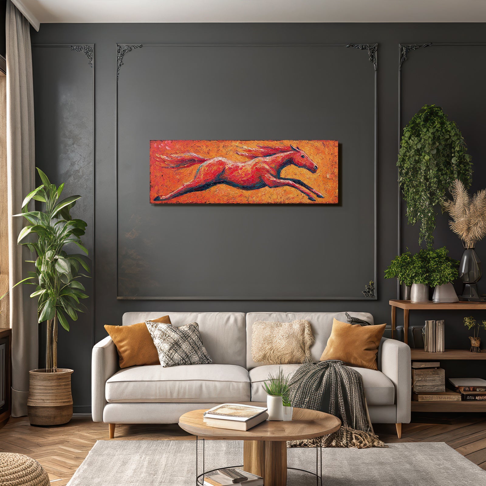 Ein Highlight für jeden Besprechungsraum oder eine großzügige Lobby. Das Werk „Stilisierte Bunte Pferdemalerei In Bewegung“ im Stil Expressionismus demonstriert im FameFrame™ Stilbewusstsein und Klasse.