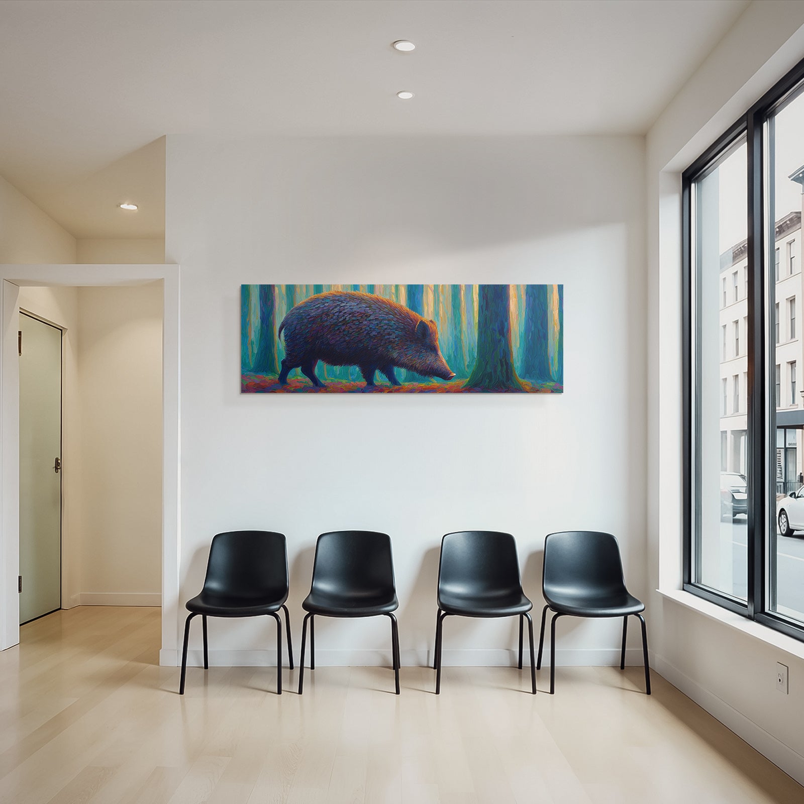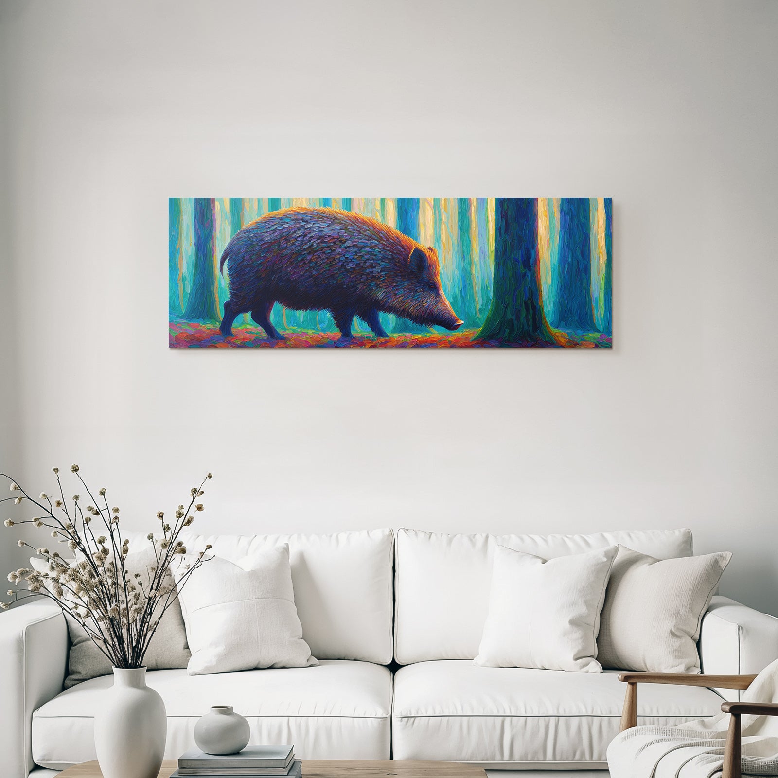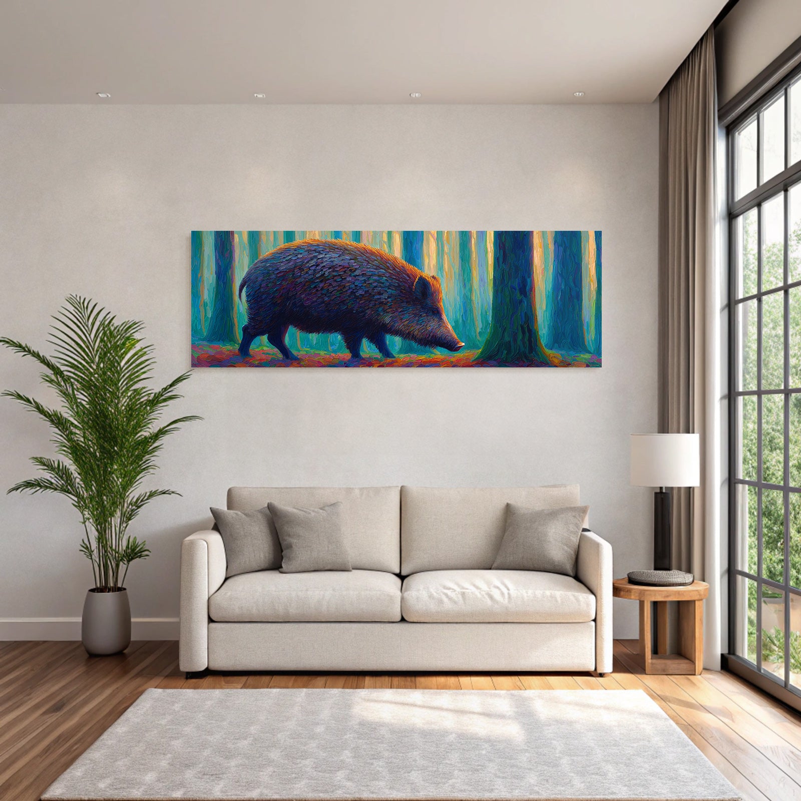 Ein Stück Expressionismus für Deine vier Wände: Das Werk „Wildschwein Im Farbenfrohen Wald“ im hochwertigen FameFrame™ bringt kreative Energie in jeden Raum.