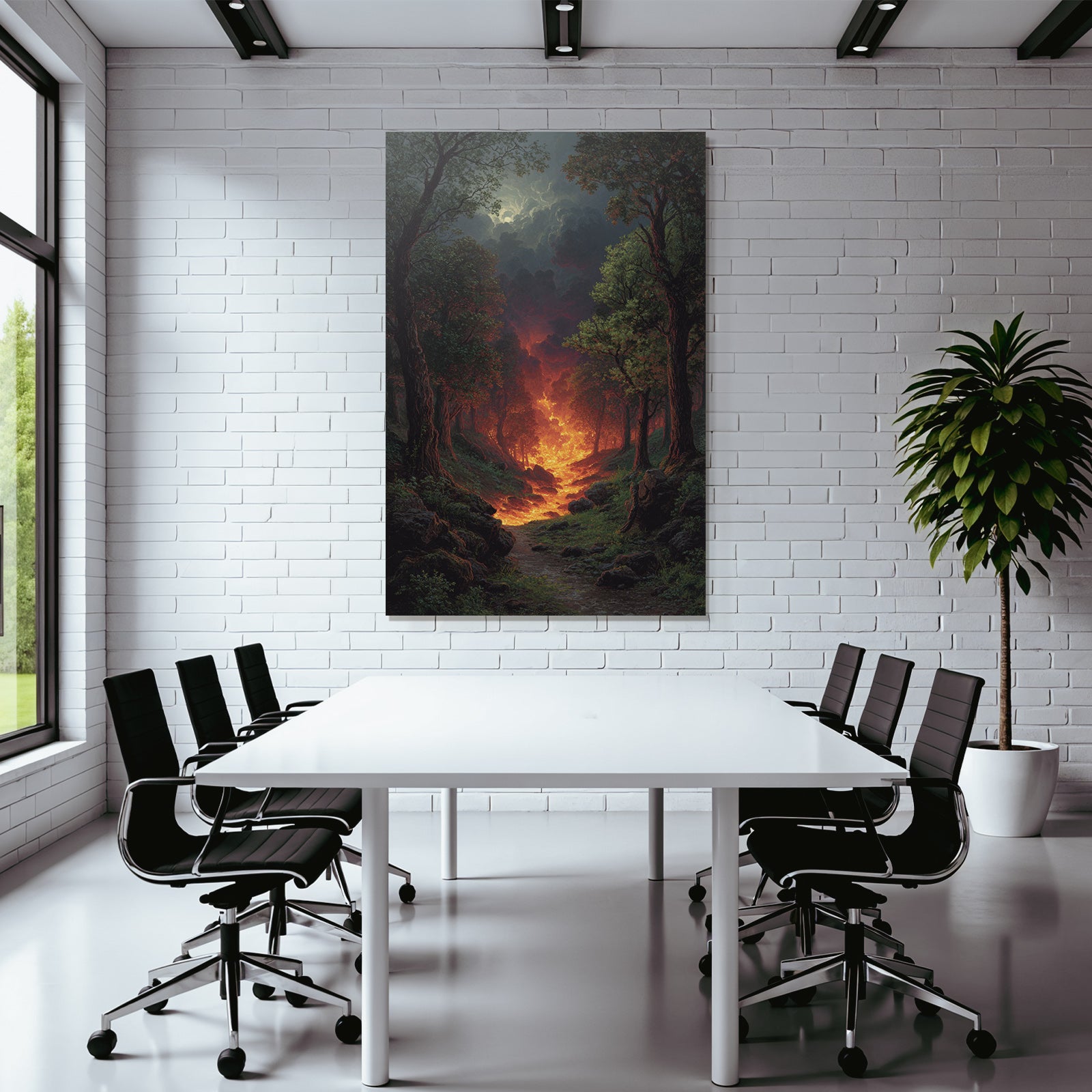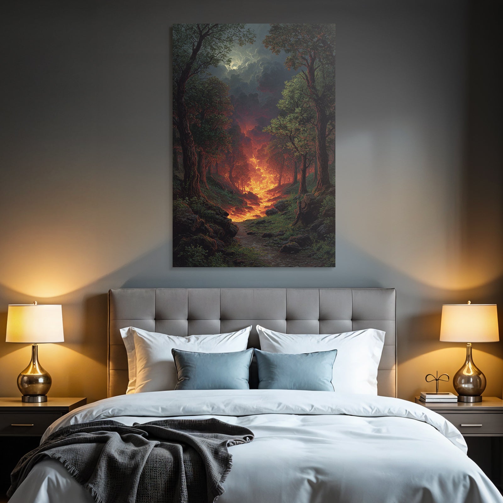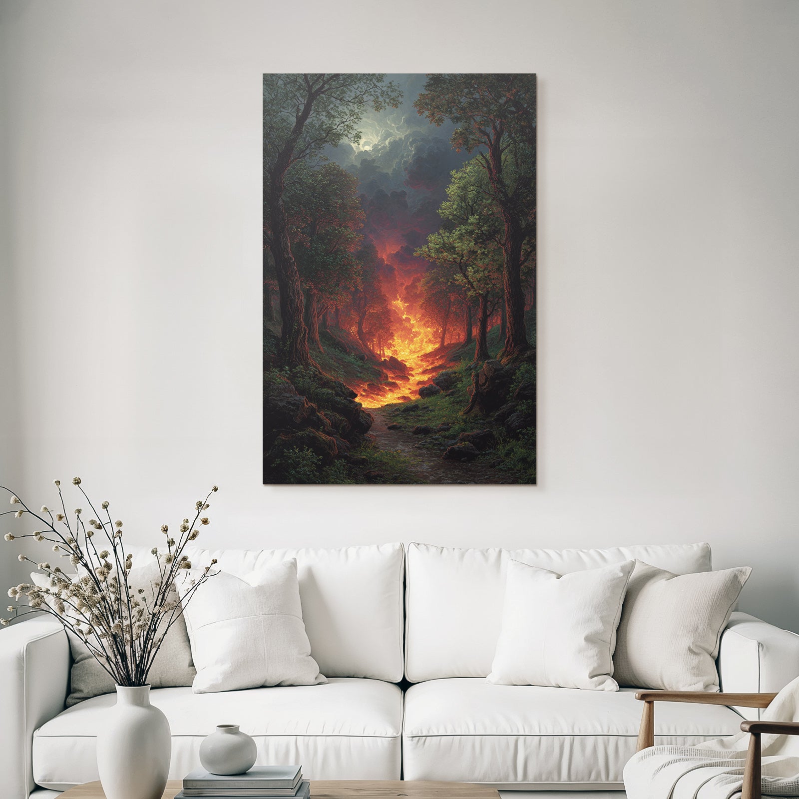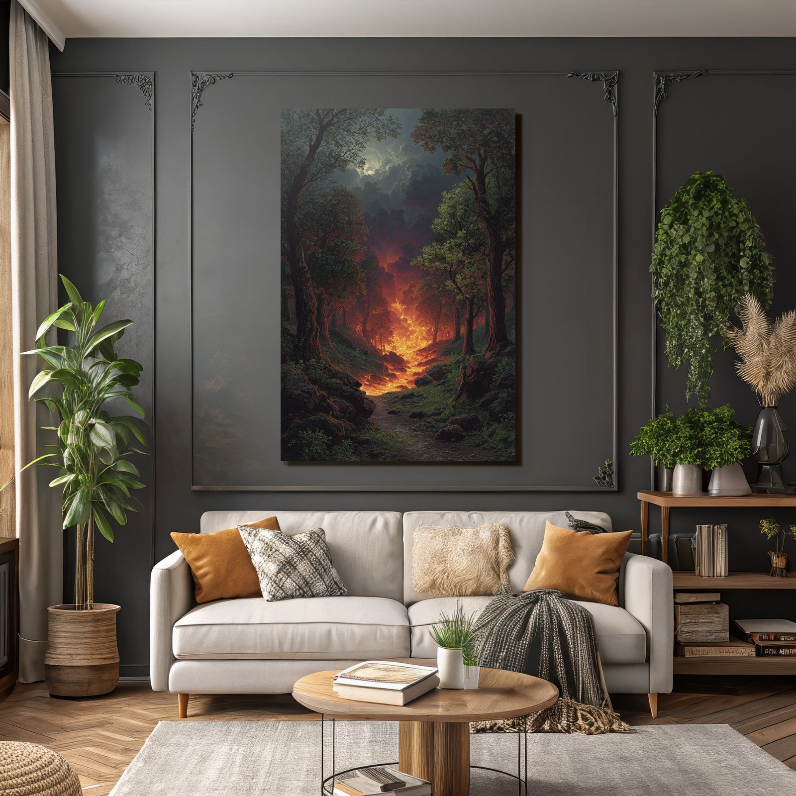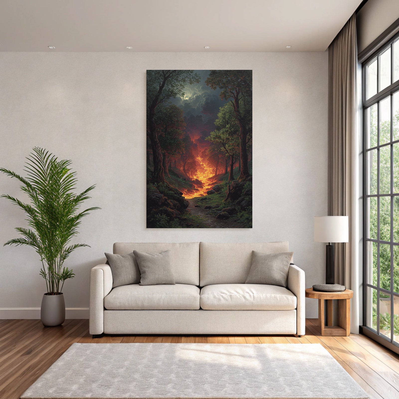 Wenn Sie den Feuer und Vulkane-Look schätzen, werden Sie „Dramatischer Waldweg Mit Lavastrom“ lieben. Im exklusiven FameFrame wird dieses Motiv zum zentralen Element Ihrer Raumgestaltung.
