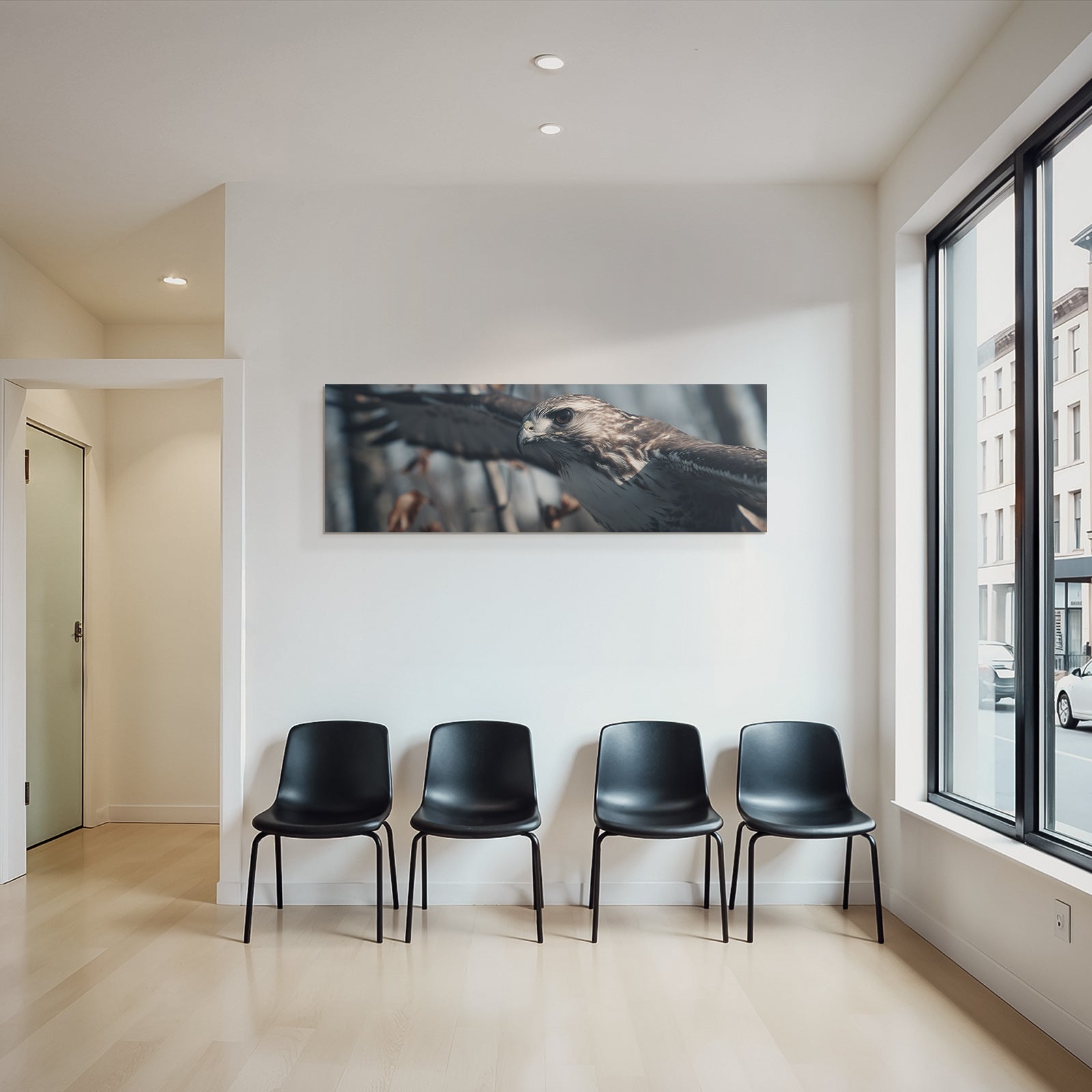 Mach mehr aus Deinem Wohnbereich oder Besprechungszimmer – „Hawk Im Natur“ im Stil Fotografie überzeugt als eleganter Textildruck im FameFrame.