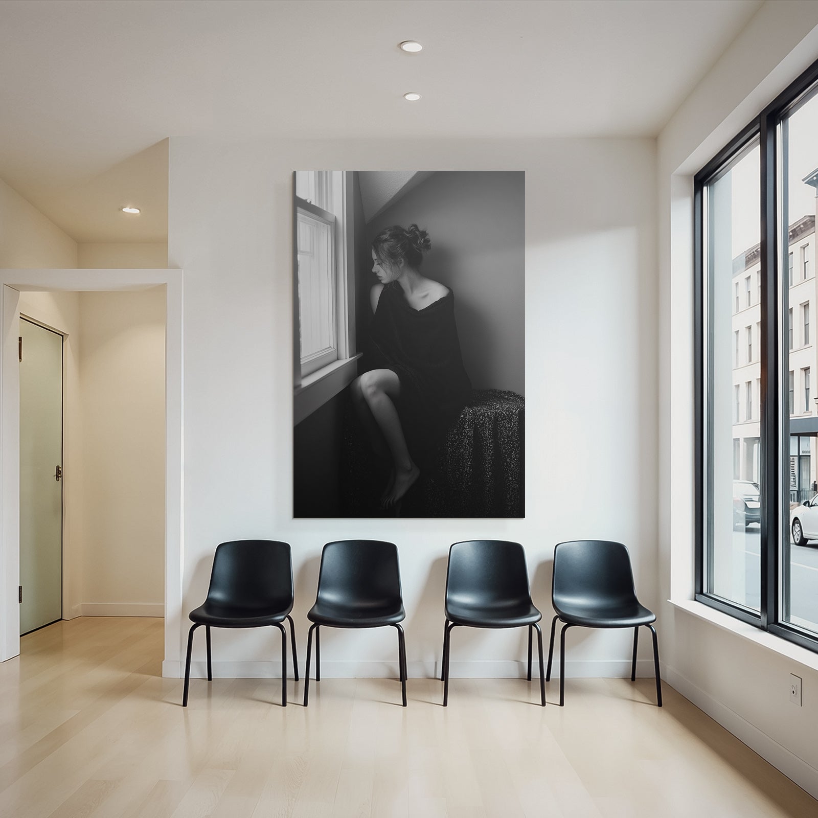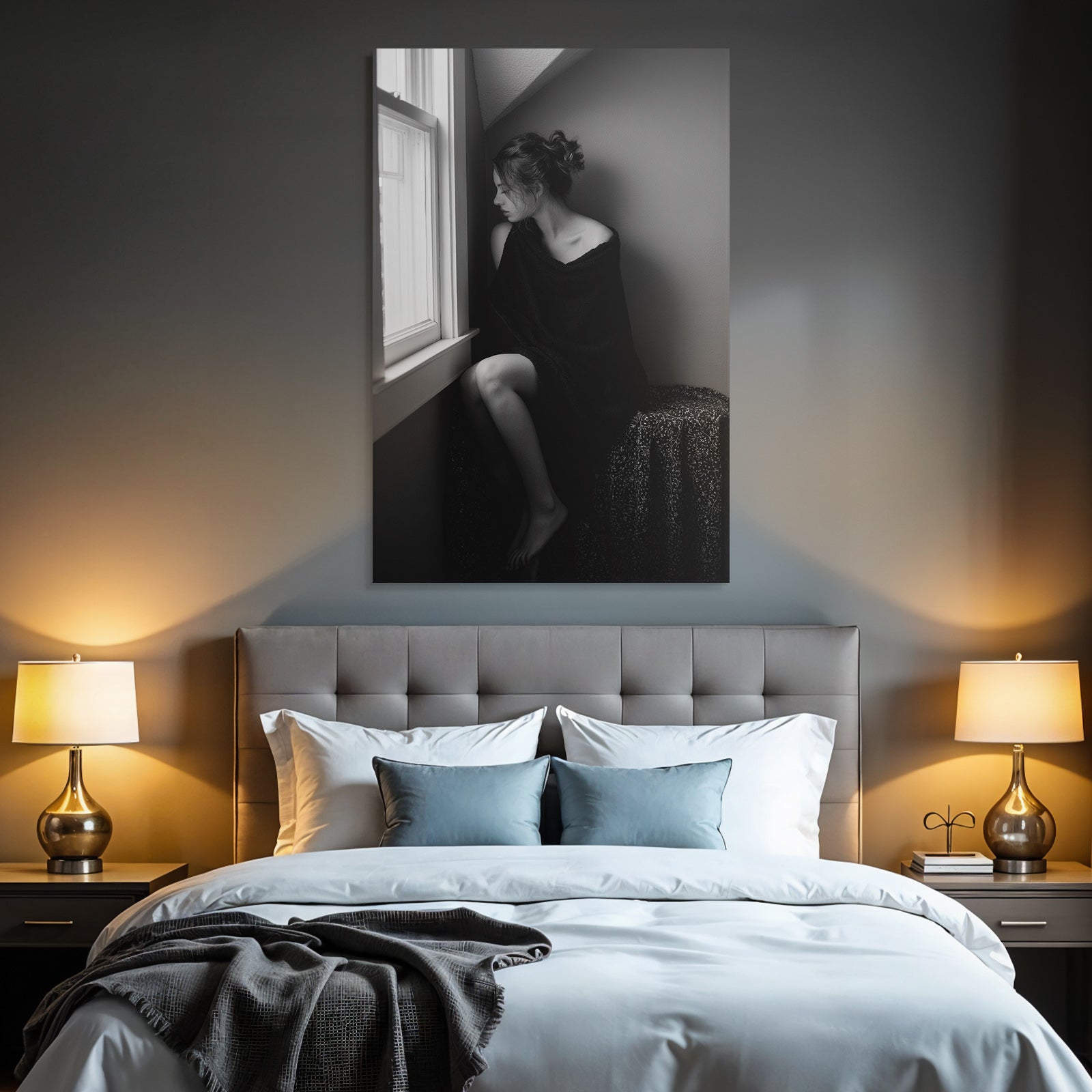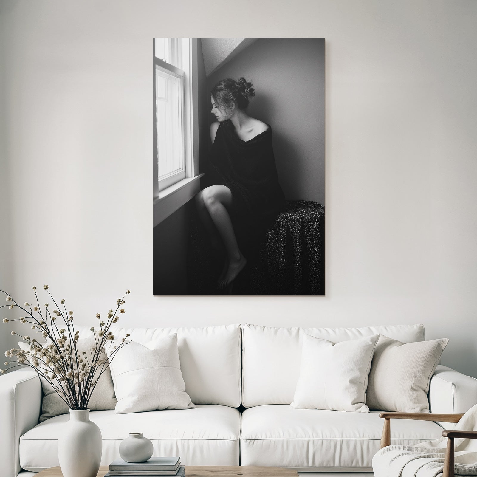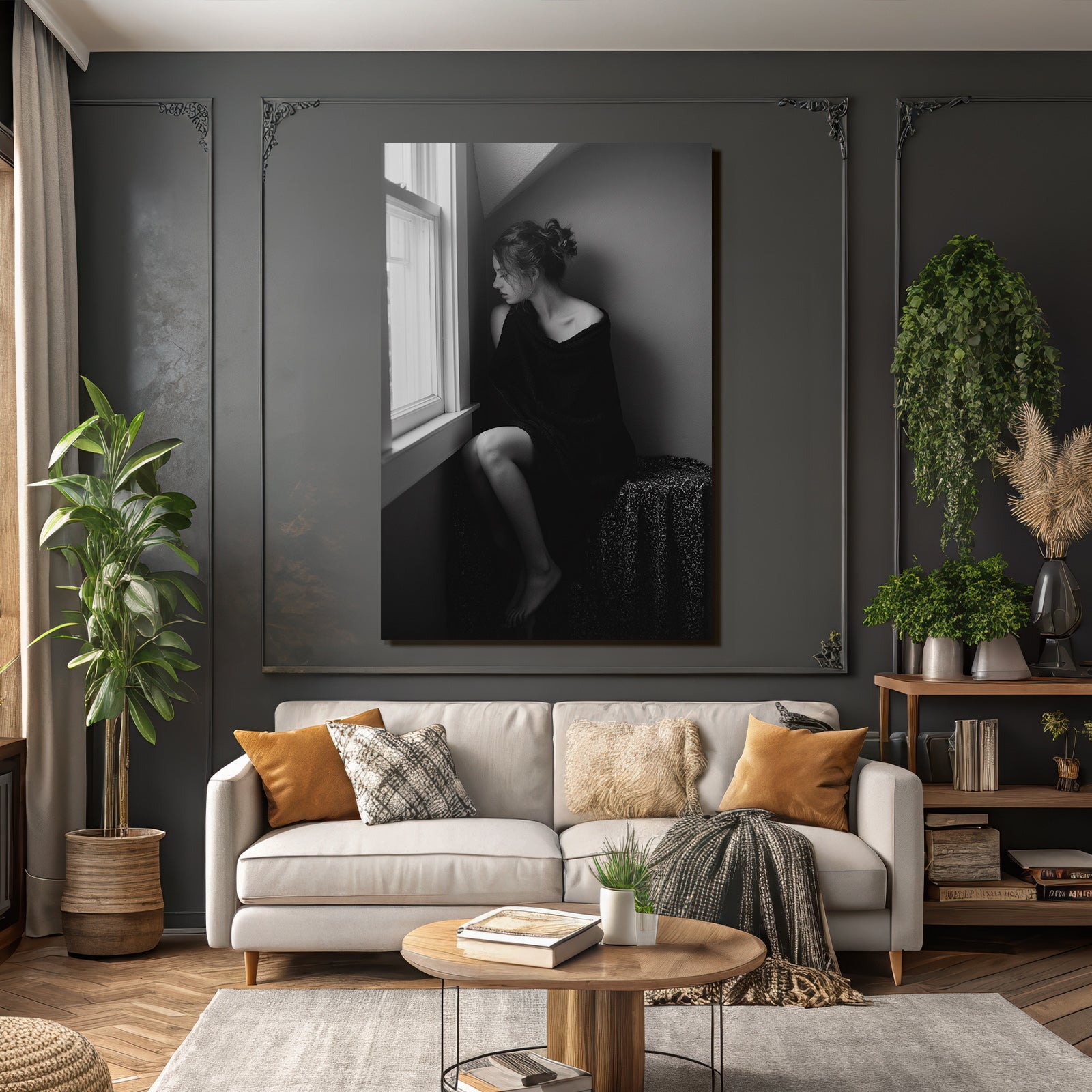 „„Person Am Fenster““ bringt den Stil Fotografie an Deine Wand – perfekt für Schlafzimmer, Homeoffice oder Besprechungsräume, edel gerahmt im FameFrame.