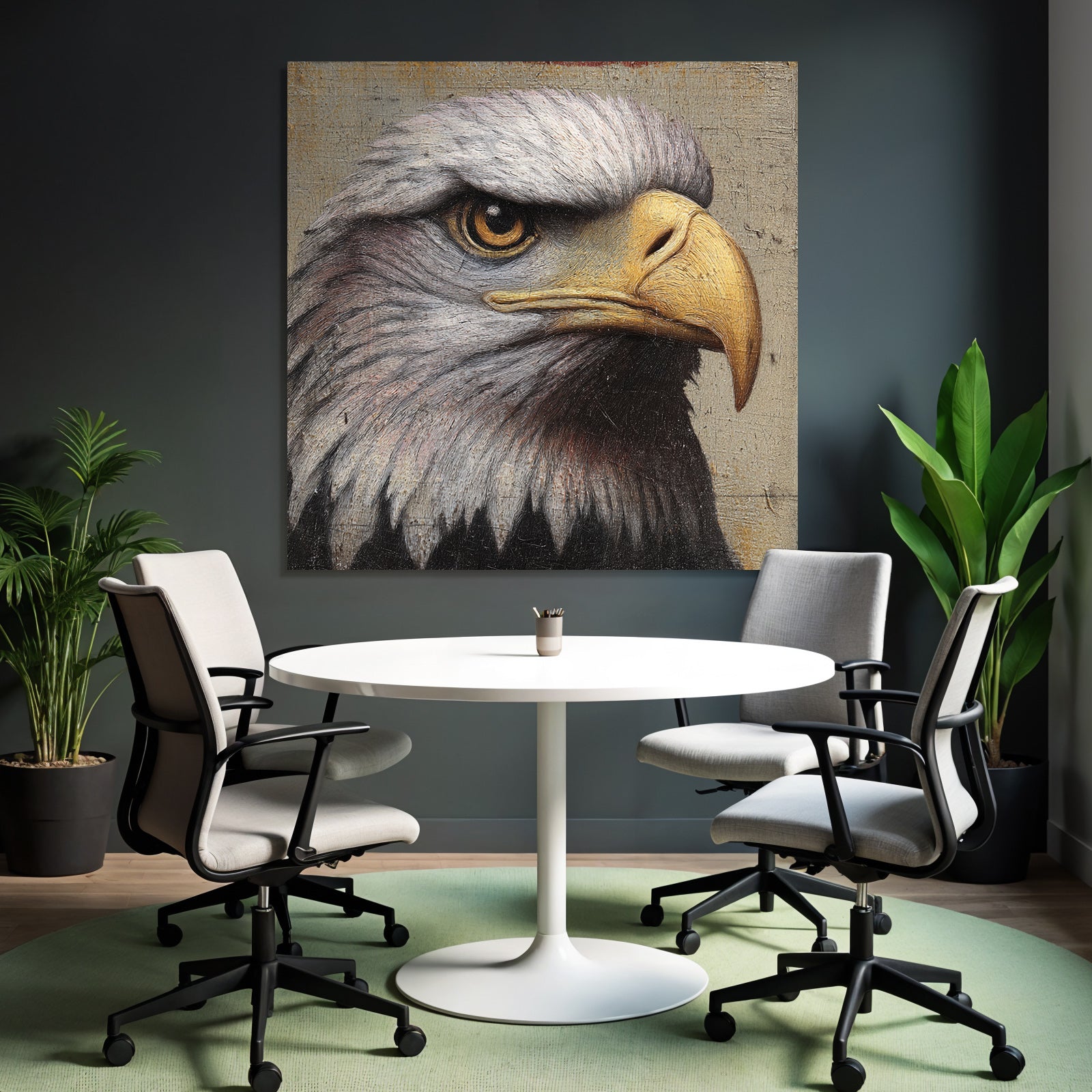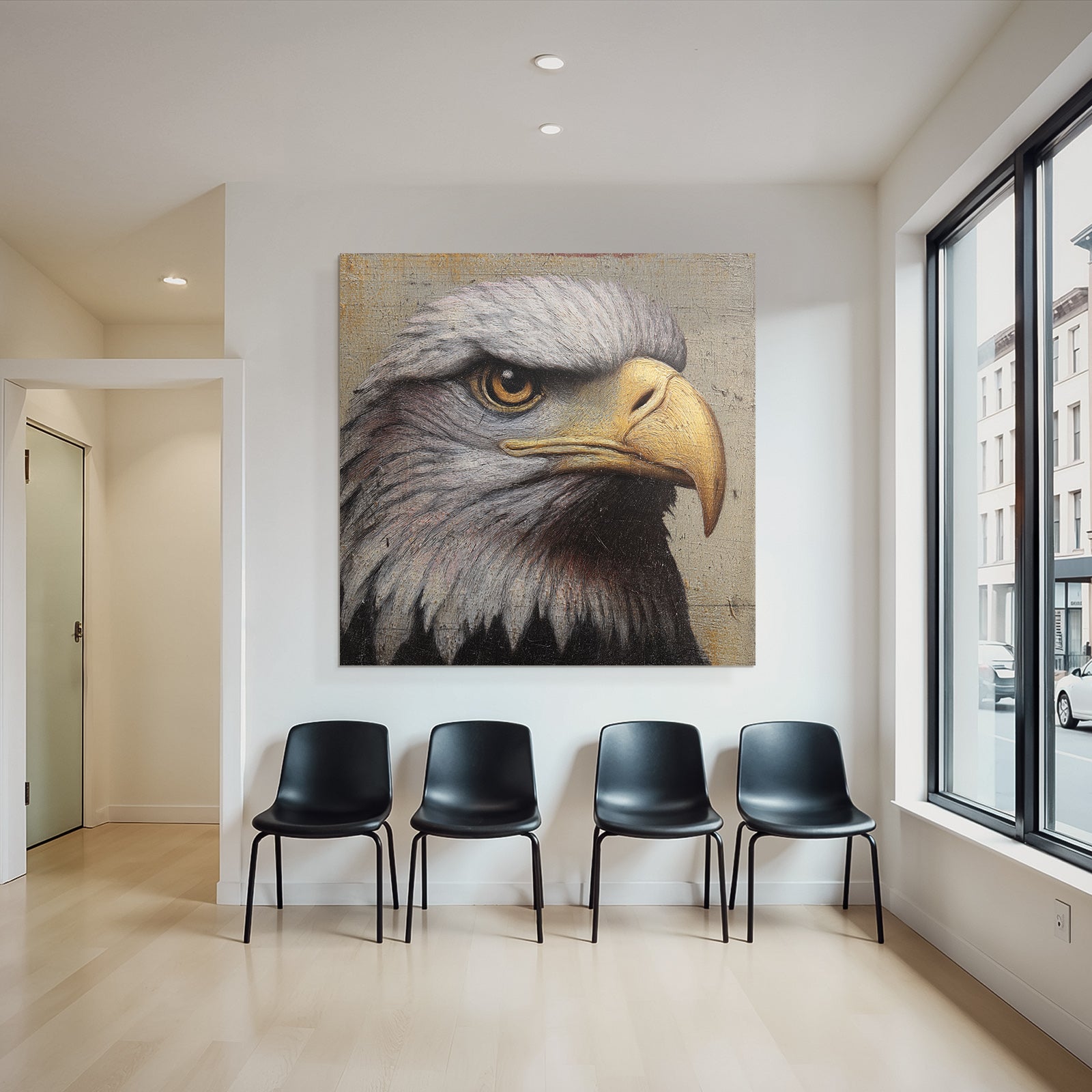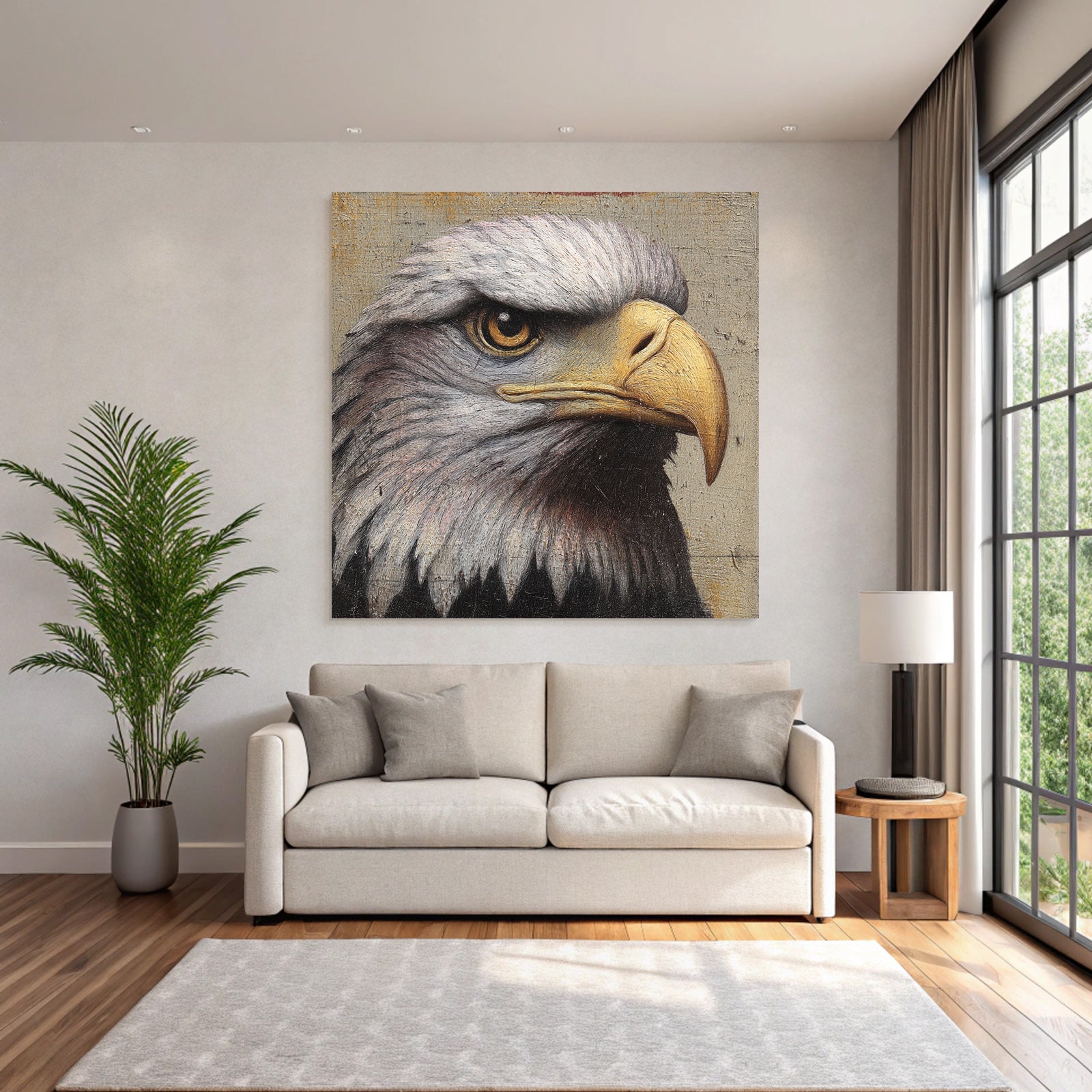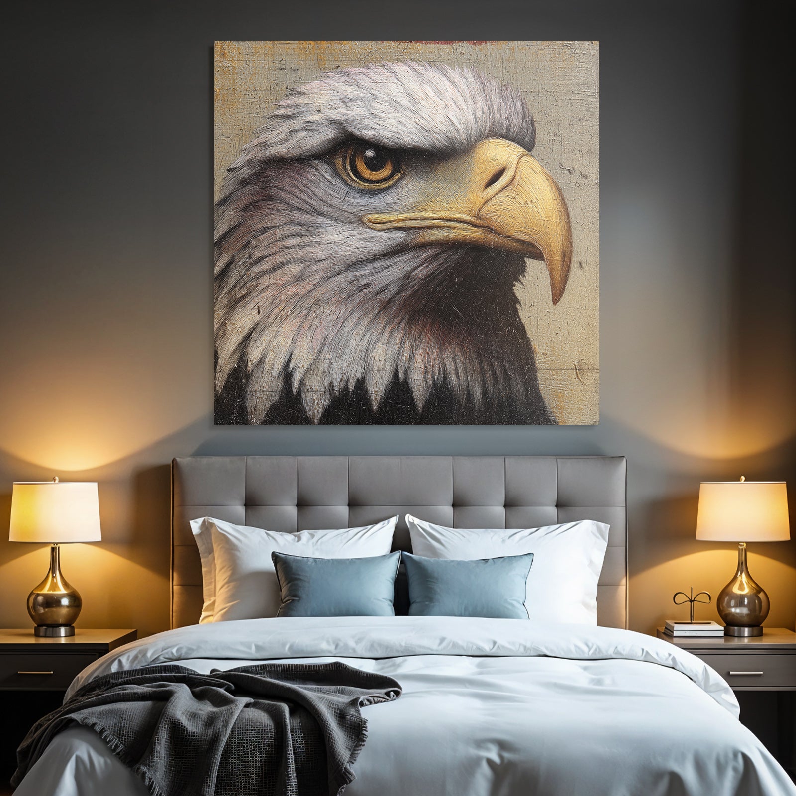 Setze stilvolle Akzente mit Kunst im Look von Grandeur Chic. Das Werk „„Adlerkopf Detail Malerei““ entfaltet im edlen FameFrame seine volle Wirkung.
