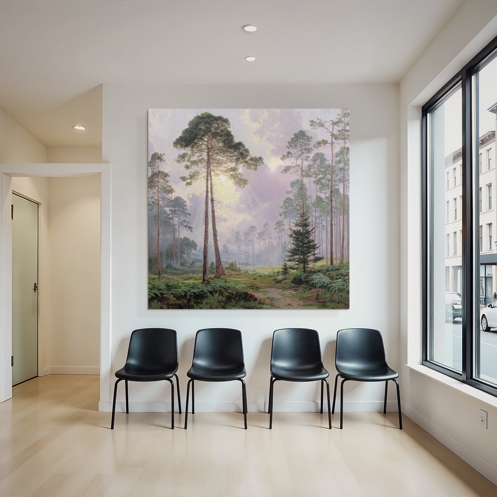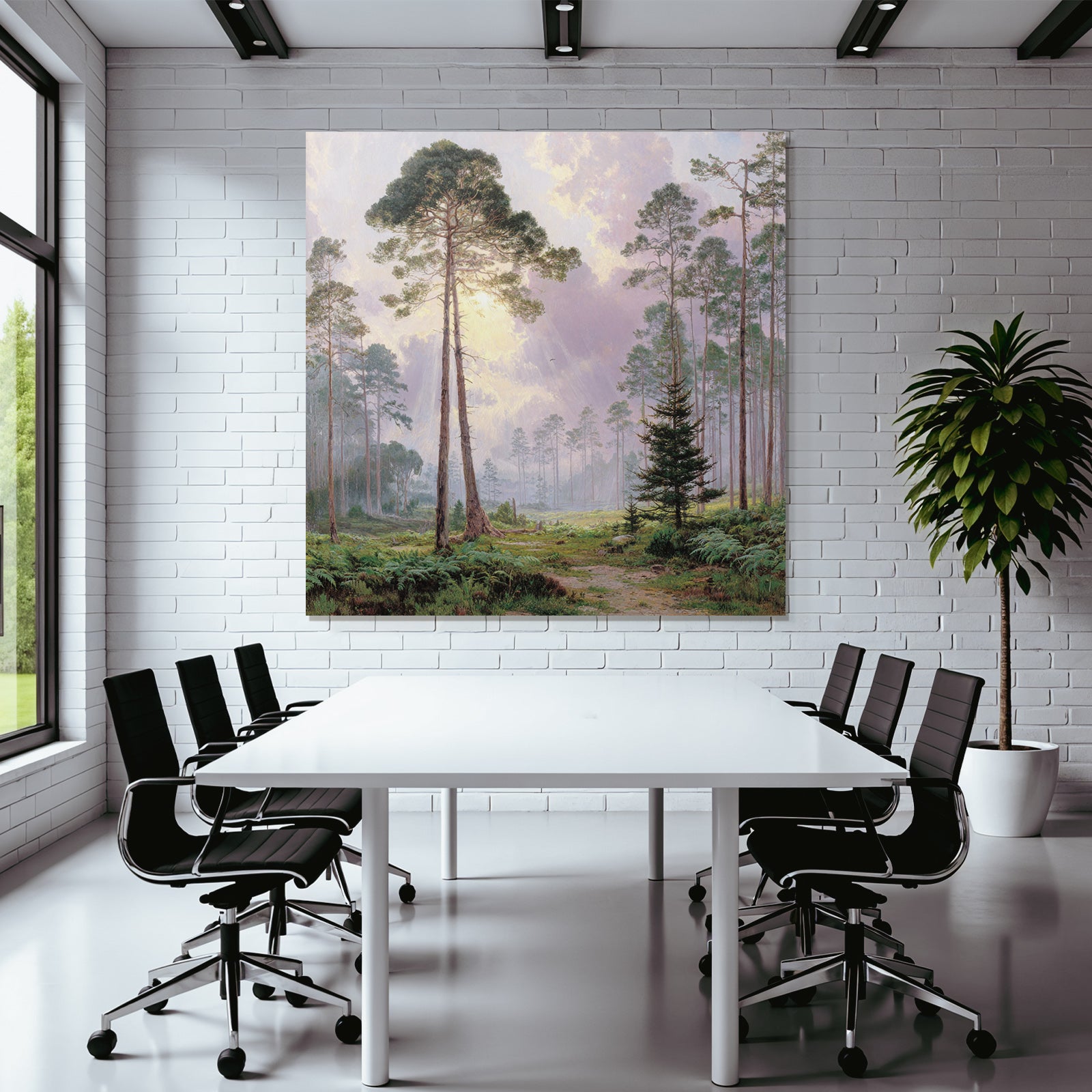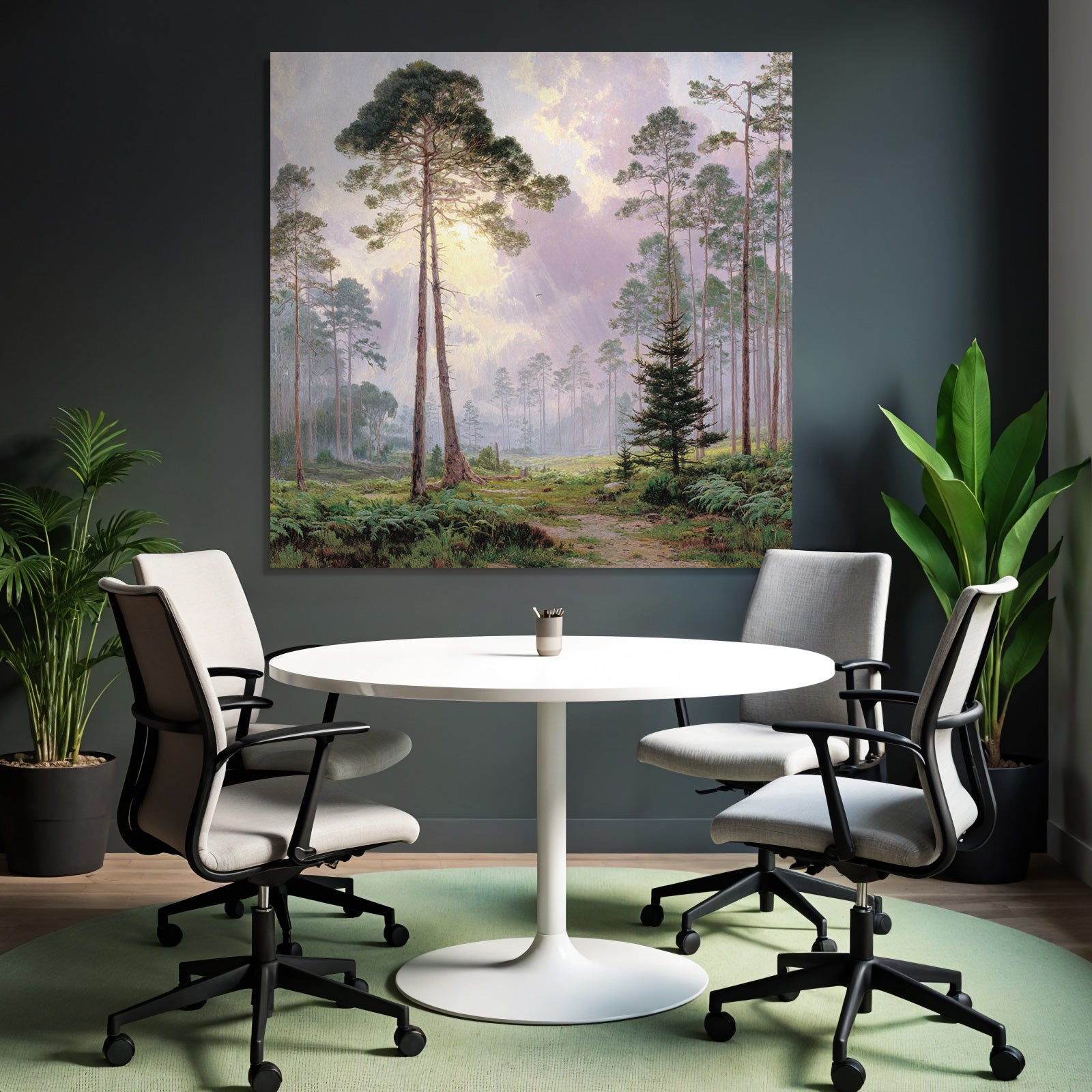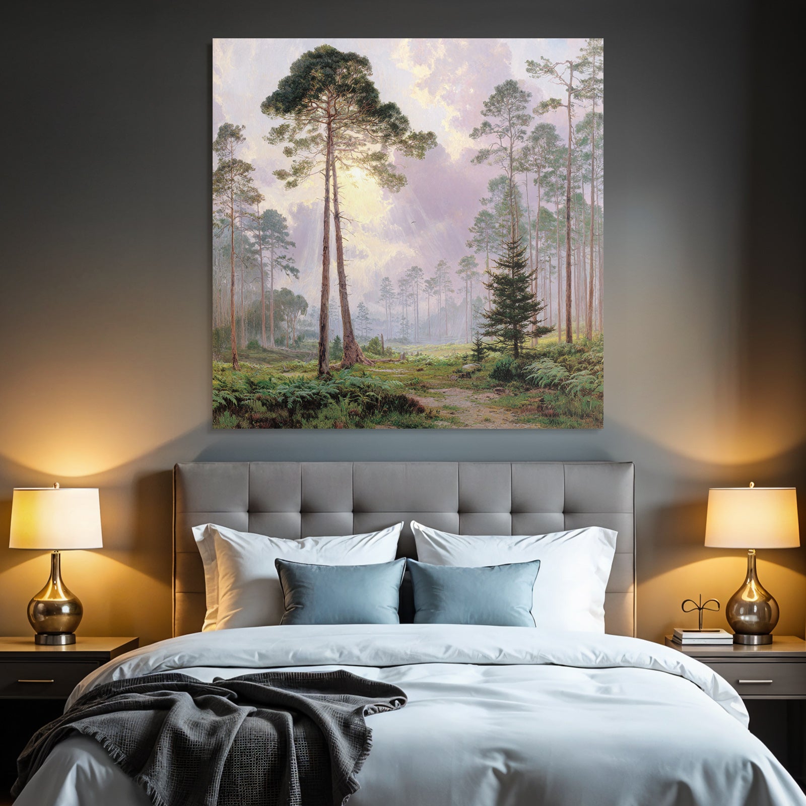 Mit Himmel und Wolken-Elementen und klarer Wirkung verleiht „Friedlicher Wald Mit Sonnenstrahlen“ Deinem Raum Persönlichkeit – eingerahmt im exklusiven FameFrame.
