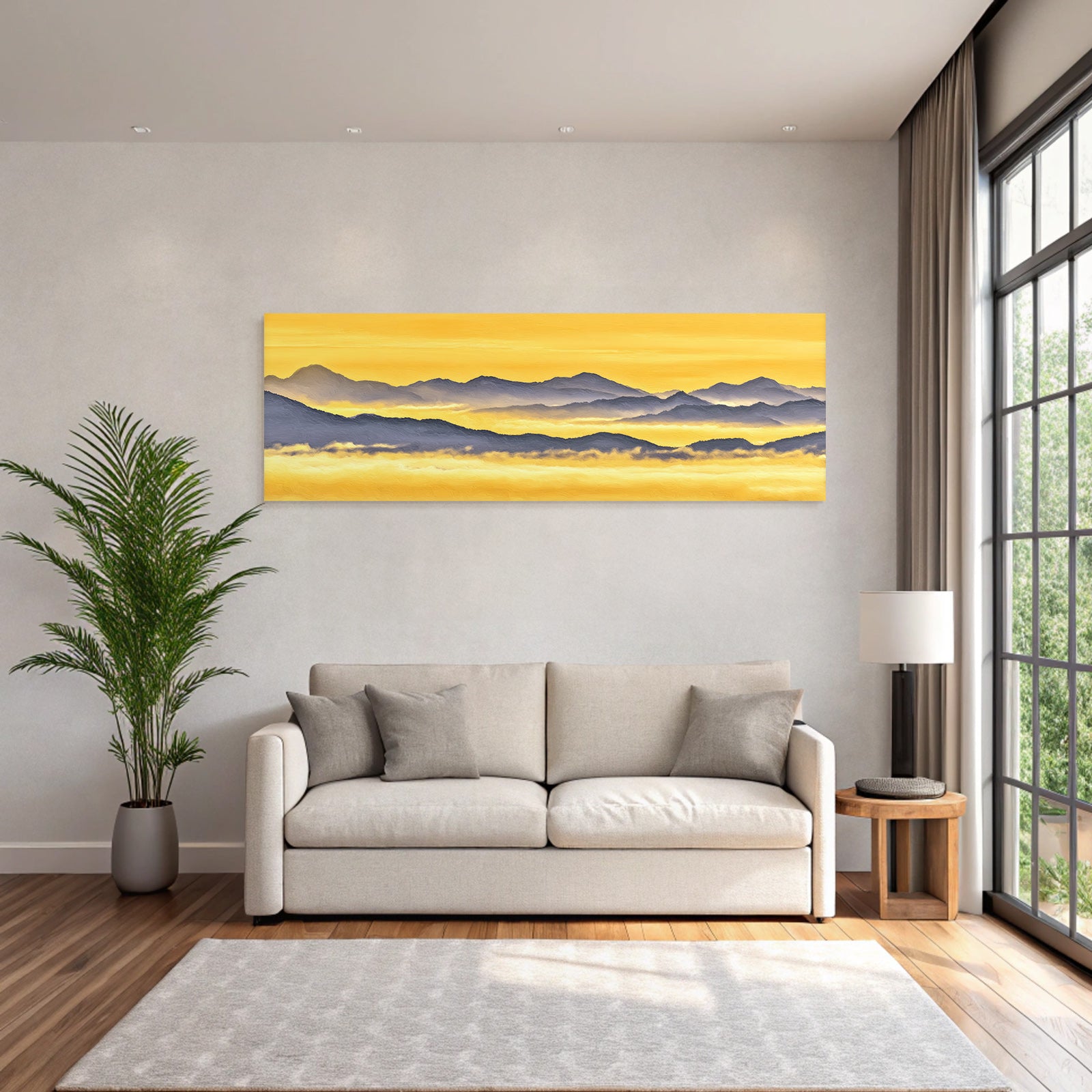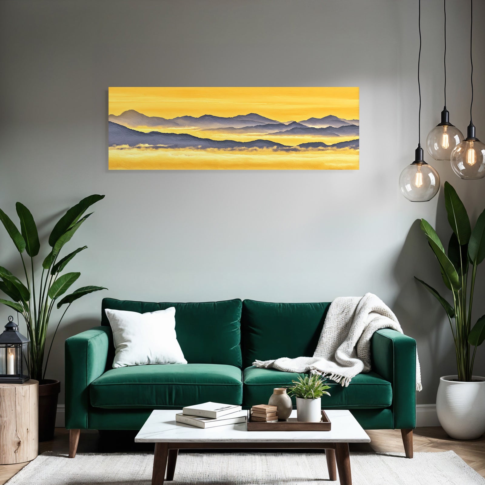 Der Stil Himmel und Wolken, neu interpretiert. Mit „Gebirgssilhoütte Am Sonnenaufgang“ holen Sie sich ein Kunstwerk nach Hause, das im eleganten FameFrame seine volle ästhetische Kraft entfaltet.