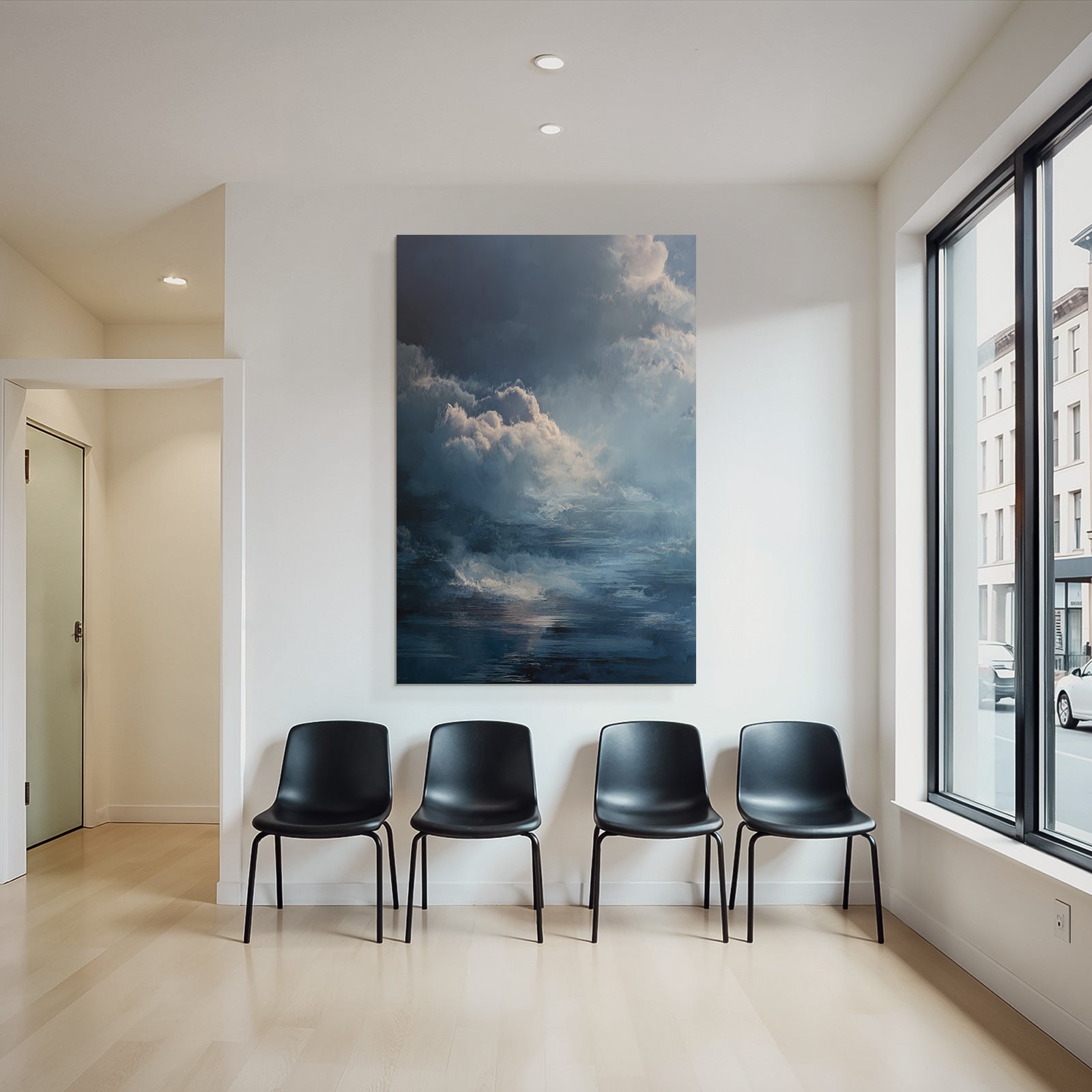 „Ruhige Meerlandschaft Unter Wolkenhimmel“ verleiht Ihrem Raum Charakter. Die Anlehnung an den Stil Himmel und Wolken, kombiniert mit der schlichten Eleganz des FameFrame, schafft eine einzigartige Atmosphäre.