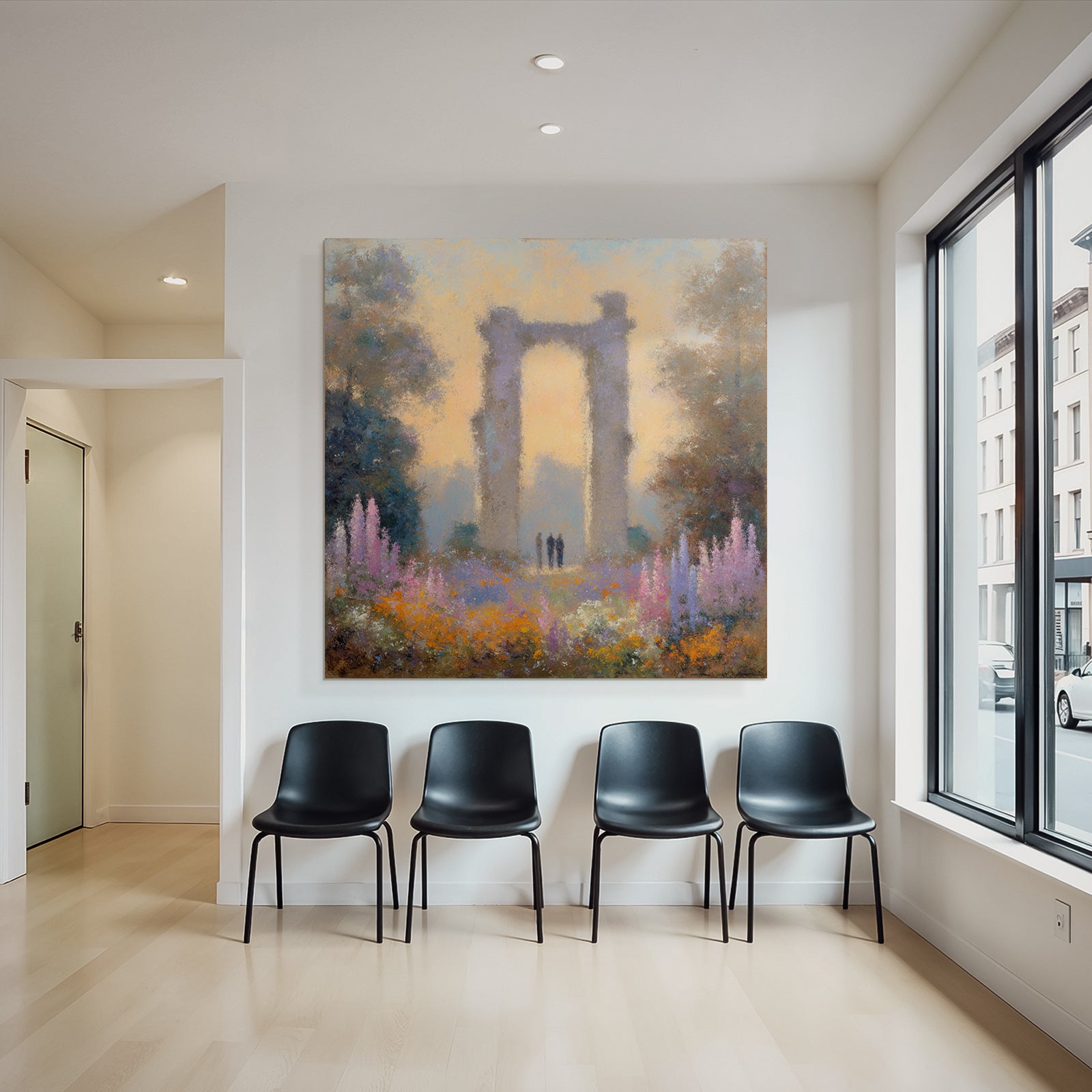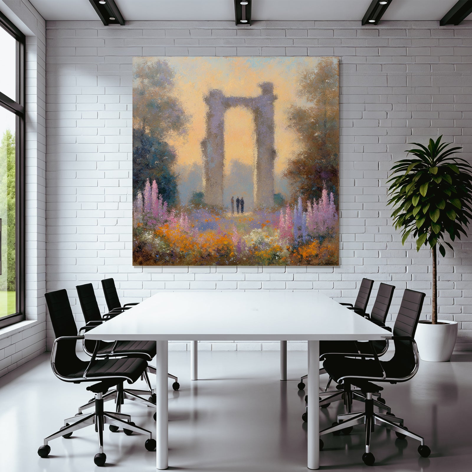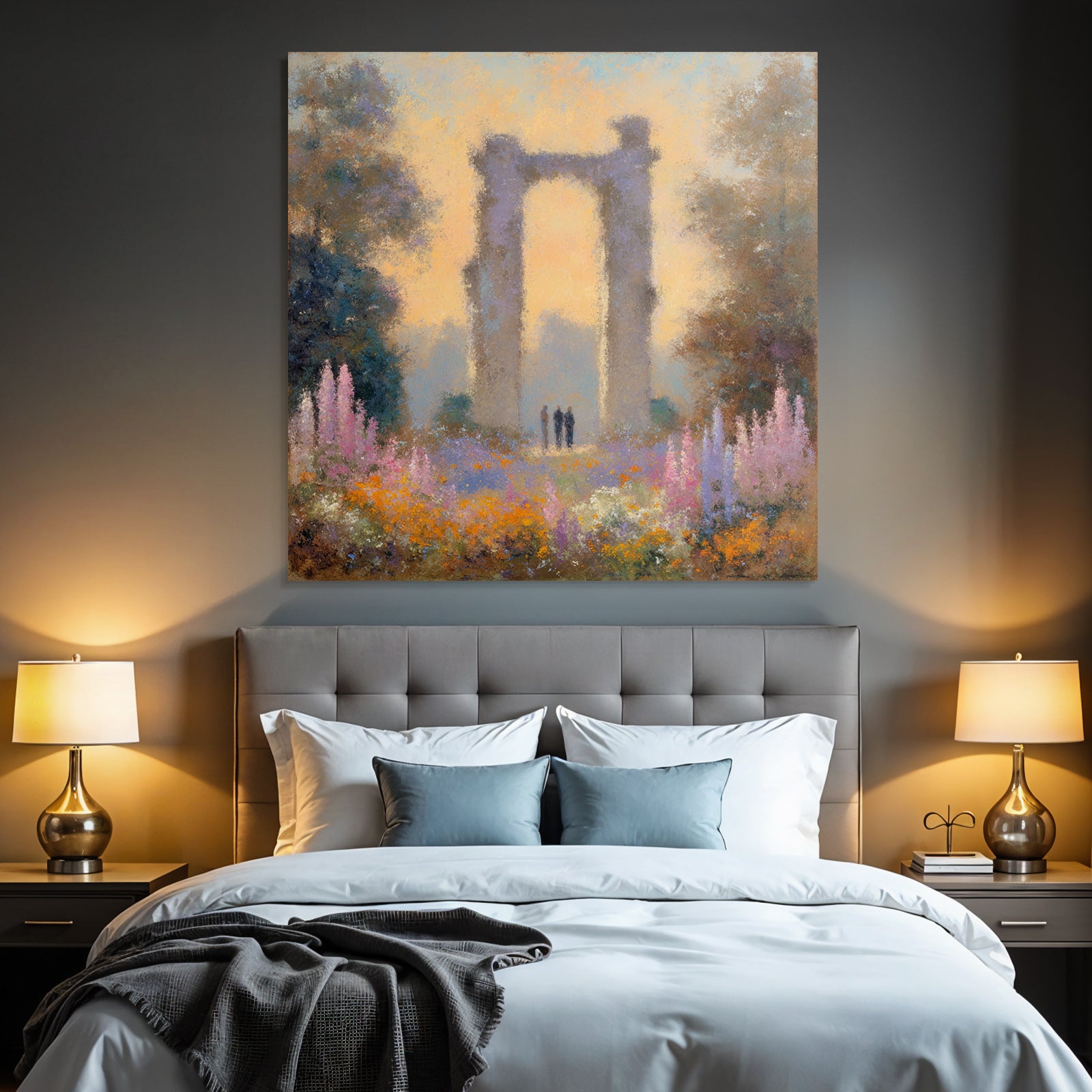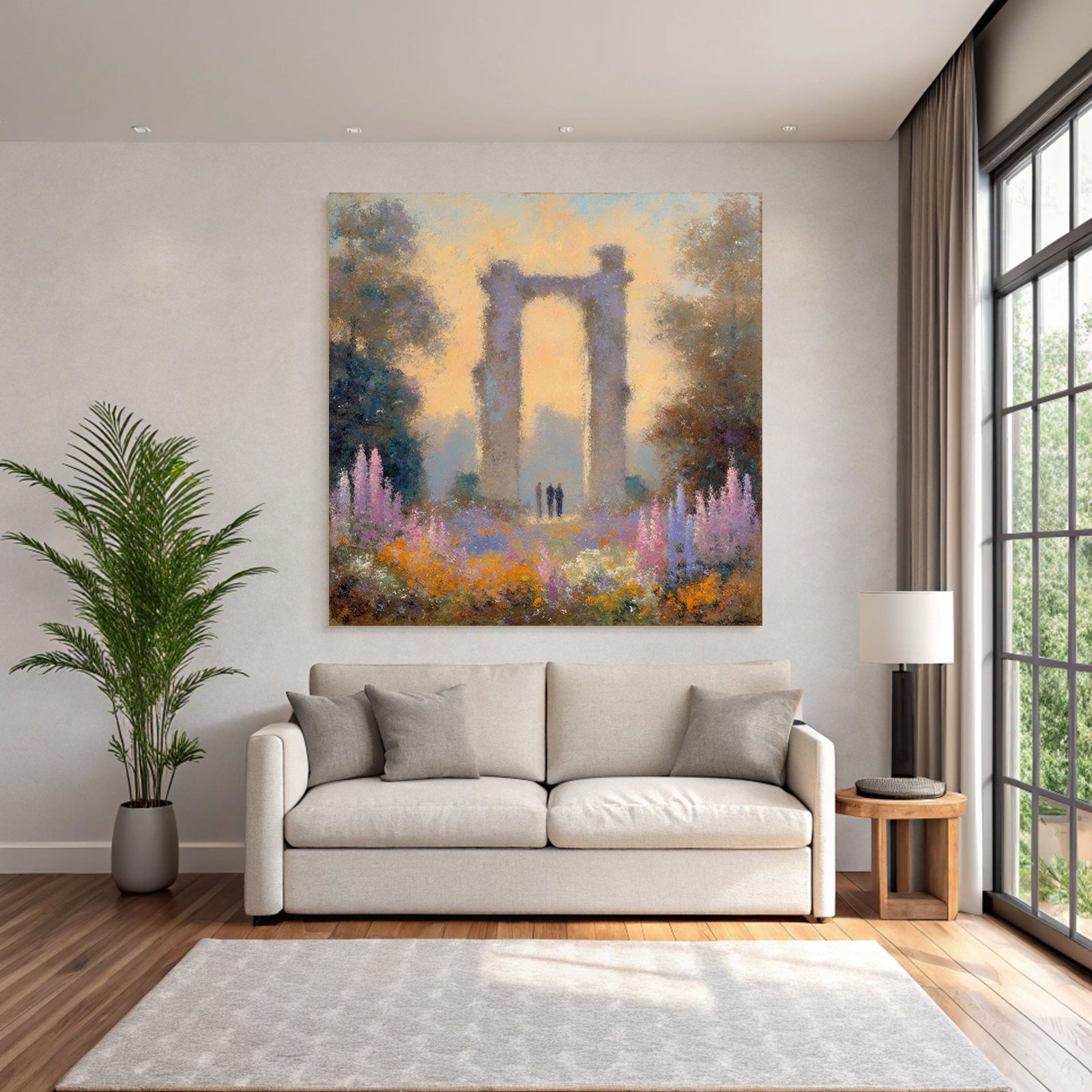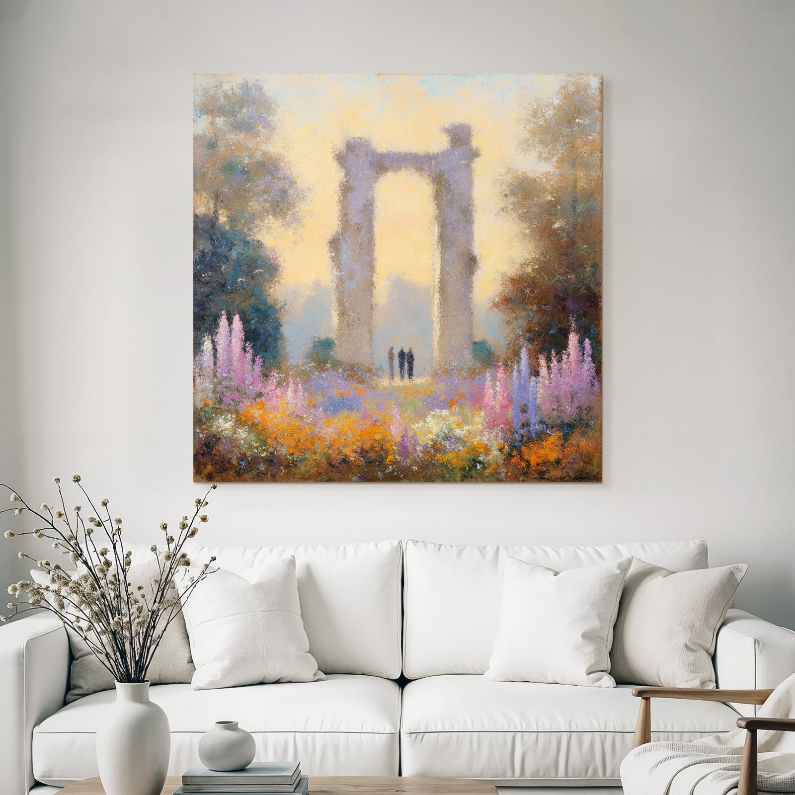 Ein Meisterwerk im Stil Impressionismus: „Ruine Im Blumenmeer Mit Besuchern“ fängt die Atmosphäre und die typischen Elemente dieses Stils ein und wird im FameFrame™ zum zeitlosen Hingucker.