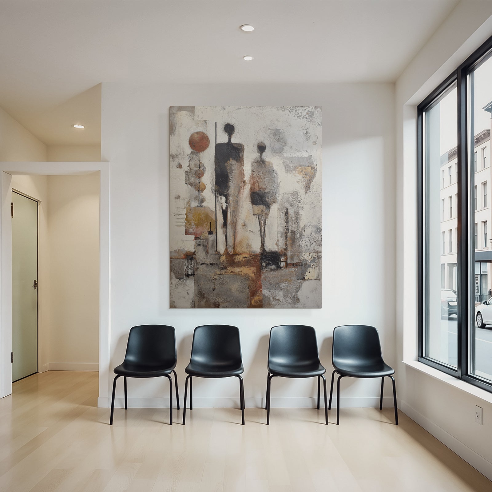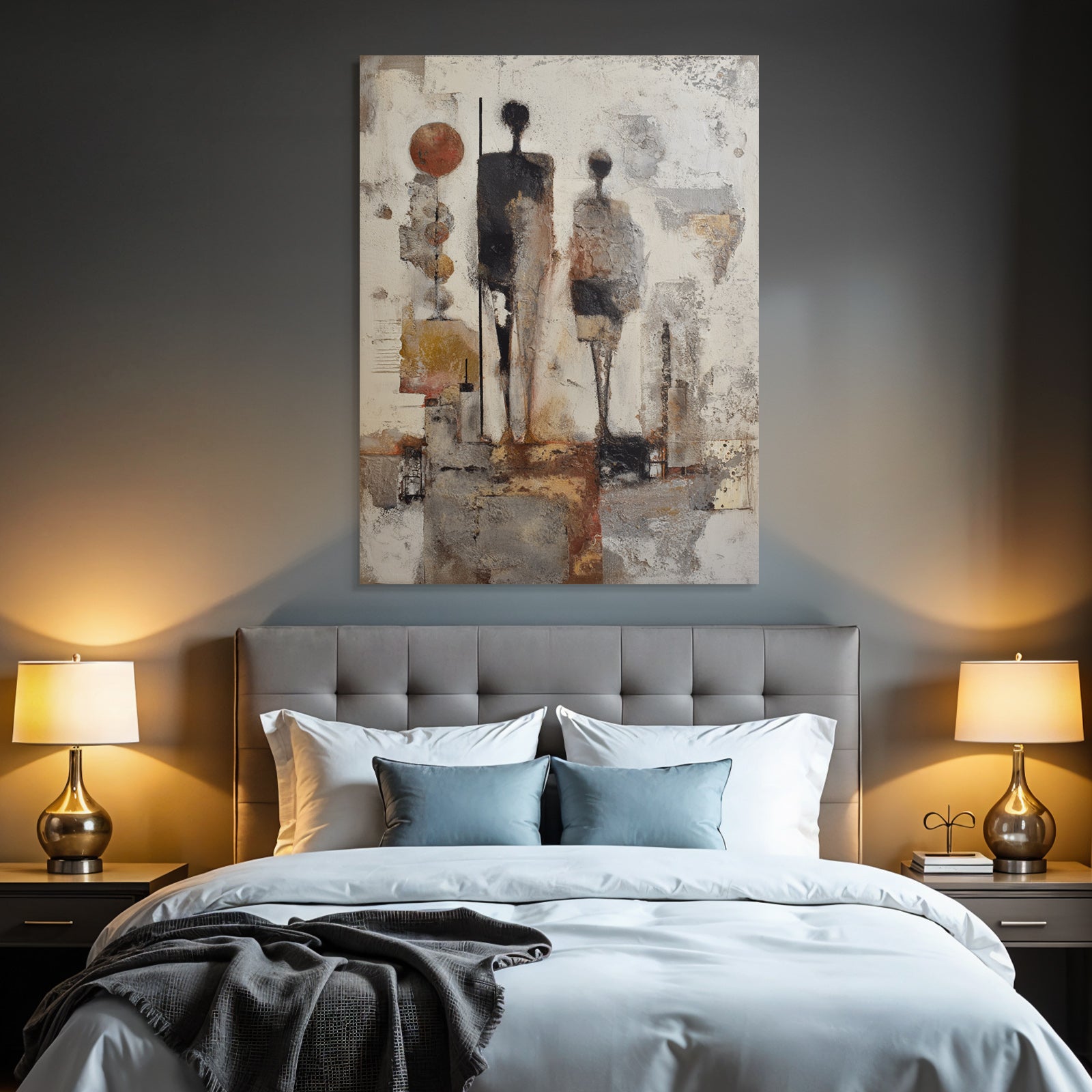 „„ Abstraktes Gemaelde Mit Zwei Figuren““ im Stil Industrial sorgt für stilvolle Ruhe im Schlafzimmer oder inspirierende Energie im Büro – perfekt im FameFrame inszeniert.