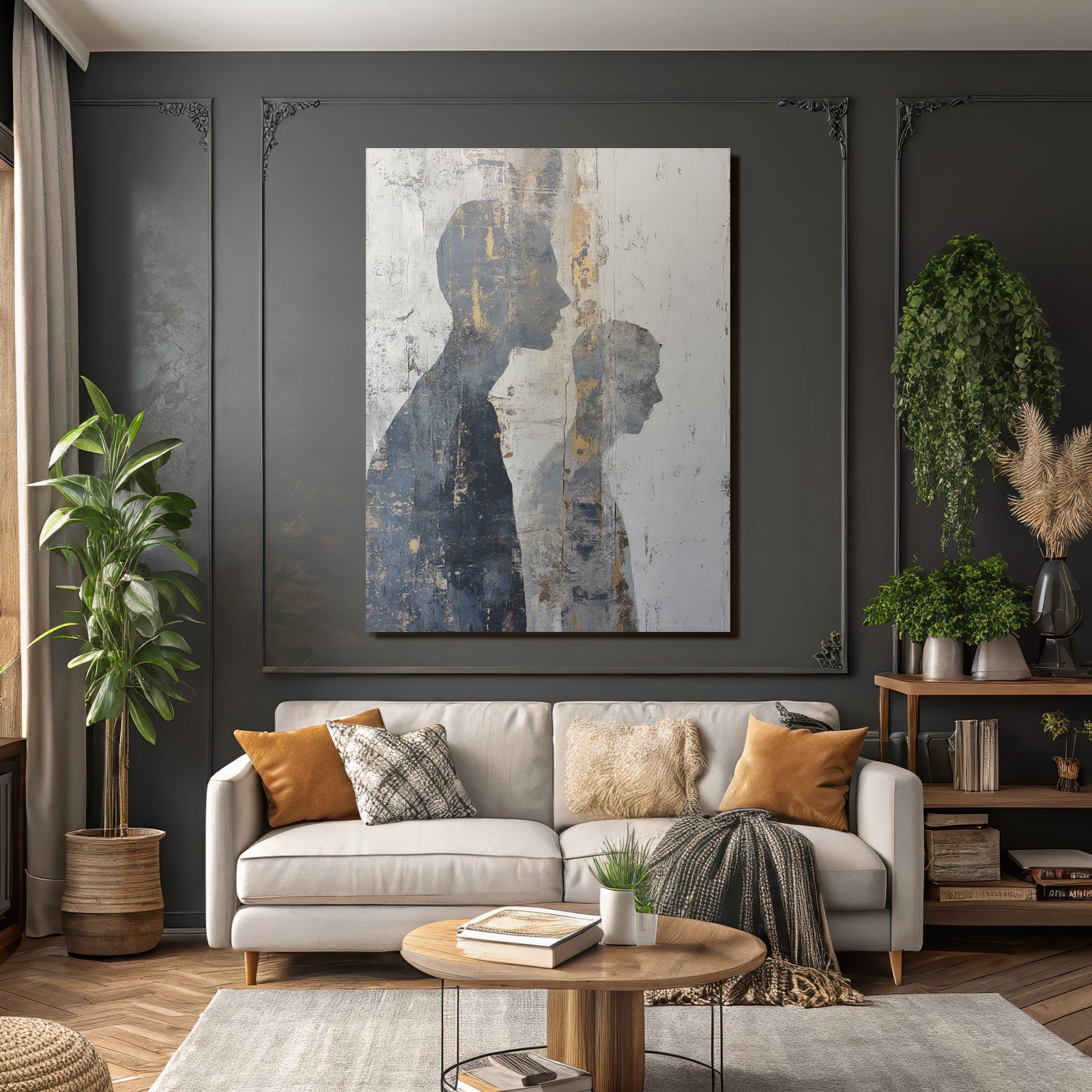 Ideal für Innenräume mit Stil: „„ Kuenstlerische Silhouetten Auf Strukturiertem Hintergrund““ im Stil Industrial zieht im FameFrame die Blicke auf sich – egal ob Zuhause oder im Geschäft.