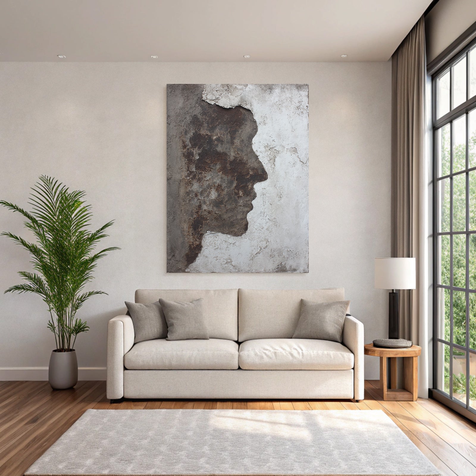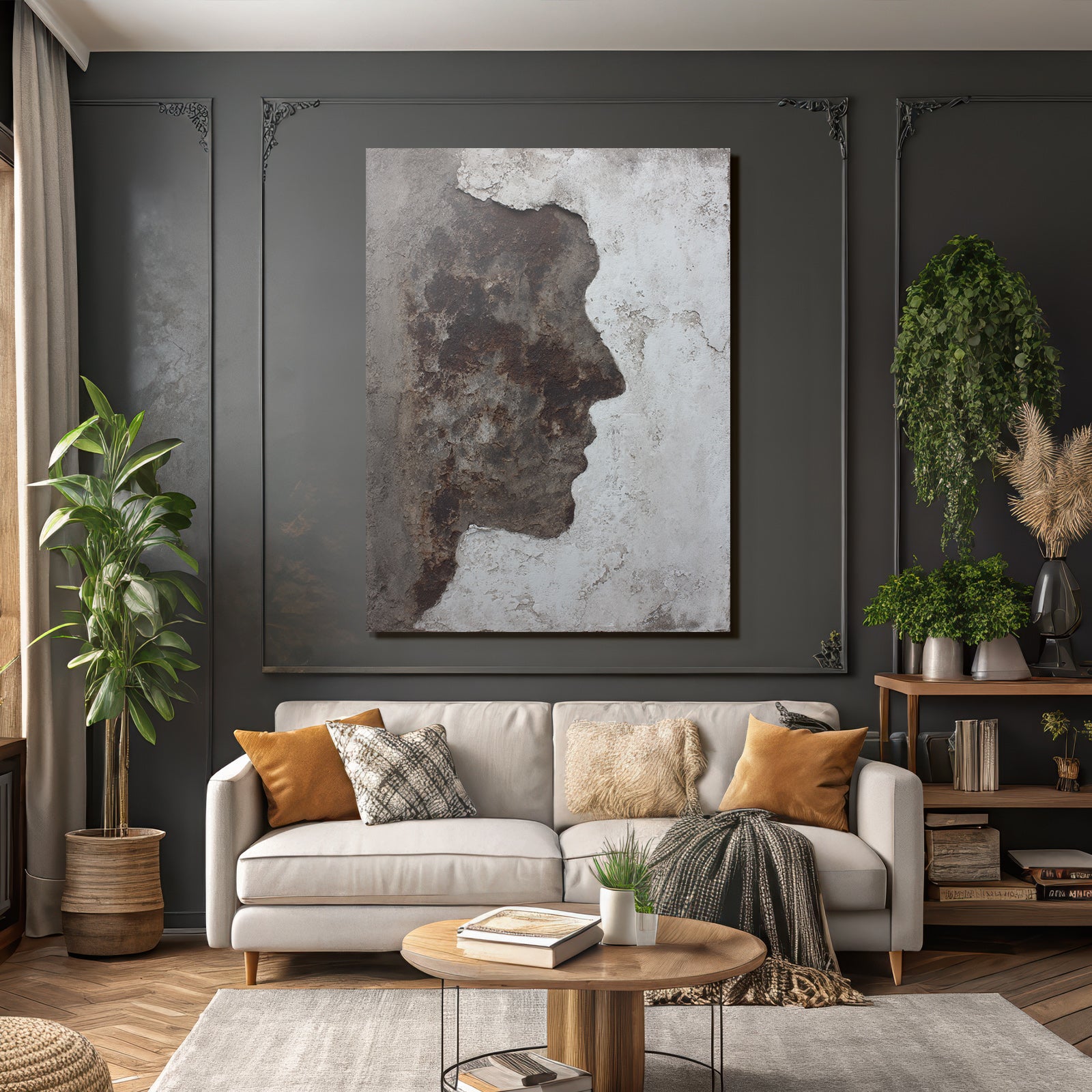 Kunst trifft Design: „„ Menschliches Profil Texturierte Oberflaeche““ im Stil Industrial entfaltet im FameFrame seine volle Ausdruckskraft.