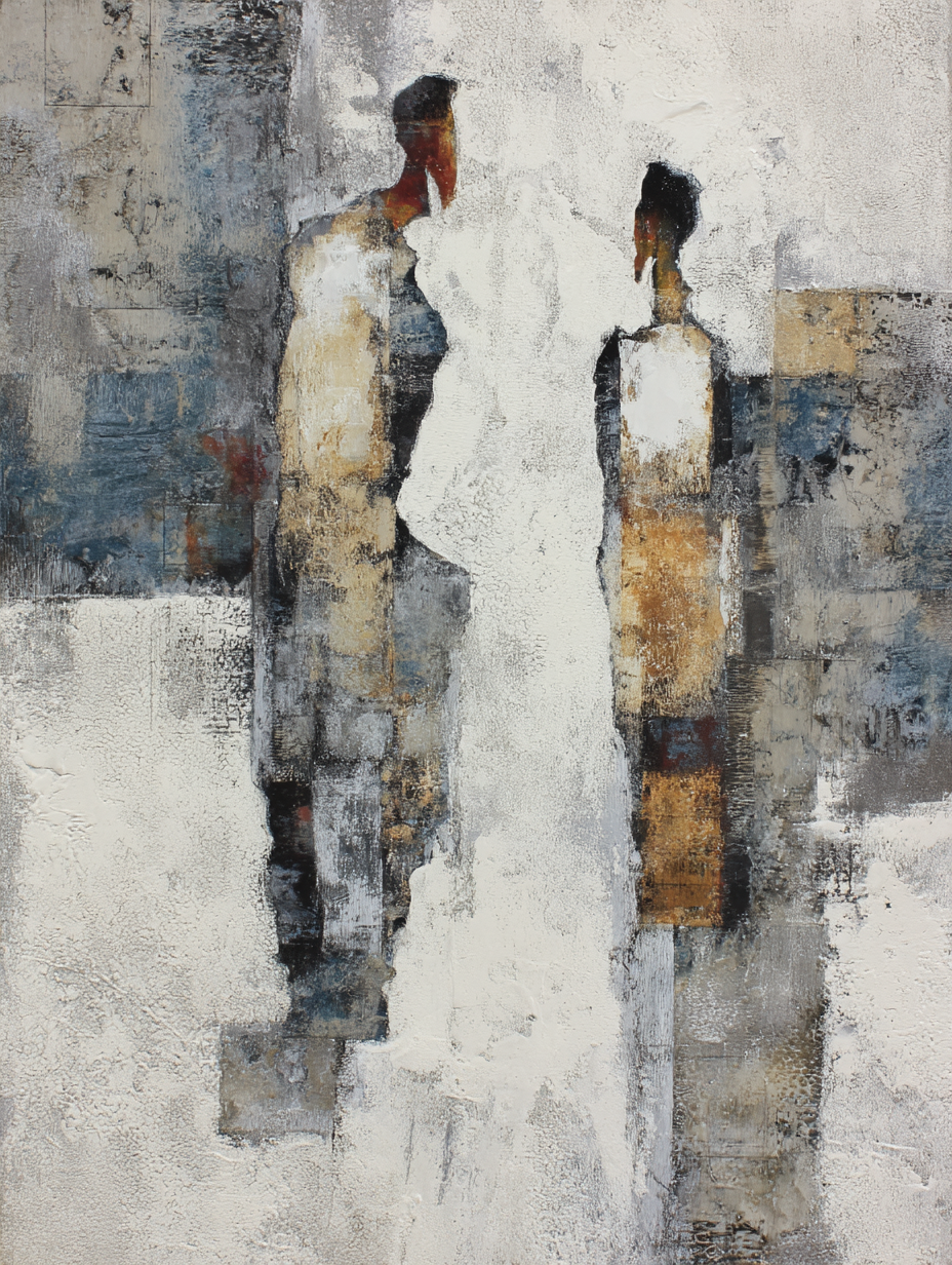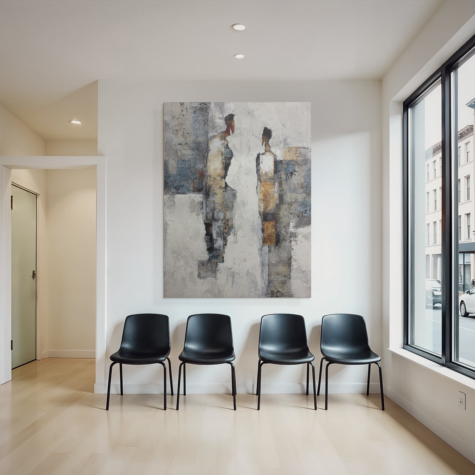 „„Silhouette Figuren Abstract““ verbindet das Beste aus Industrial mit modernem Textildruck – edel präsentiert im hochwertigen FameFrame.