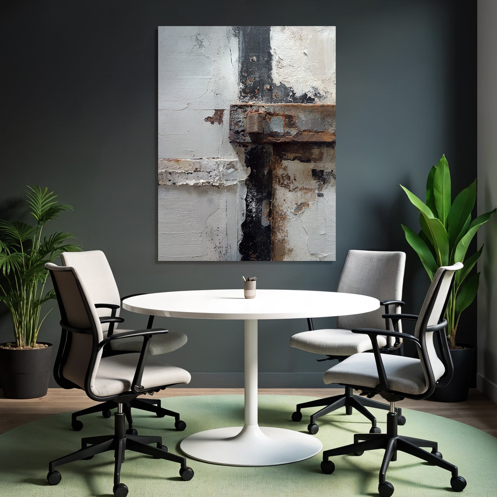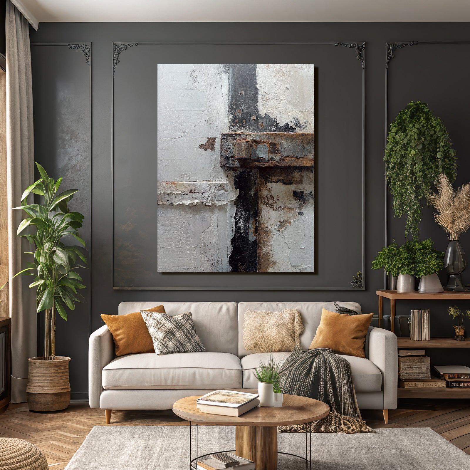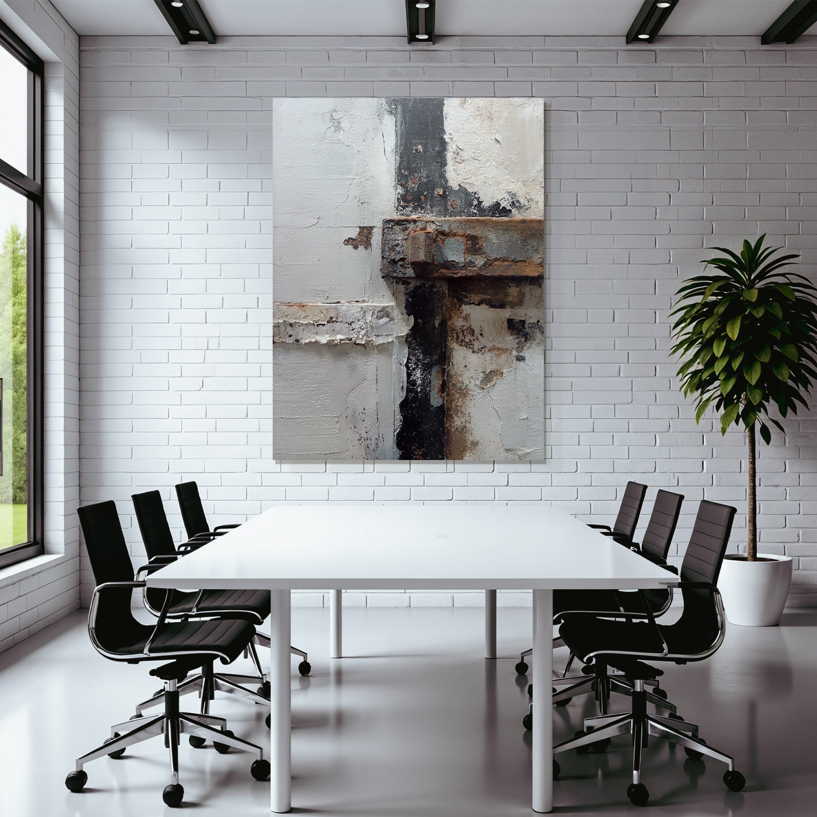 „„ Wetterbedingtes Metall Oberflaeche““ bringt den Stil Industrial an Deine Wand – perfekt für Schlafzimmer, Homeoffice oder Besprechungsräume, edel gerahmt im FameFrame.