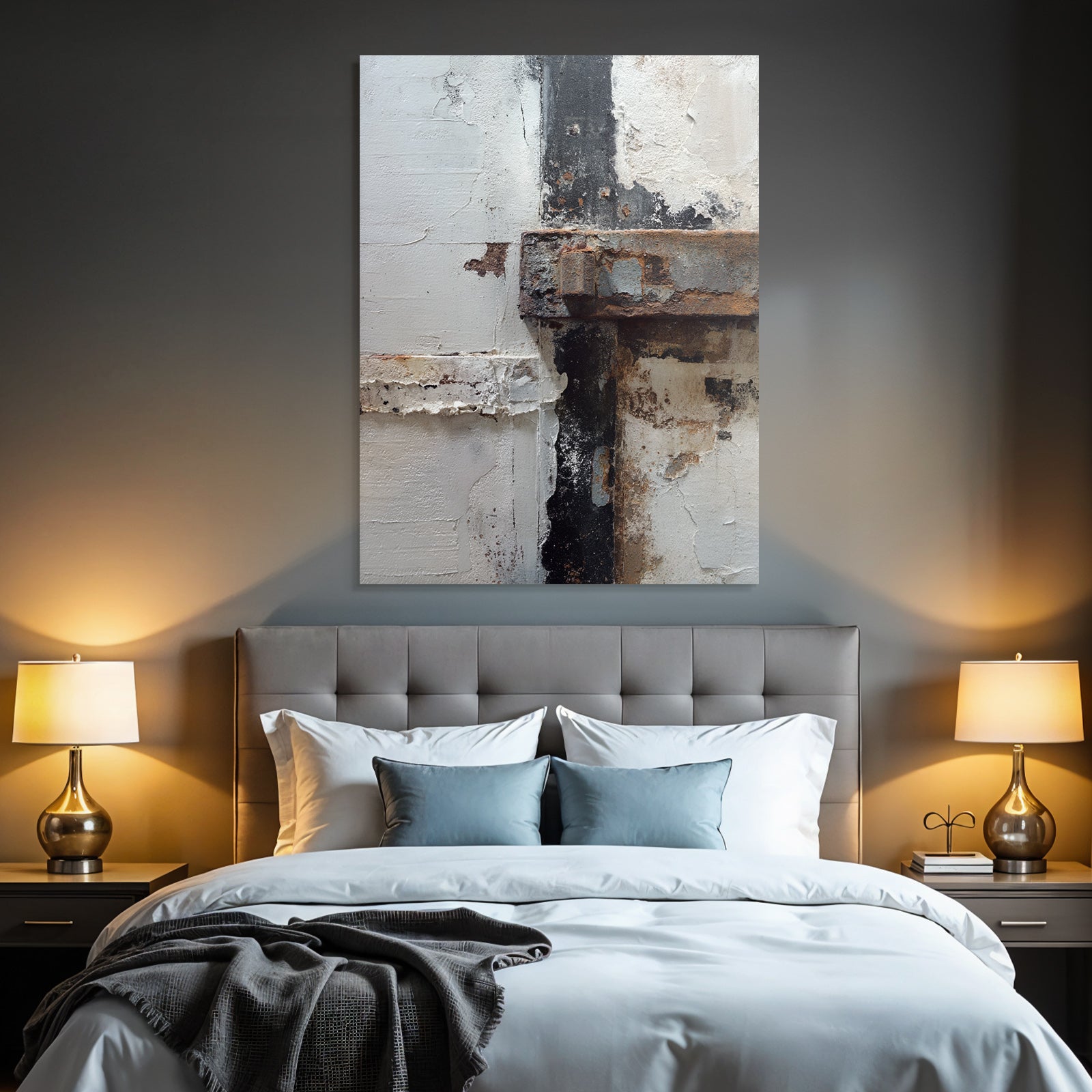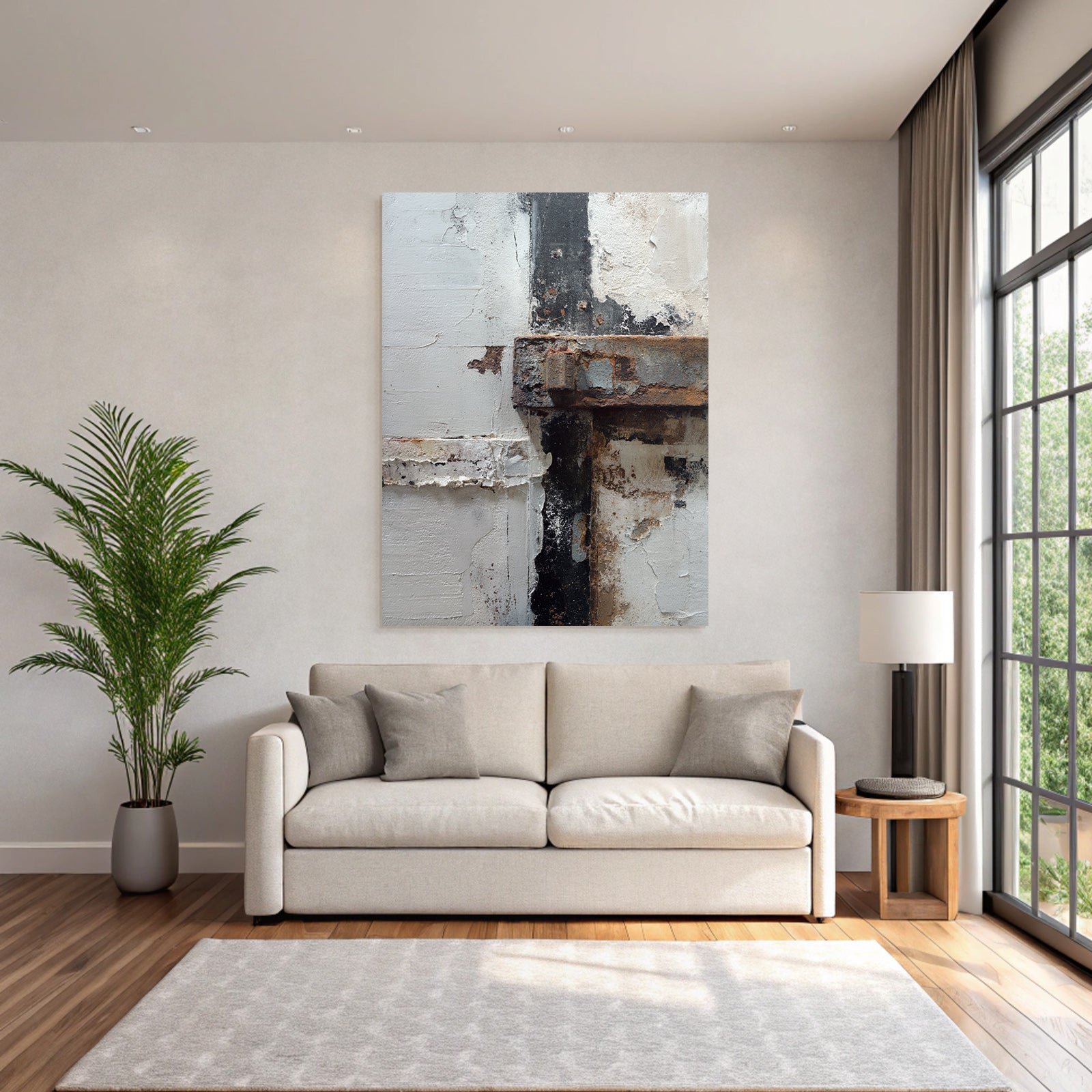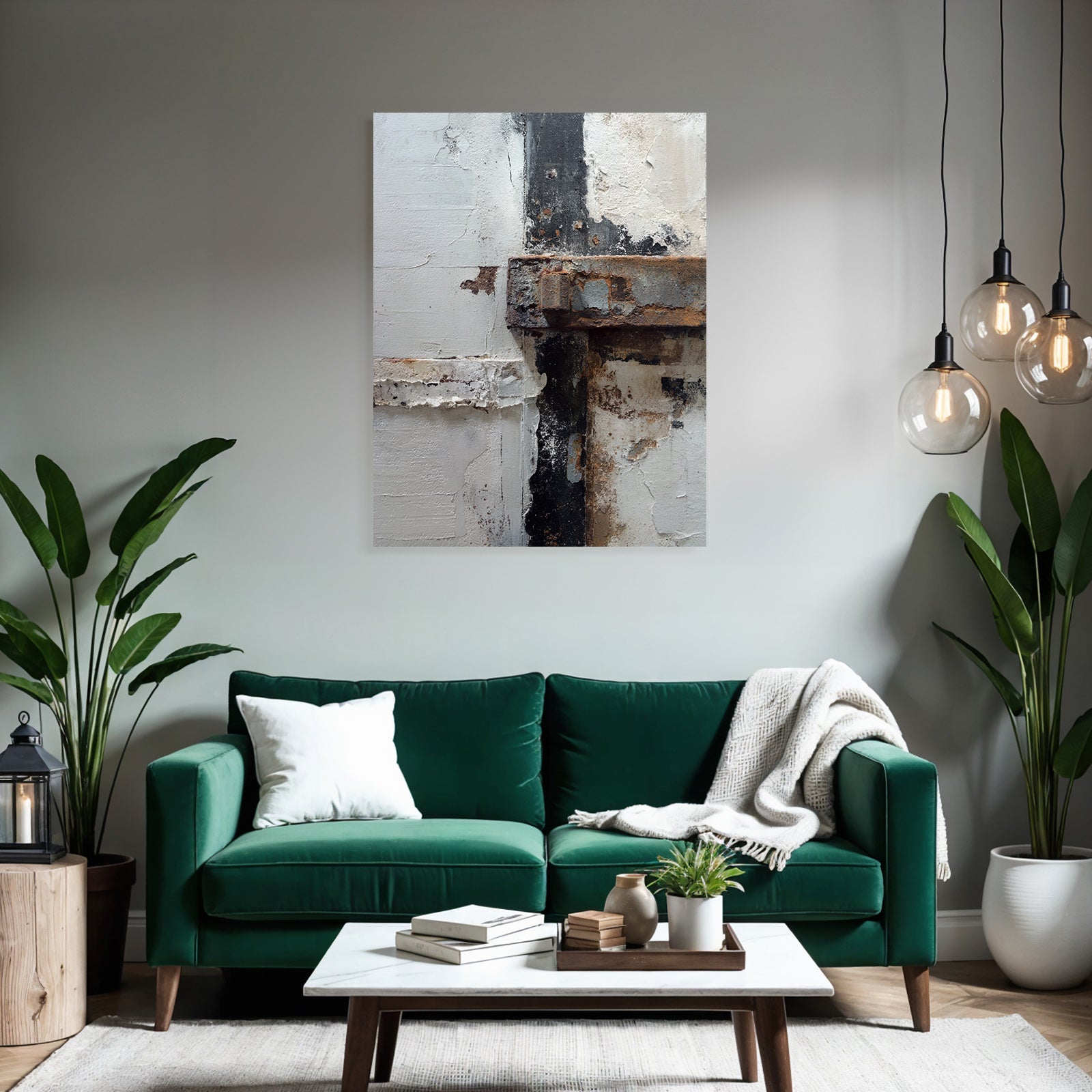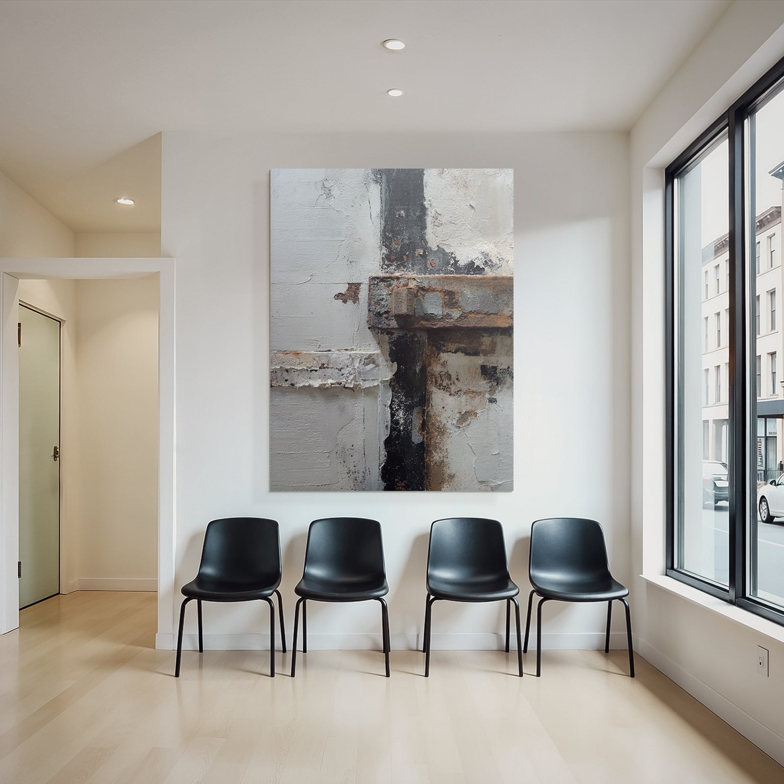 „„ Wetterbedingtes Metall Oberflaeche““ bringt den Stil Industrial an Deine Wand – perfekt für Schlafzimmer, Homeoffice oder Besprechungsräume, edel gerahmt im FameFrame.
