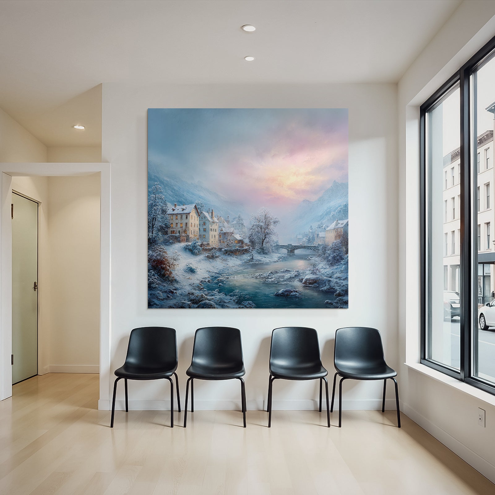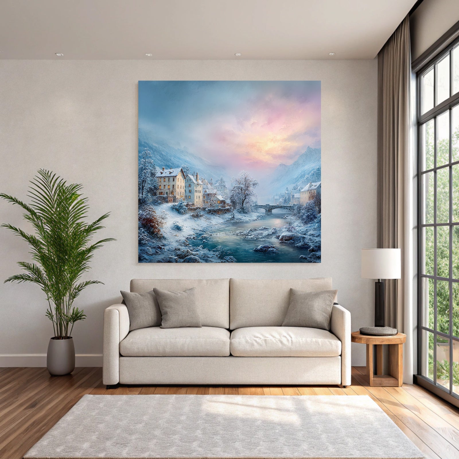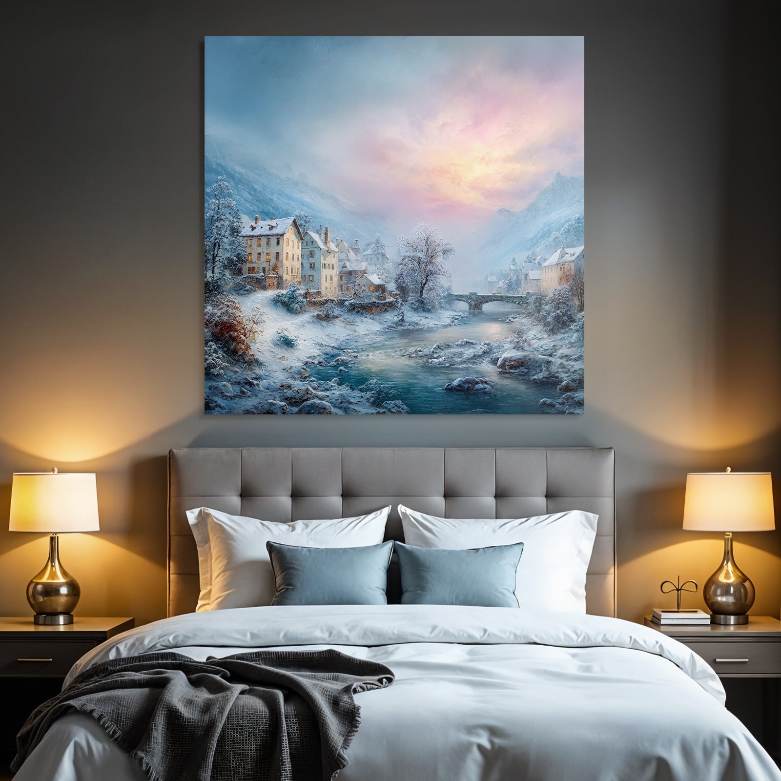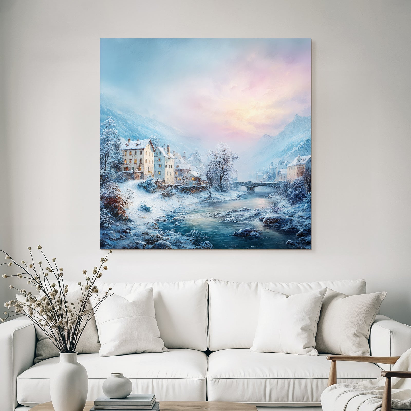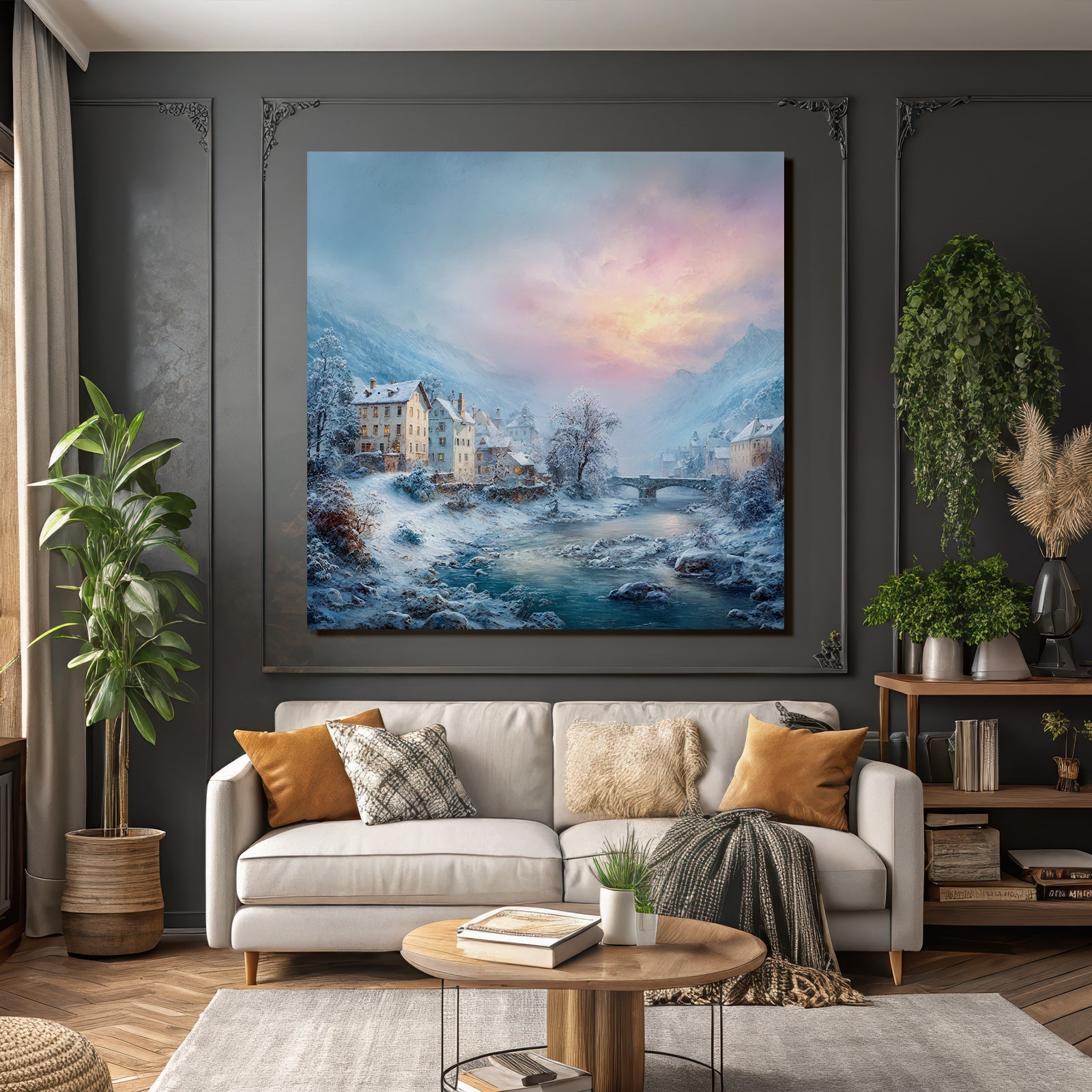 Lassen Sie sich von der Ästhetik des Winter inspirieren. „Landschaft Häuser Fluss Berge Dämmerung Tranquillität“ ist mehr als nur ein Bild – es ist ein Lebensgefühl, das im FameFrame stilvoll gerahmt wird.