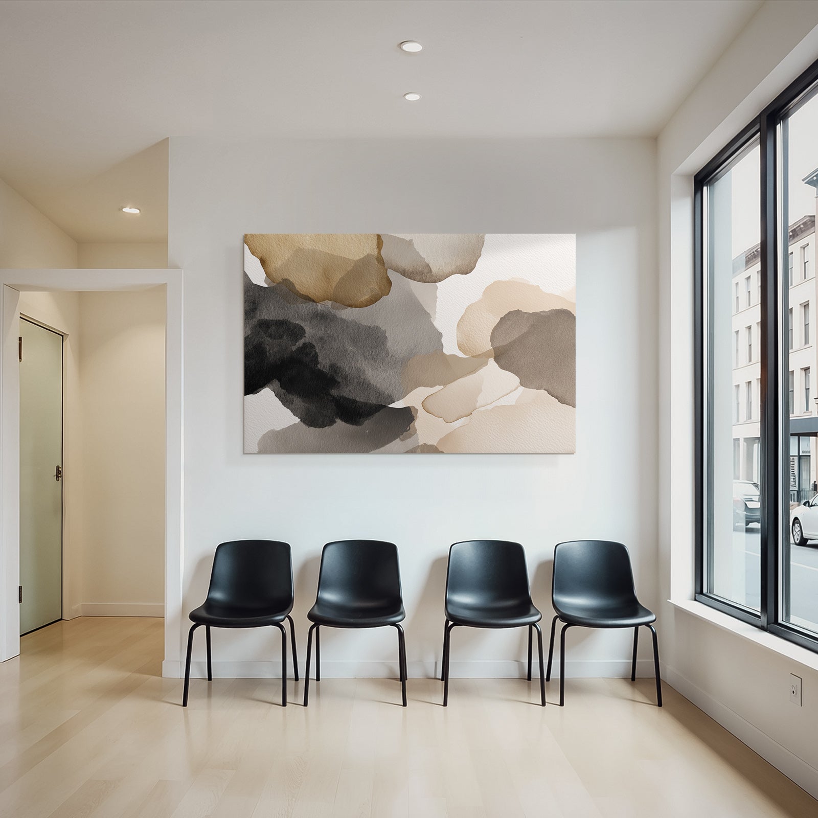 Erlebe Kunst im Stil Japandi neu: „„Abstrakte Aquarellmalerei Erdtoene Braun Schwarz Beige““ wird durch den eleganten FameFrame zum Blickfang in jedem Raum.