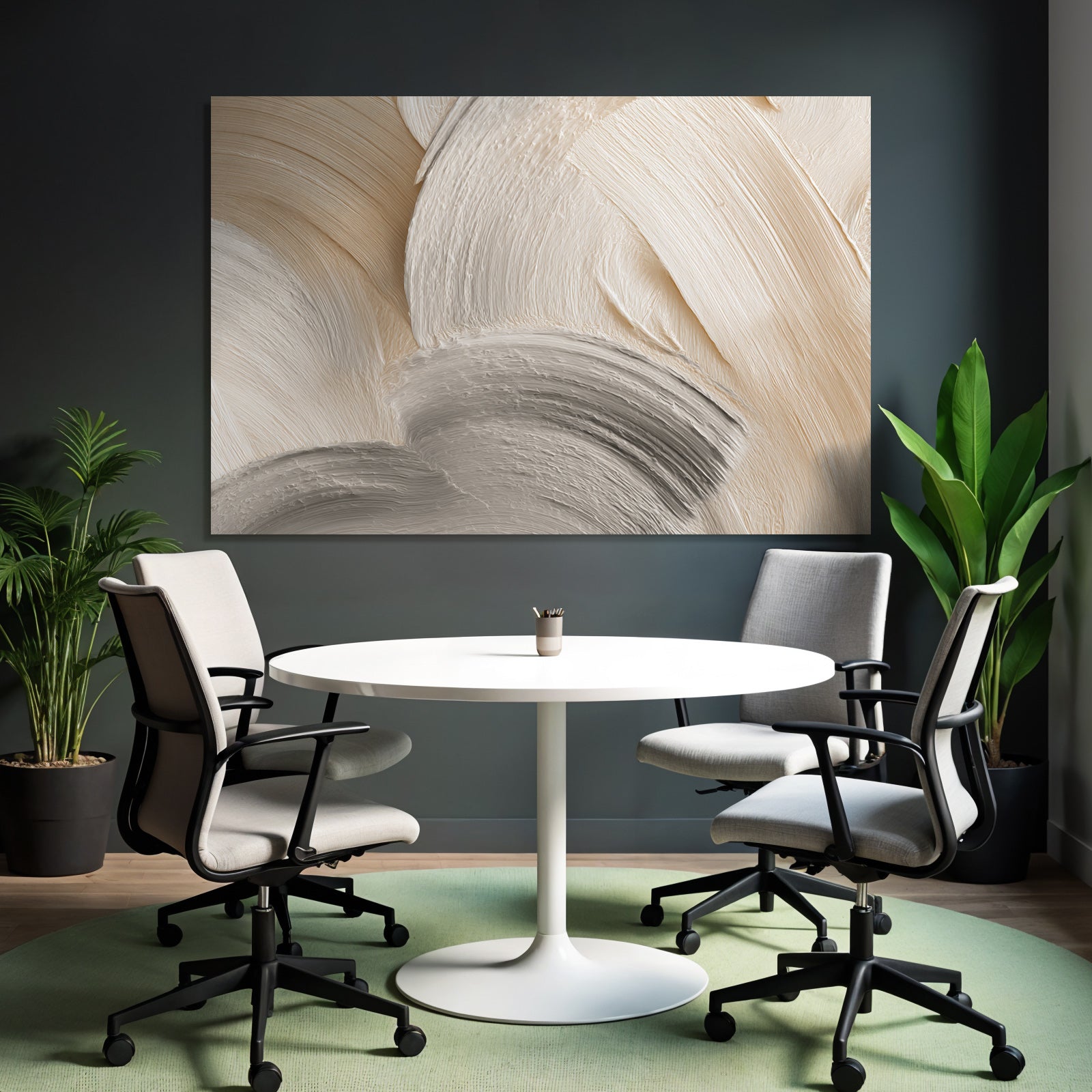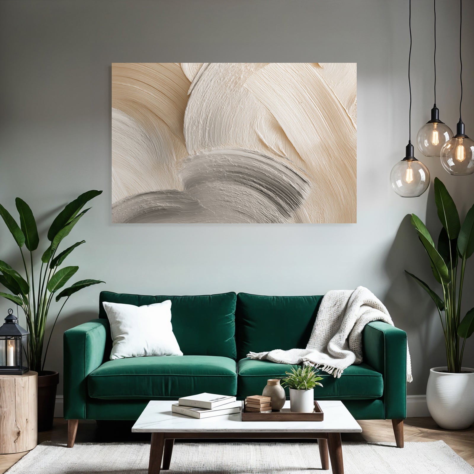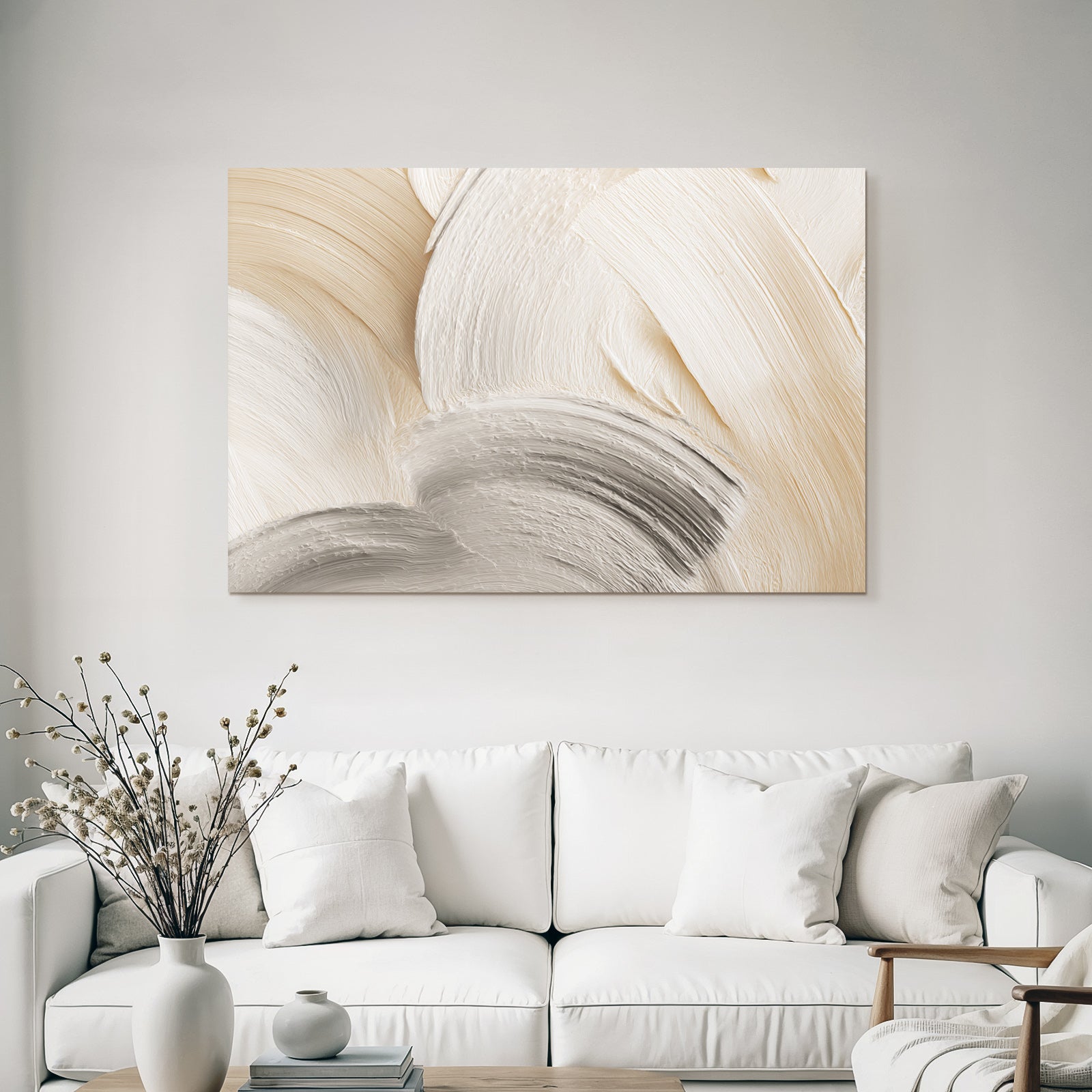 Kunst trifft Design: „„Abstrakte Farbstriche Neutrale Tonden““ im Stil Japandi entfaltet im FameFrame seine volle Ausdruckskraft.