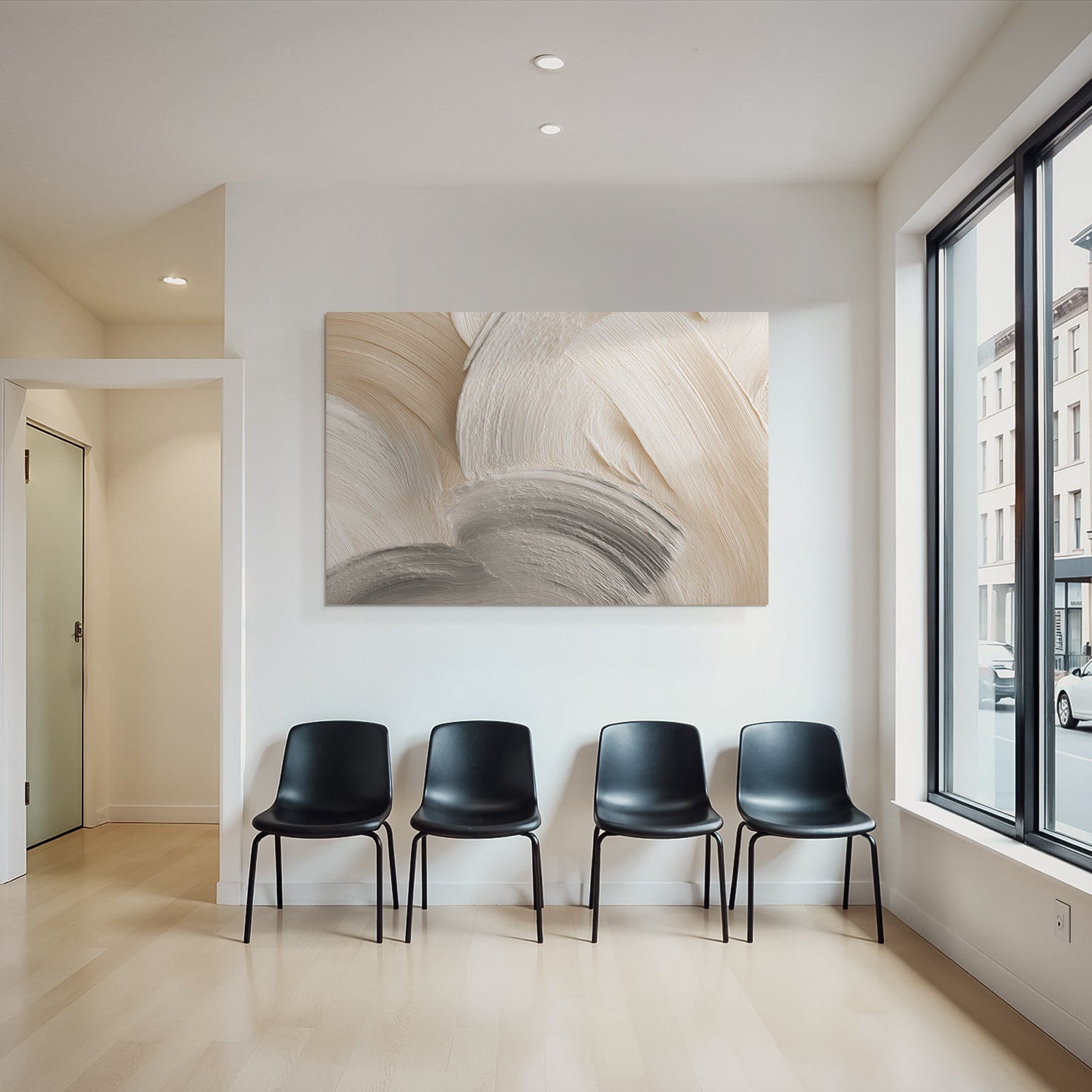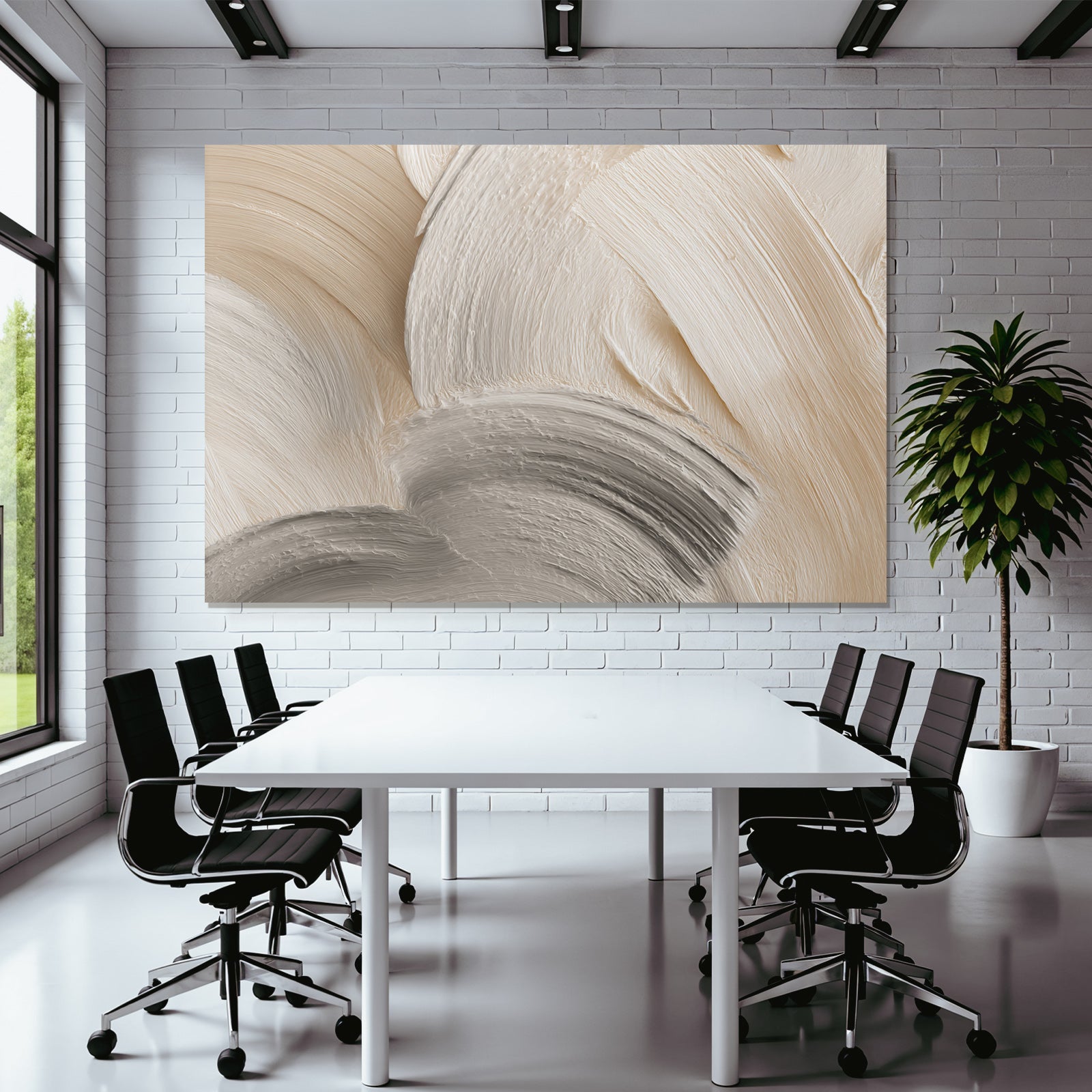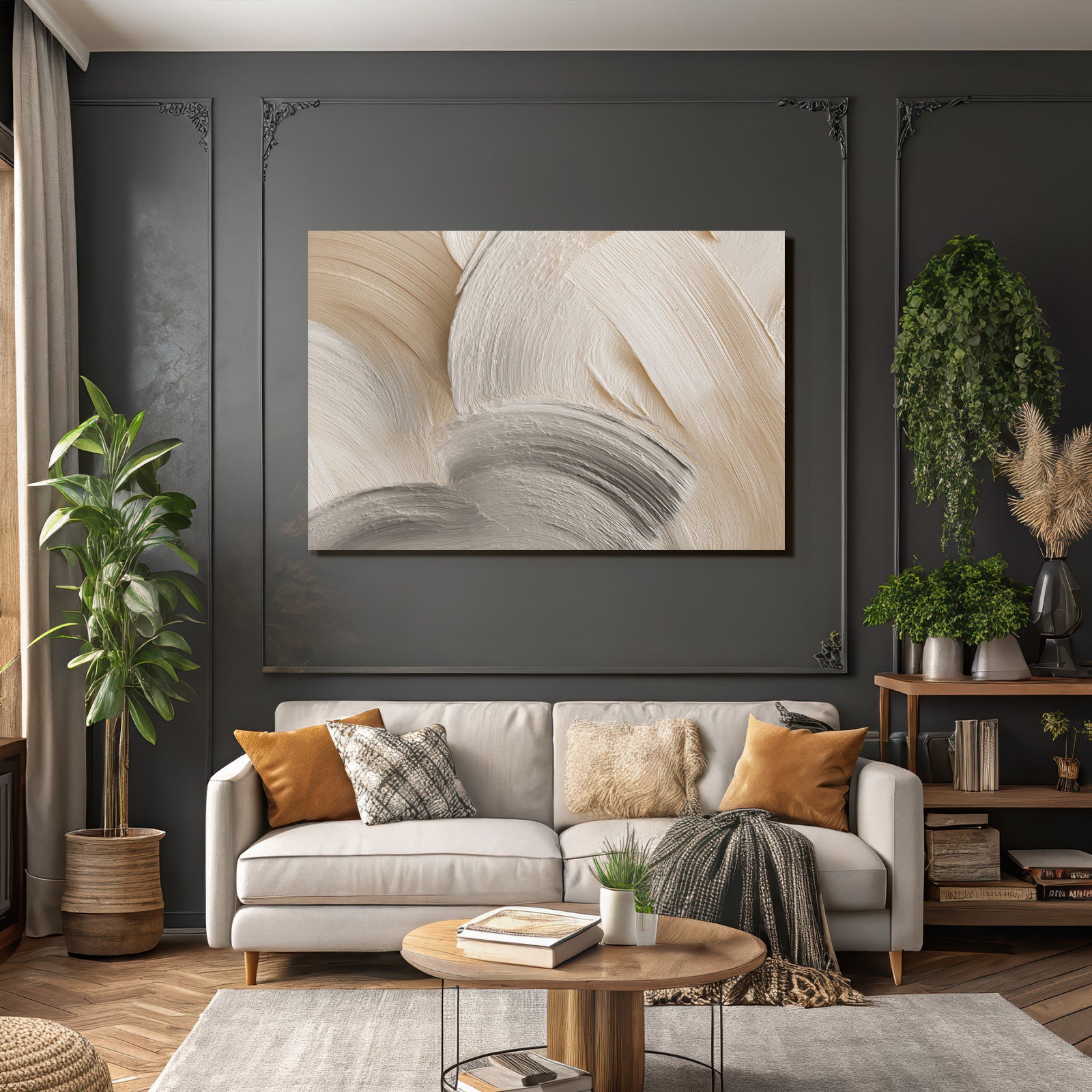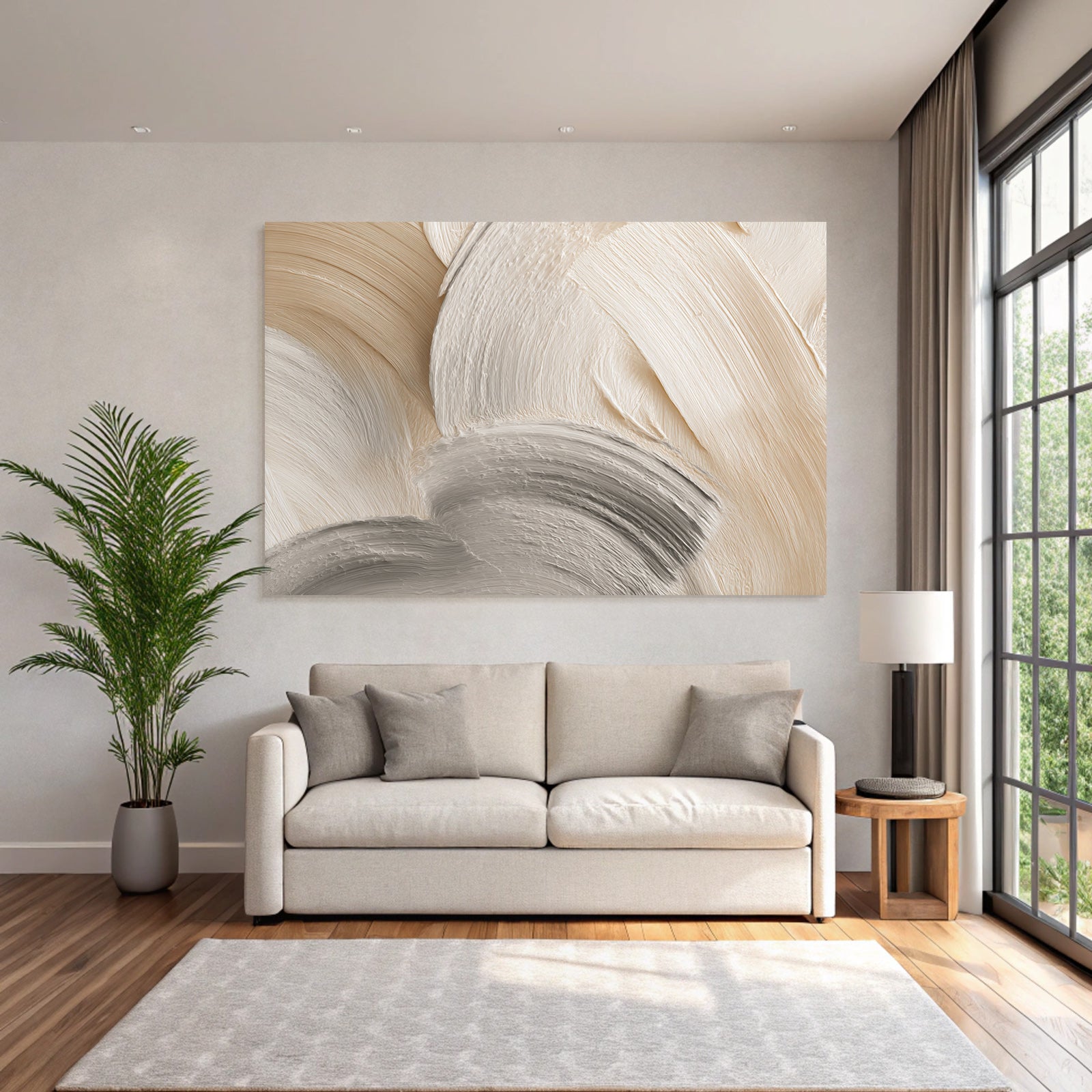 Kunst trifft Design: „„Abstrakte Farbstriche Neutrale Tonden““ im Stil Japandi entfaltet im FameFrame seine volle Ausdruckskraft.