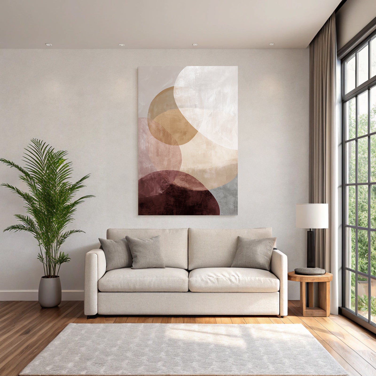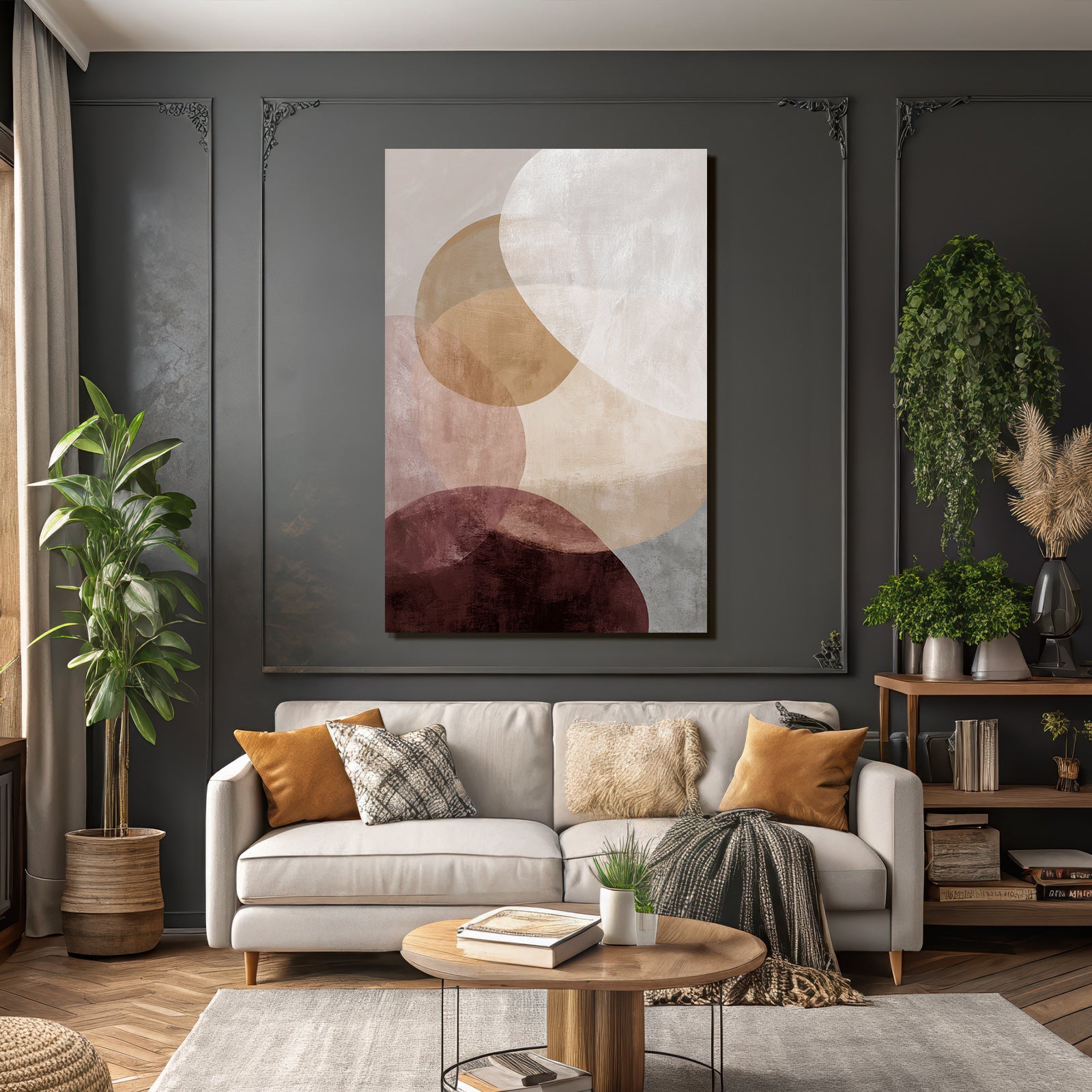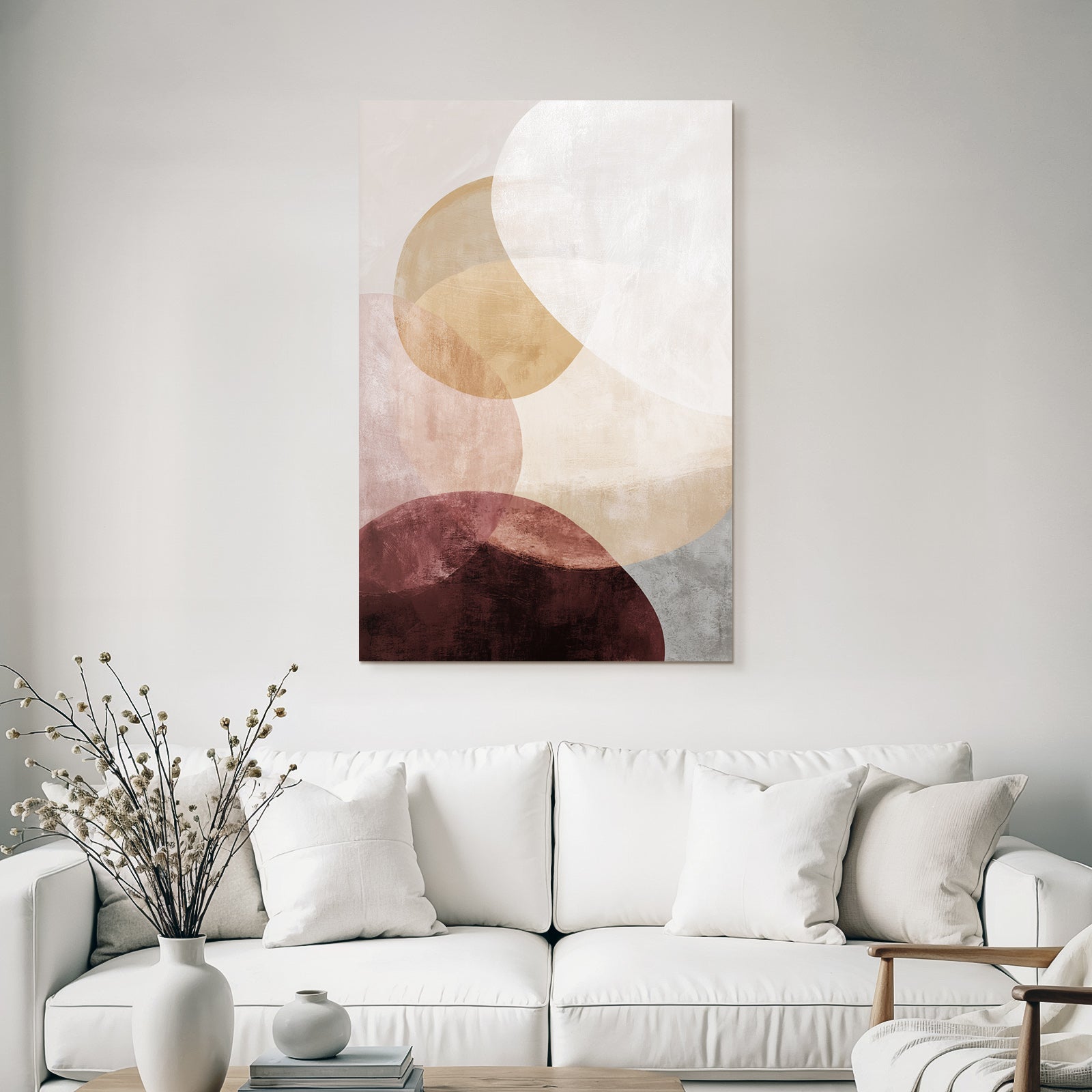 Verschönere Dein Zuhause mit diesem Werk im Stil Japandi. Der Titel „„Abstrakte Kreise Texturierte Farben““ kommt im hochwertigen FameFrame perfekt zur Geltung.