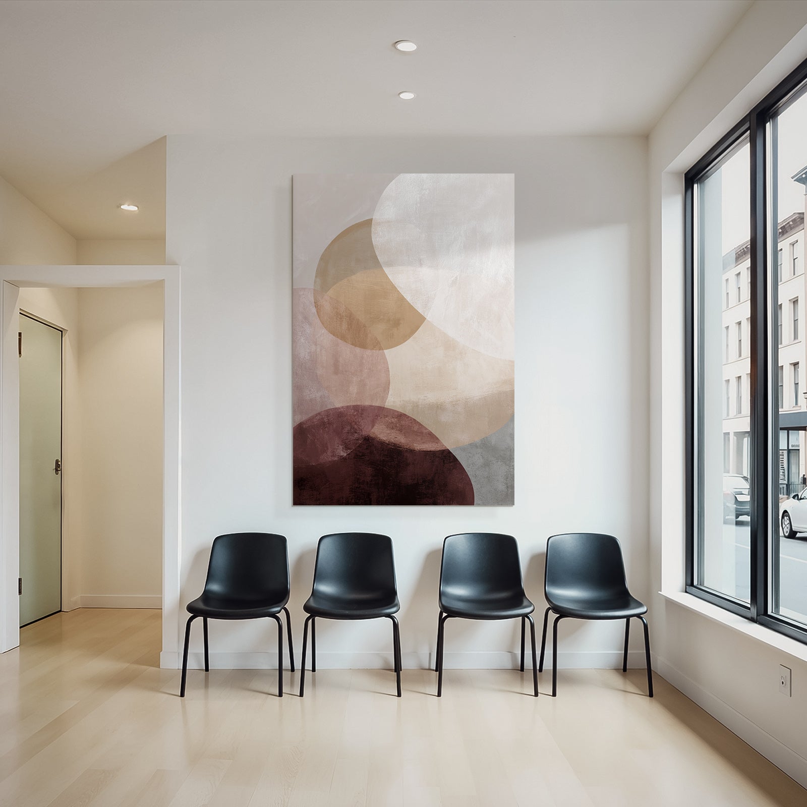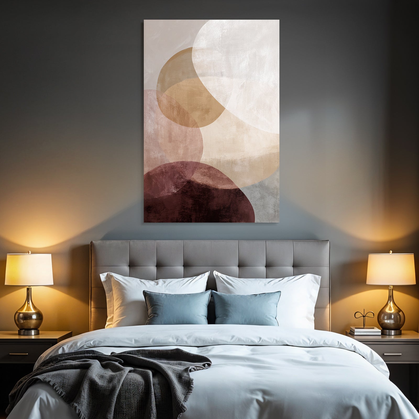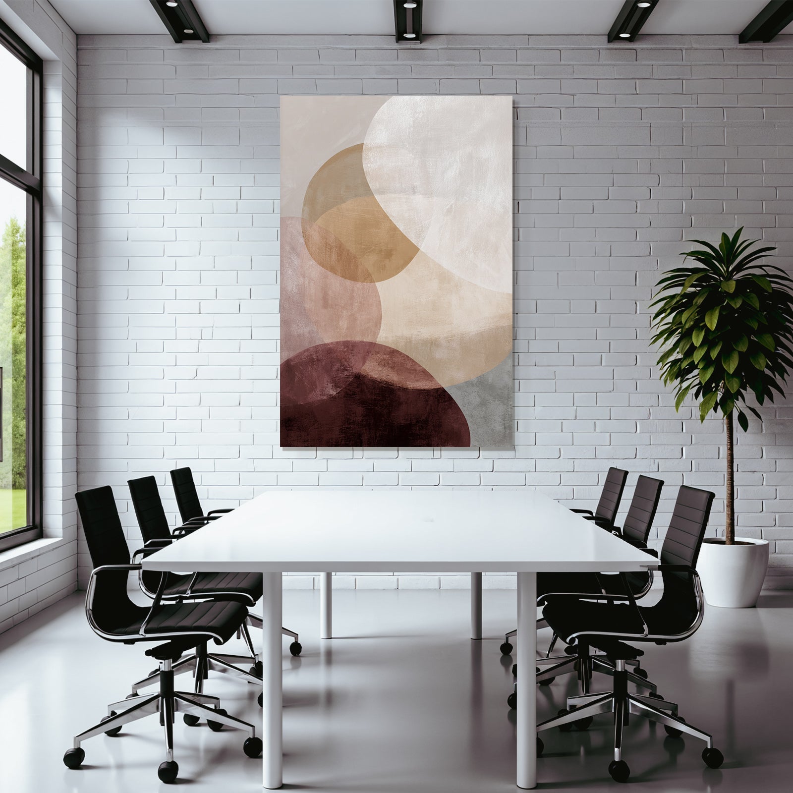 Verschönere Dein Zuhause mit diesem Werk im Stil Japandi. Der Titel „„Abstrakte Kreise Texturierte Farben““ kommt im hochwertigen FameFrame perfekt zur Geltung.