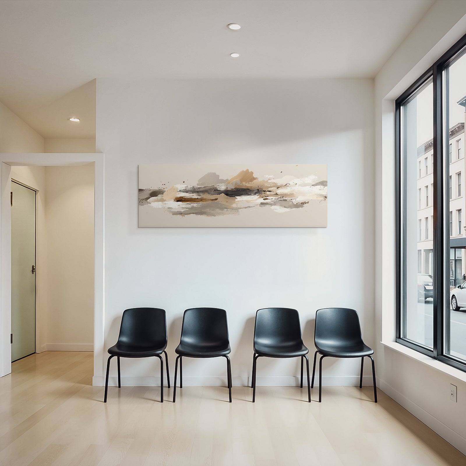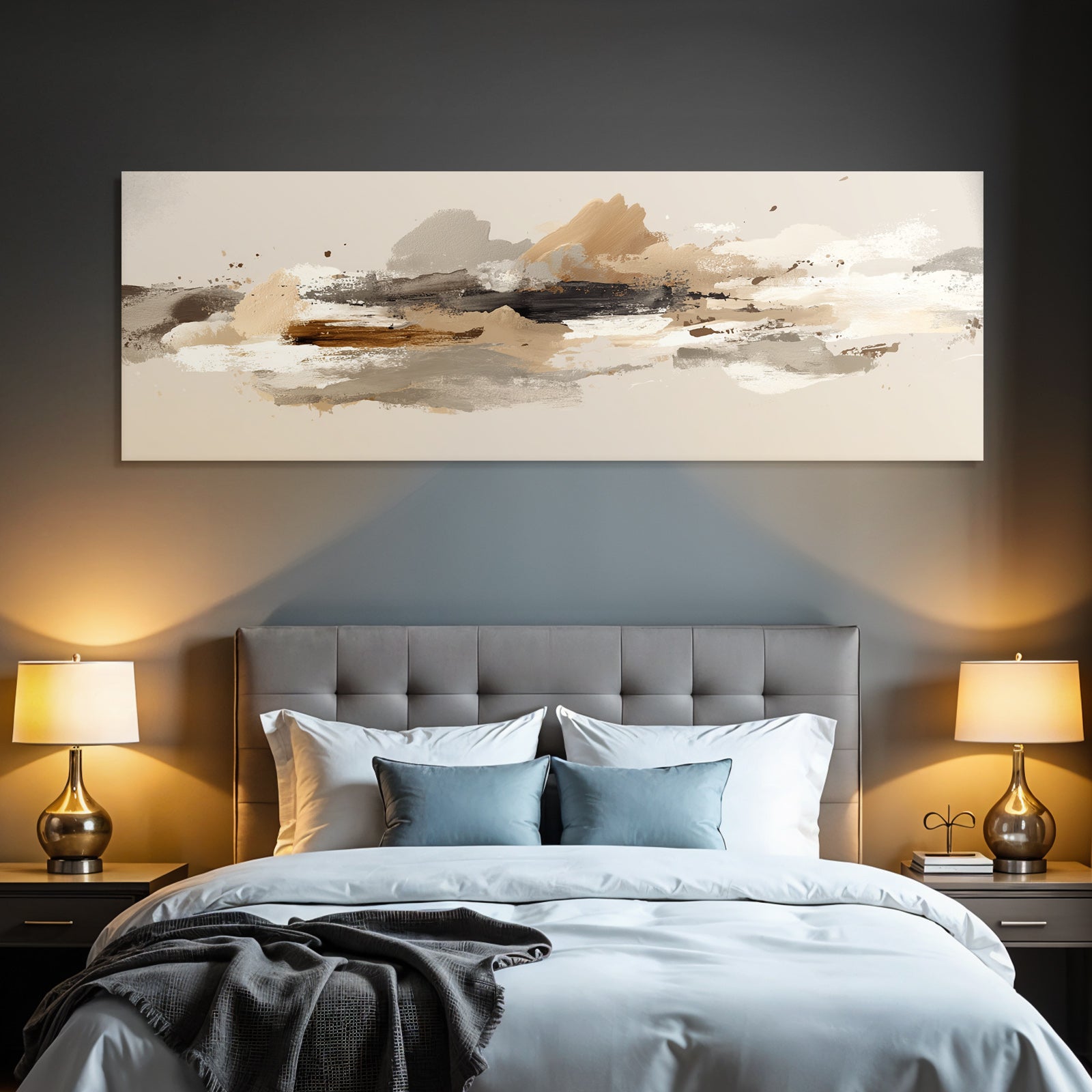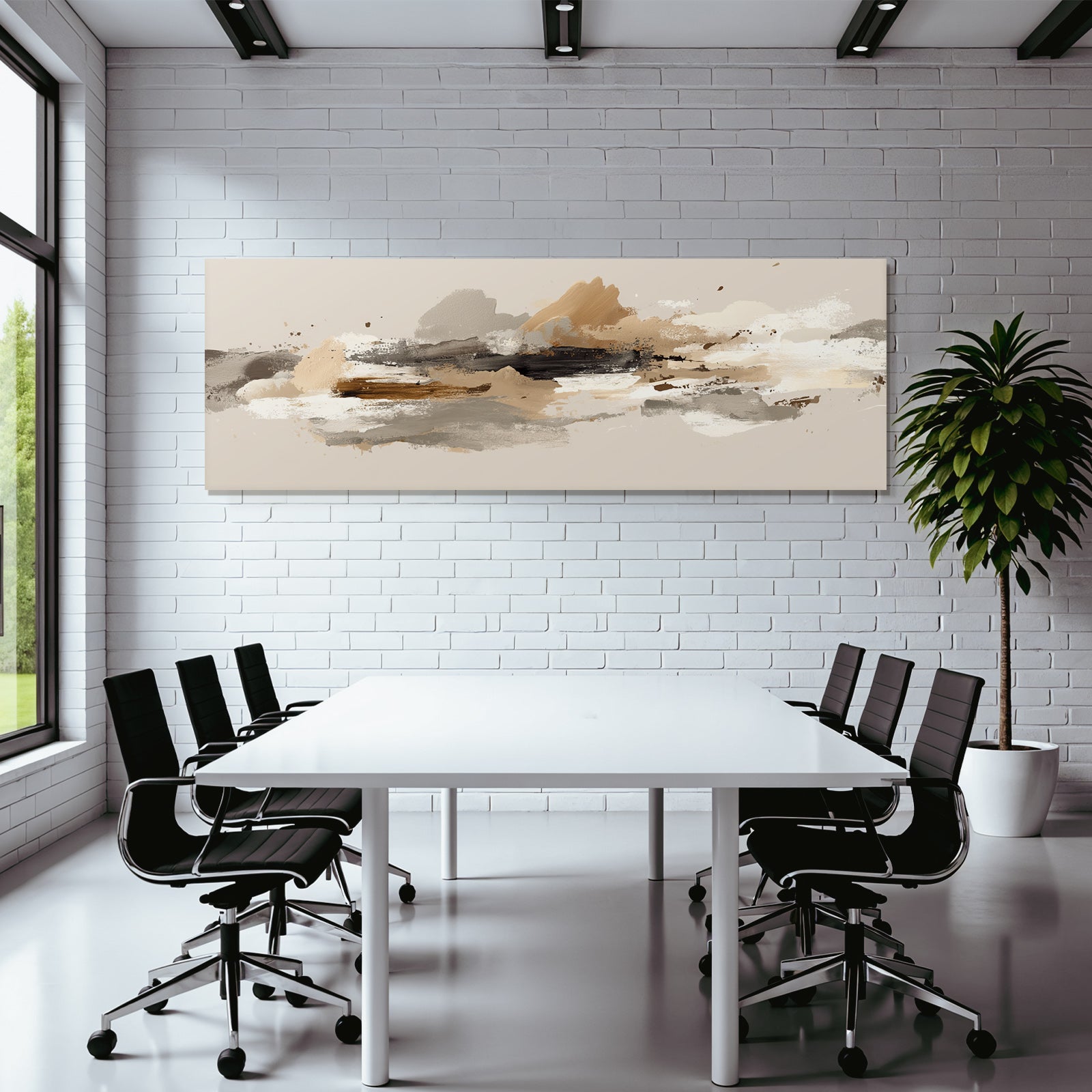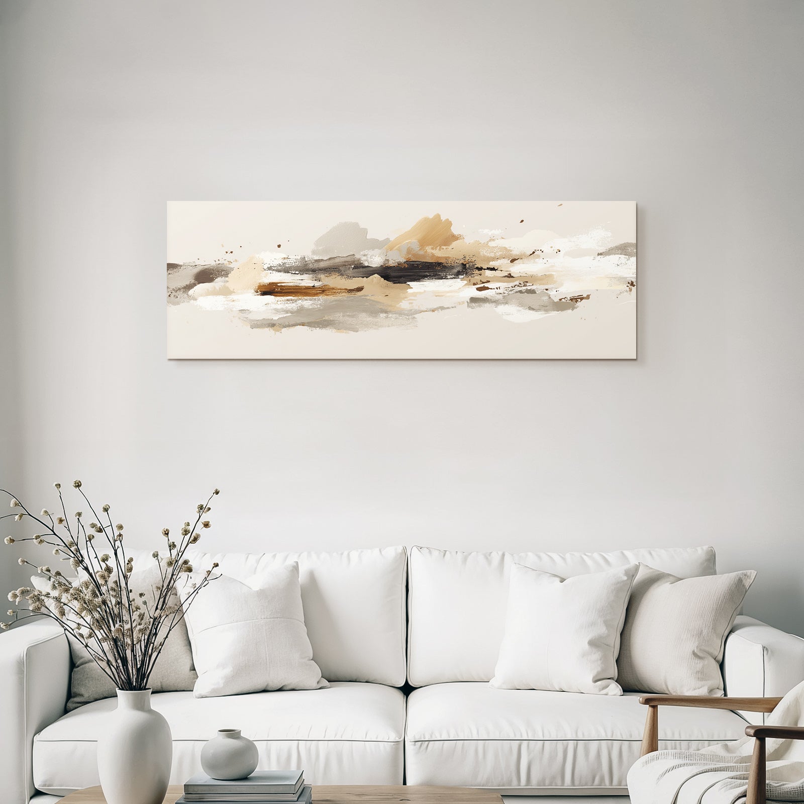 „„Abstraktes Bild Erdige Toni Pinselstriche Texturiert““ bringt den Stil Japandi an Deine Wand – perfekt für Schlafzimmer, Homeoffice oder Besprechungsräume, edel gerahmt im FameFrame.