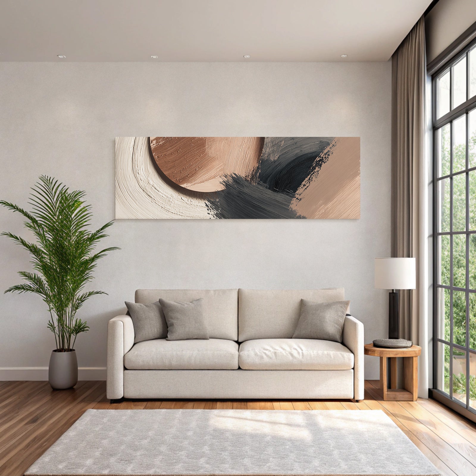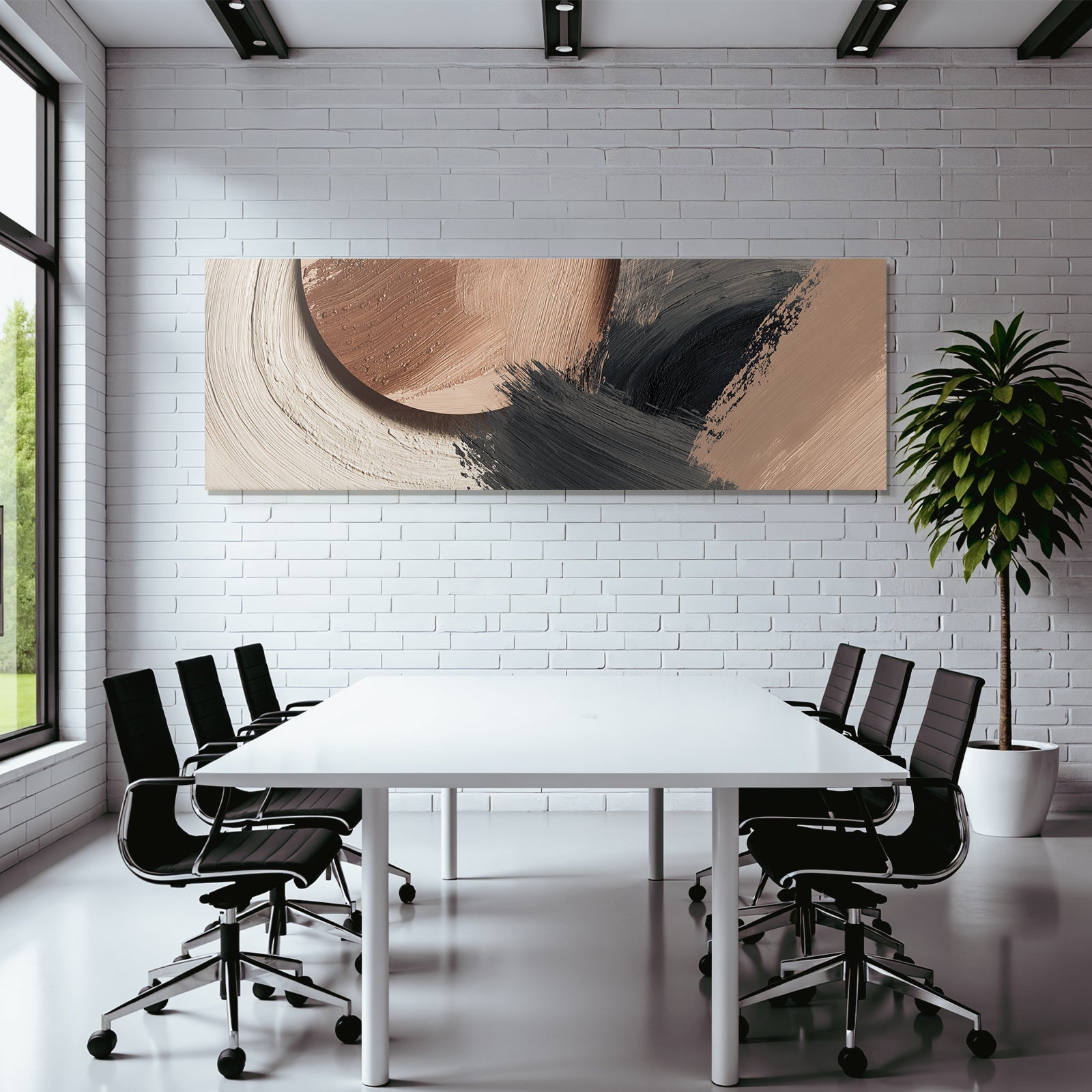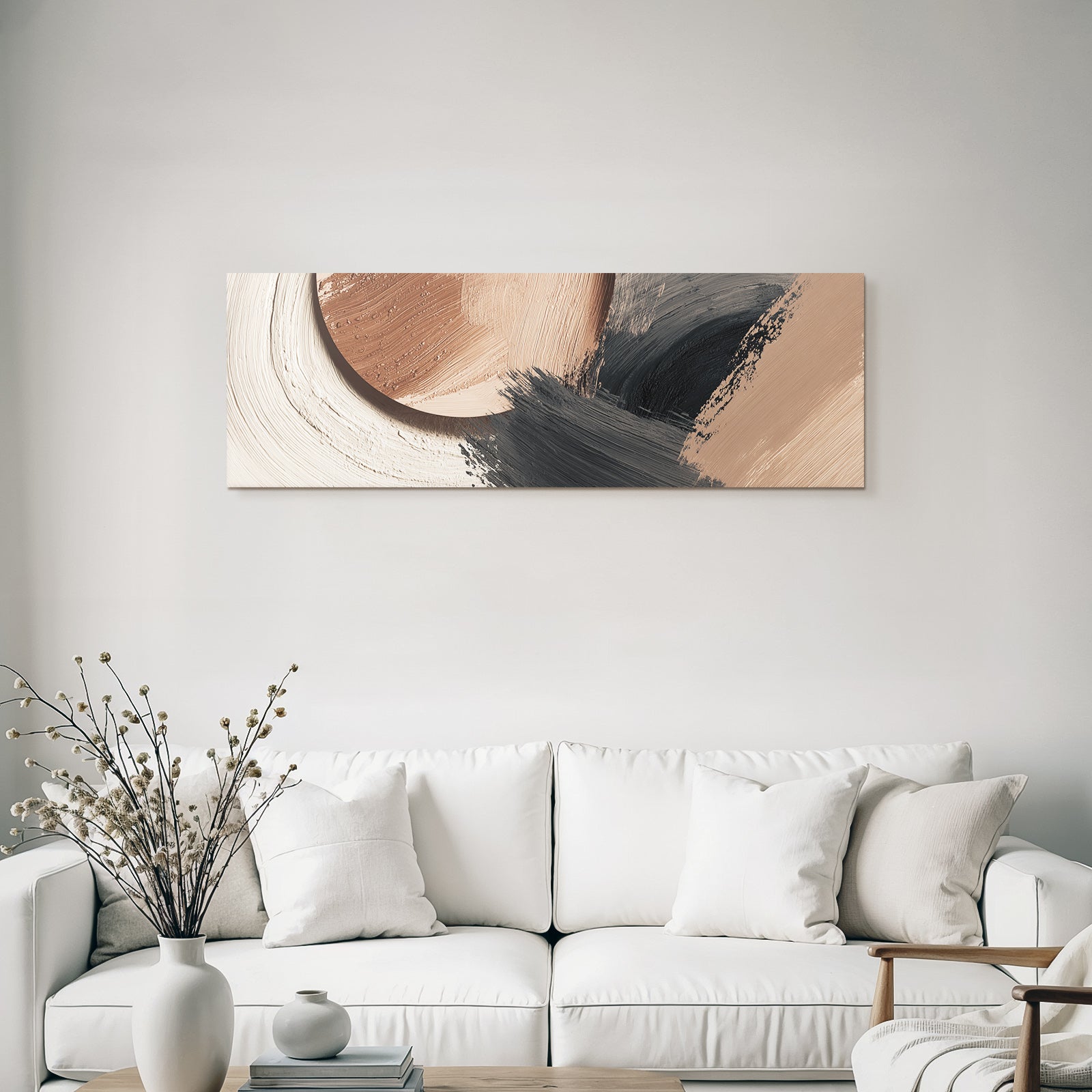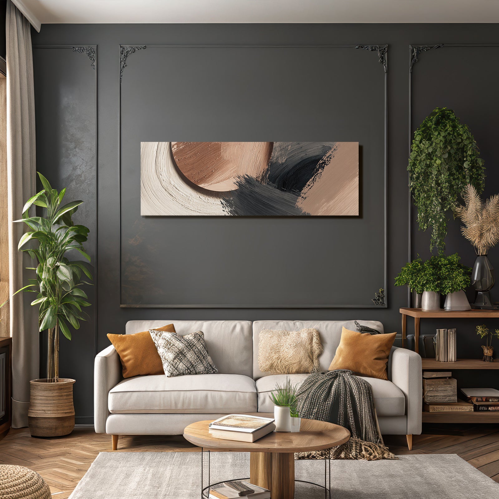 „„Abstraktes Gemaelde Terracotta Schwarz““ im Stil Japandi sorgt für stilvolle Ruhe im Schlafzimmer oder inspirierende Energie im Büro – perfekt im FameFrame inszeniert.