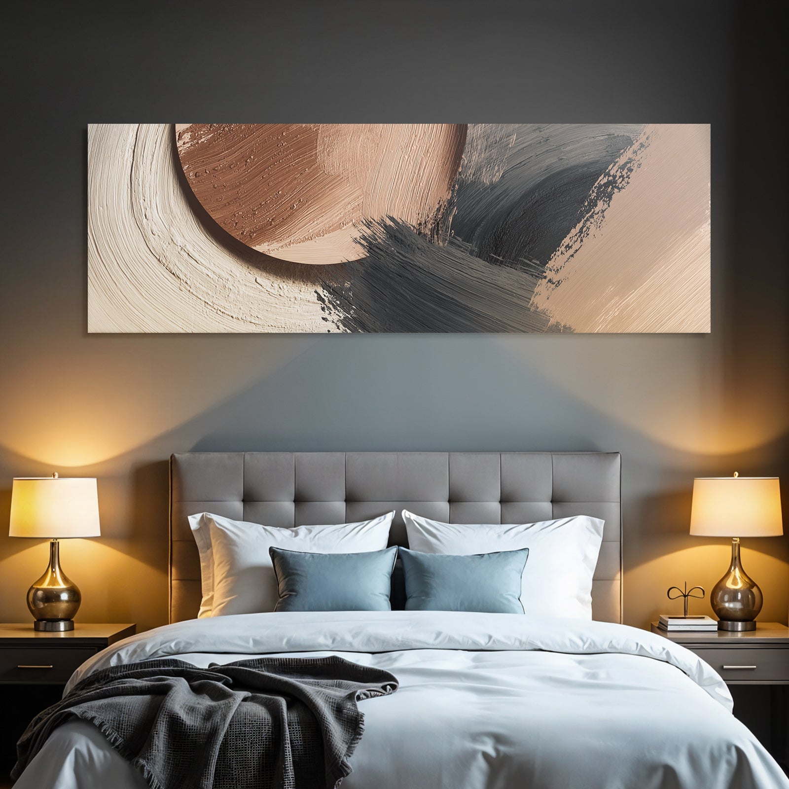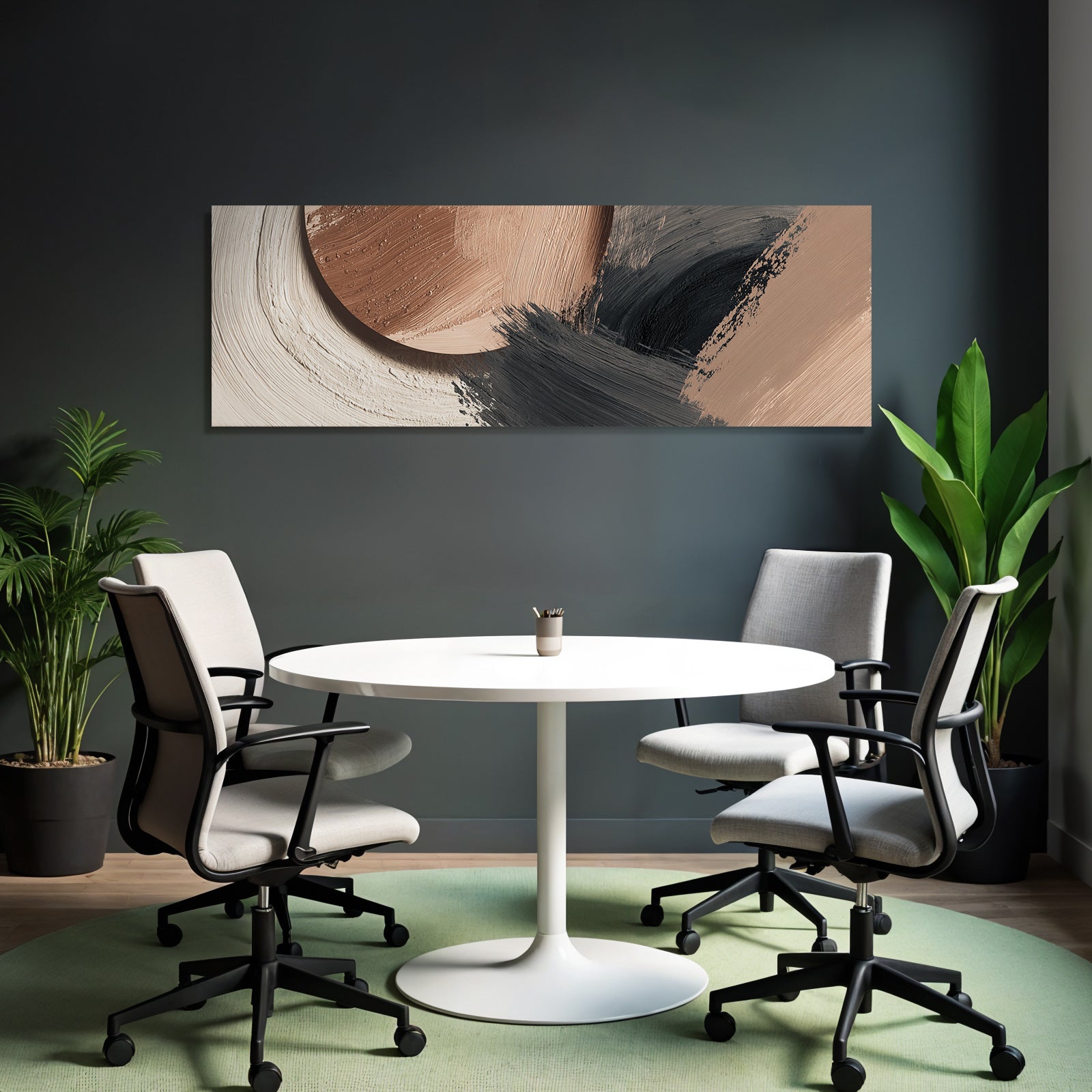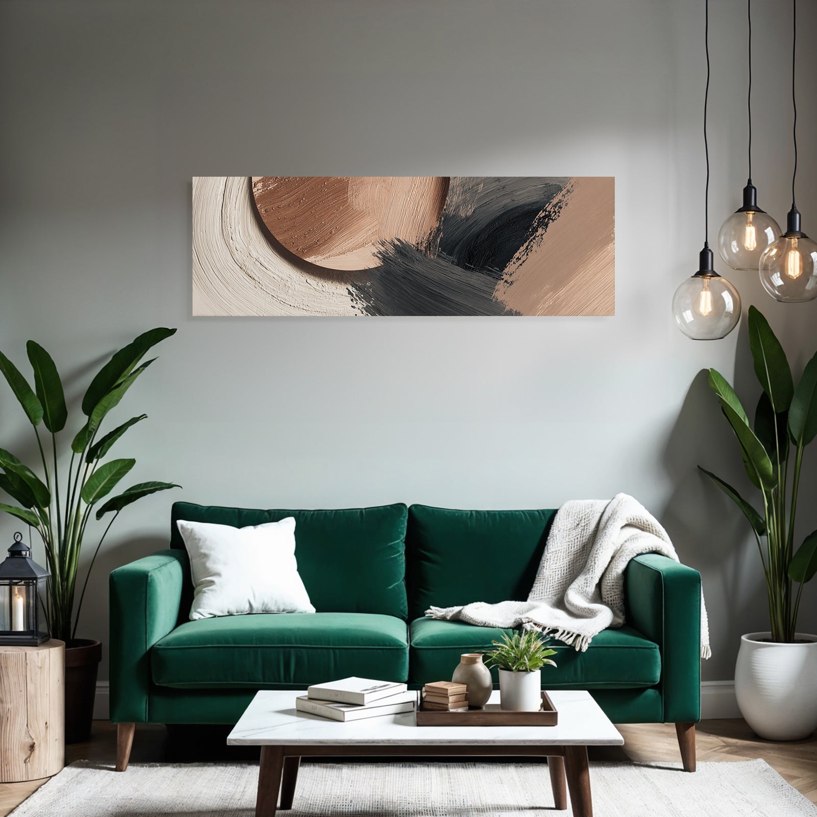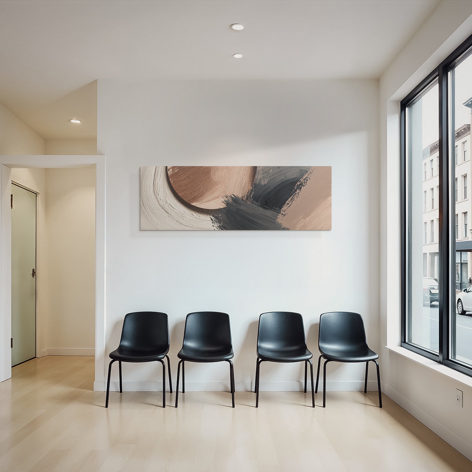 „„Abstraktes Gemaelde Terracotta Schwarz““ im Stil Japandi sorgt für stilvolle Ruhe im Schlafzimmer oder inspirierende Energie im Büro – perfekt im FameFrame inszeniert.