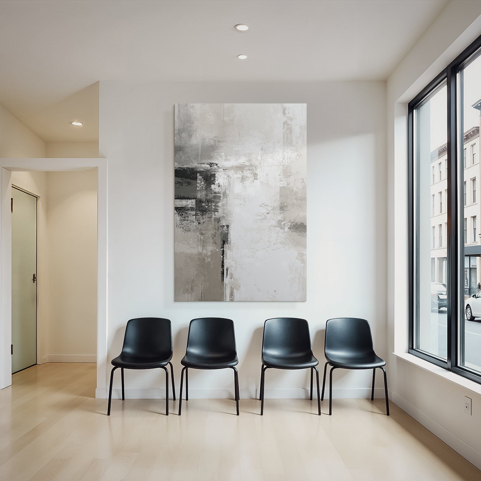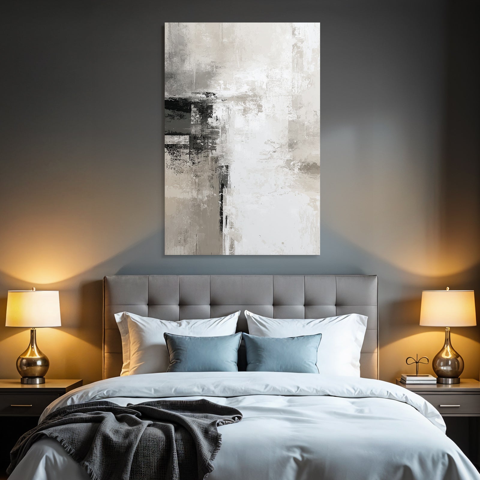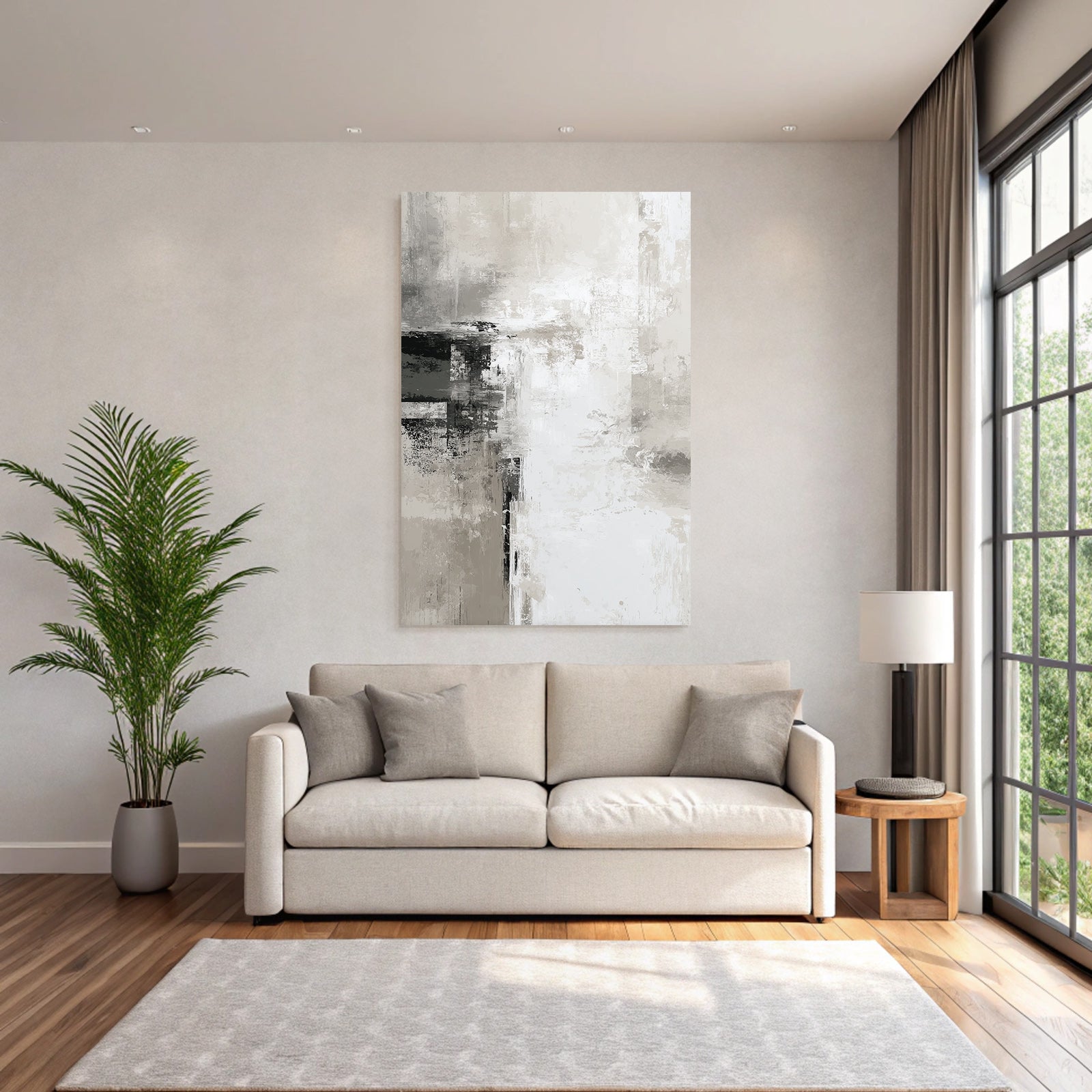 Mach mehr aus Deinem Wohnbereich oder Besprechungszimmer – „„Abstraktes Werk Neutral Toene Texturen““ im Stil Japandi überzeugt als eleganter Textildruck im FameFrame.