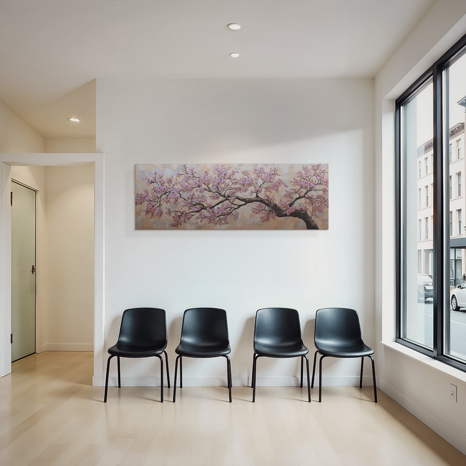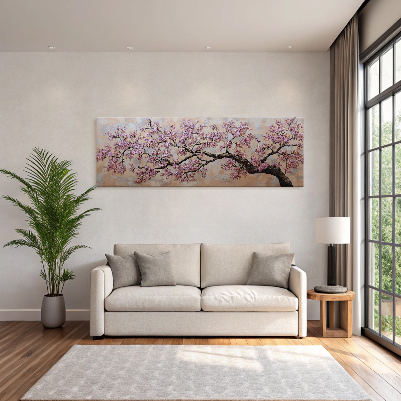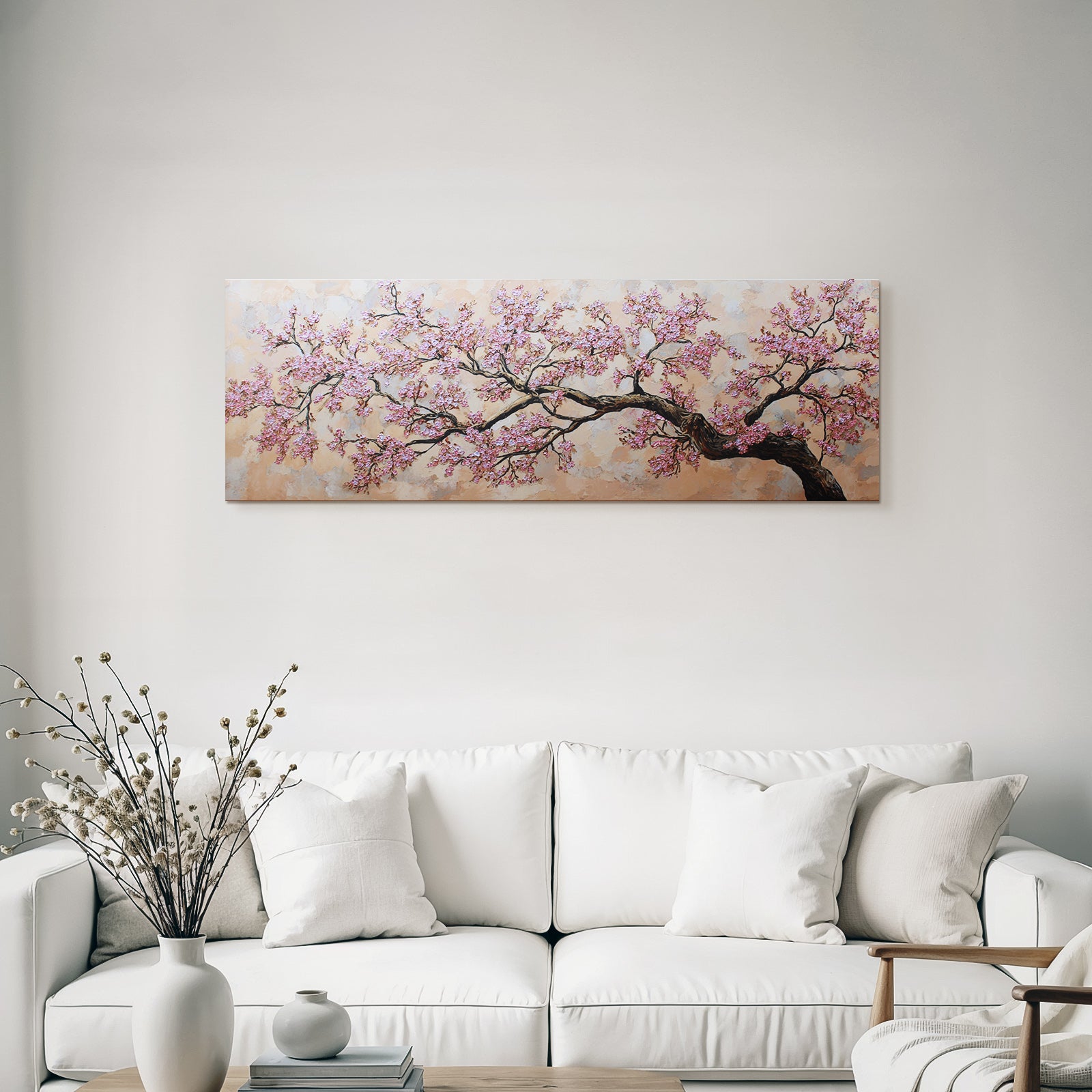 Das Motiv „Kirschblütenbaum Mit Zarten Rosatonen In Warmem Hintergrund“ ist ein Highlight der Kollektion Japanische Zierkirsche und wird auf Deinem FameFrame brillant in Szene gesetzt.