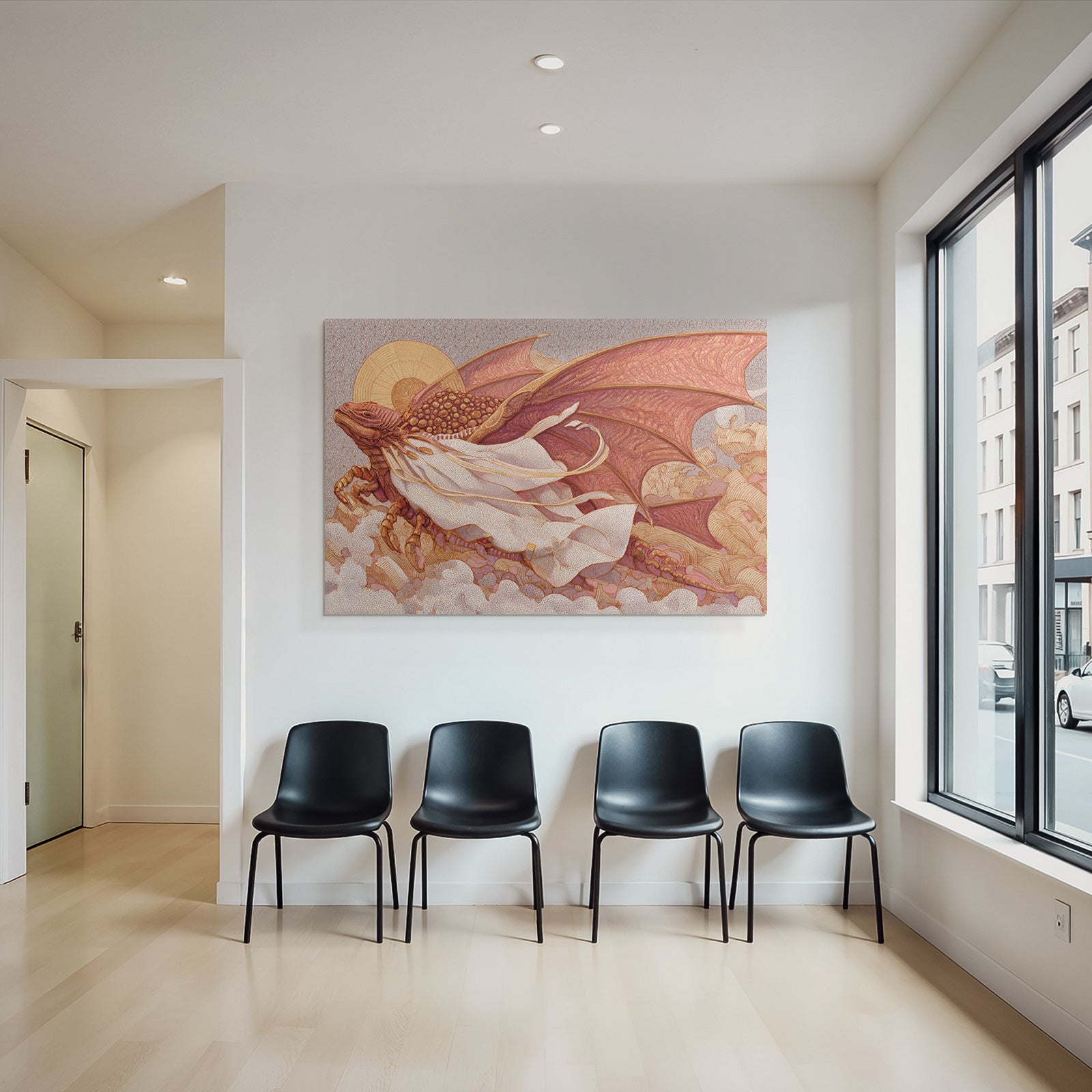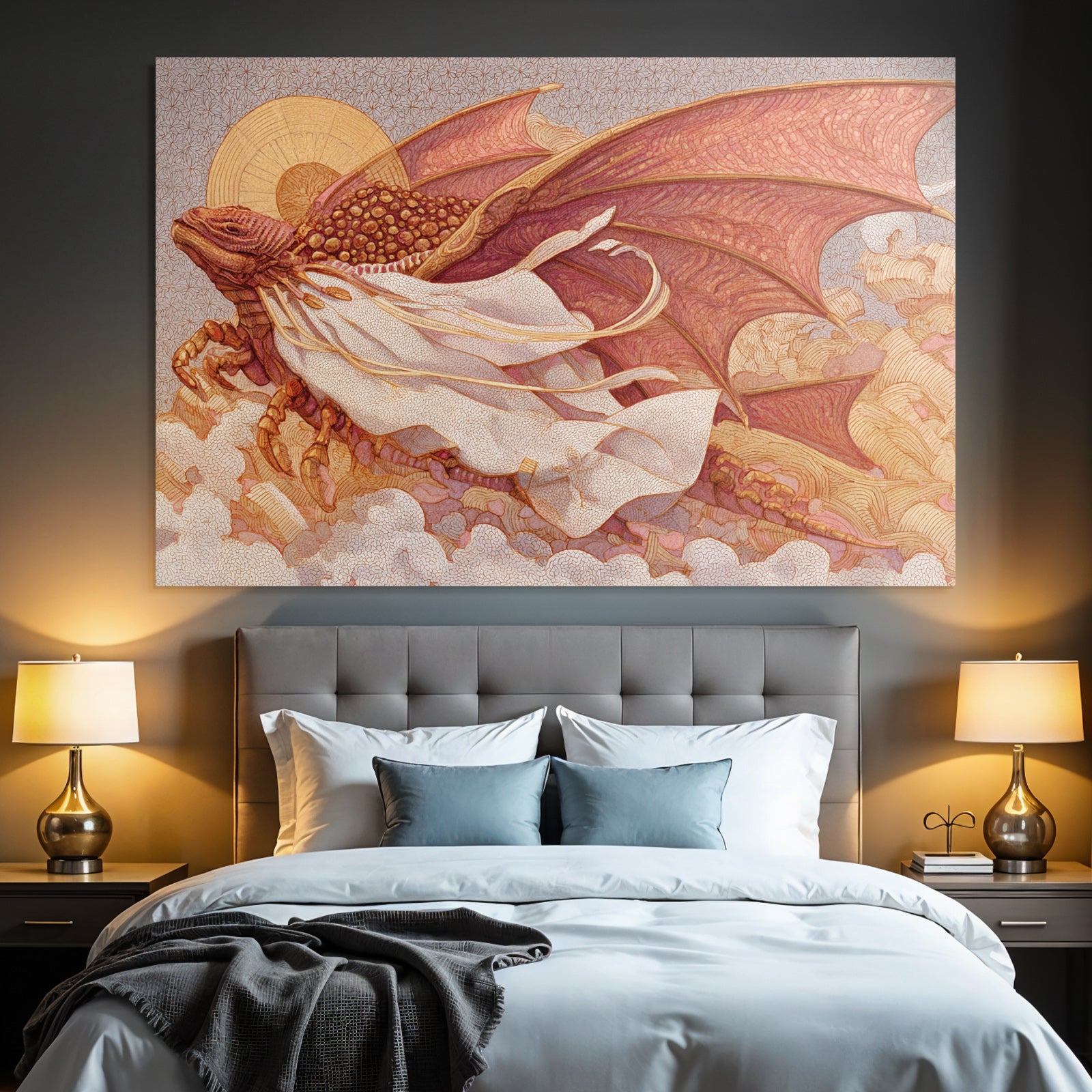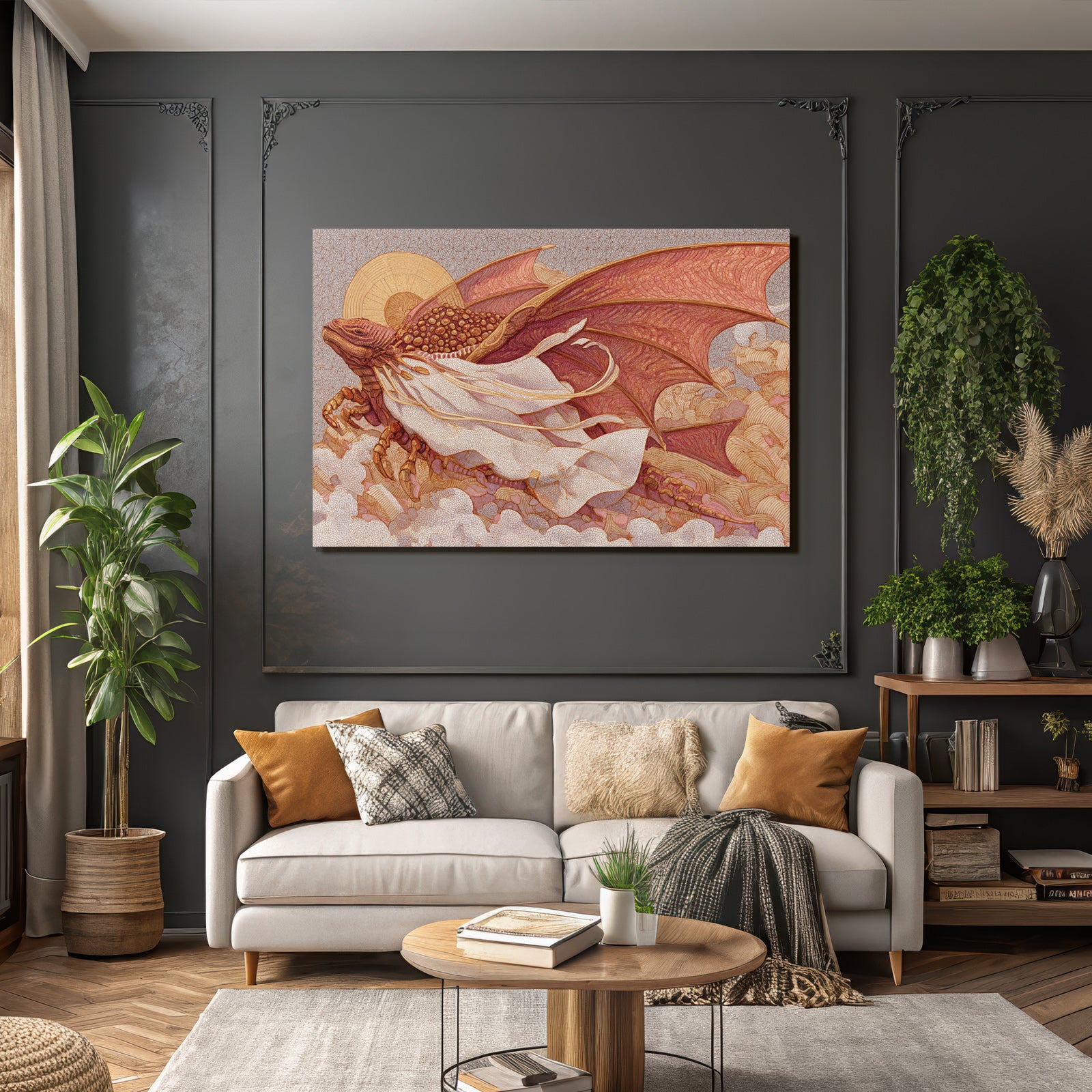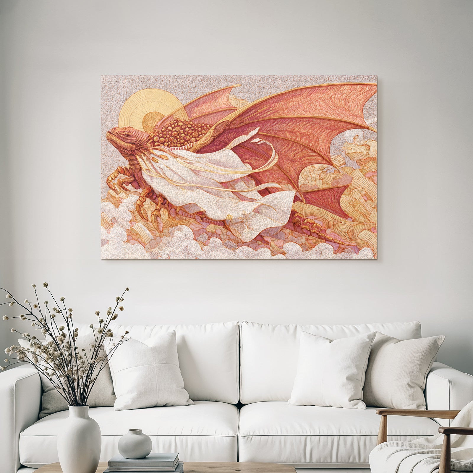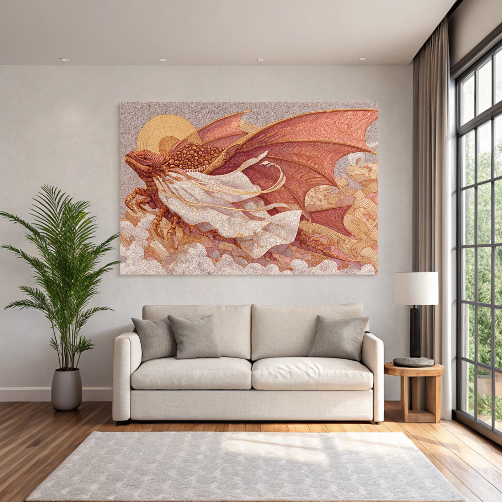 Mach mehr aus Deinem Wohnbereich oder Besprechungszimmer – „Ätherischer Drache Mit Fliessenden Stoffen“ im Stil Jugendstil überzeugt als eleganter Textildruck im FameFrame™.
