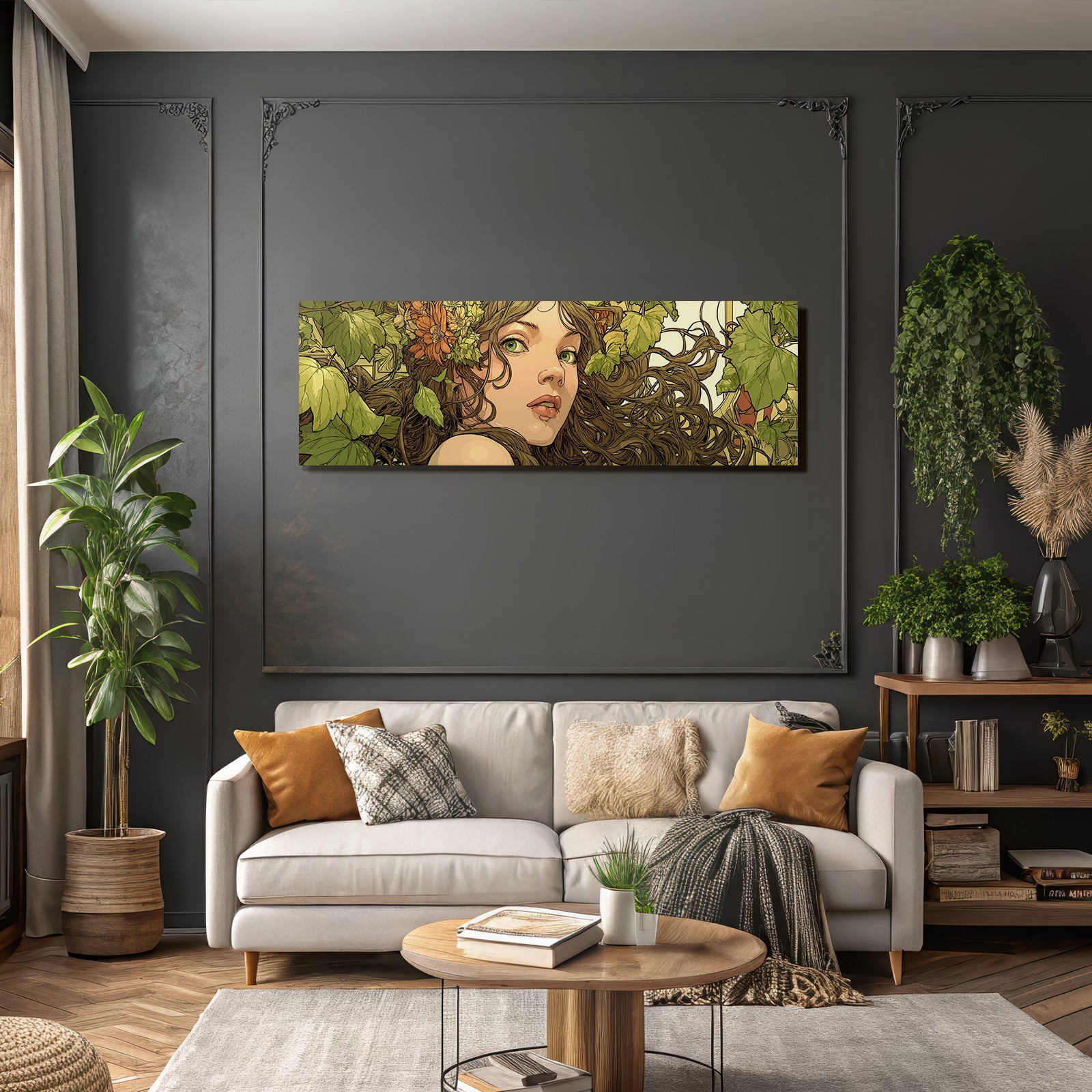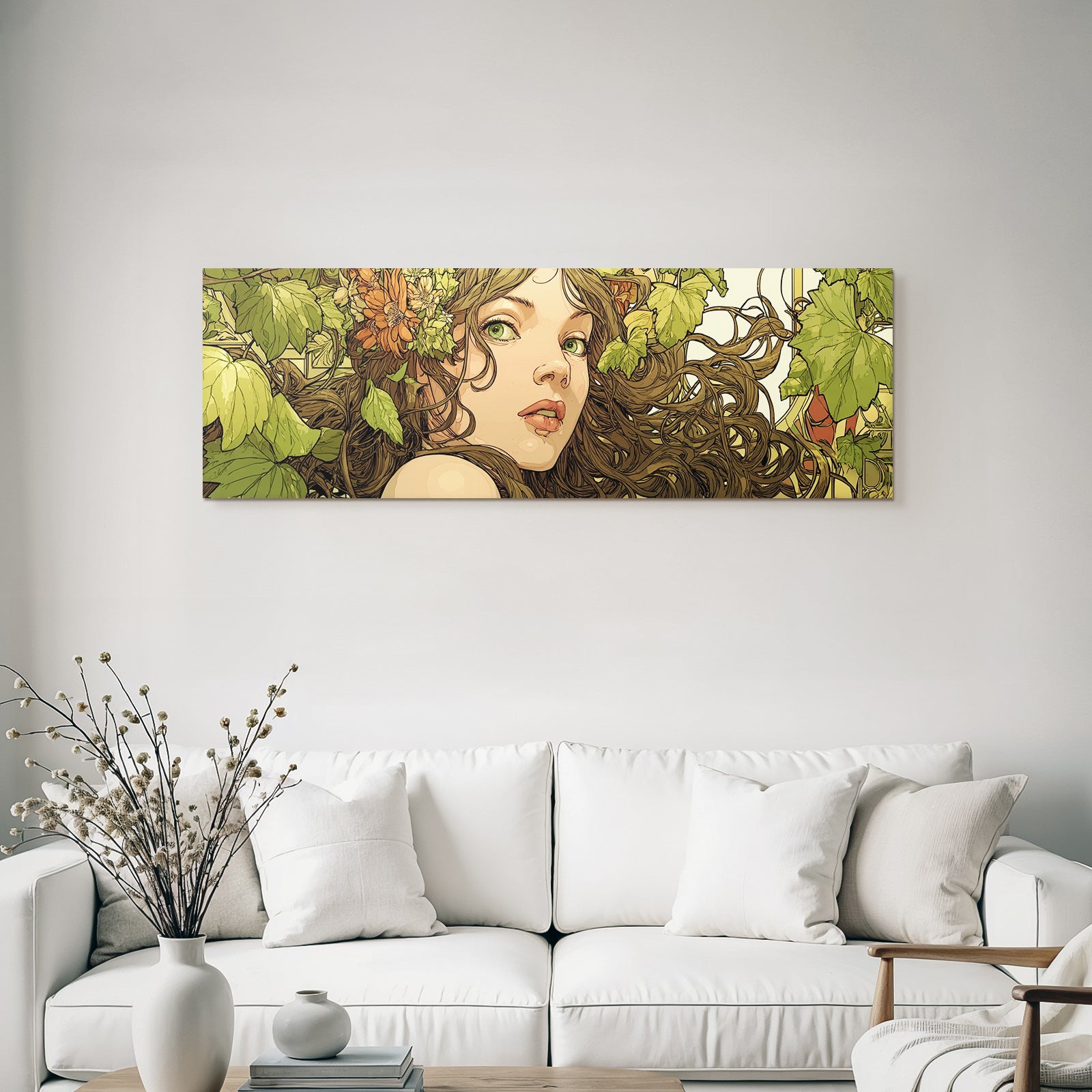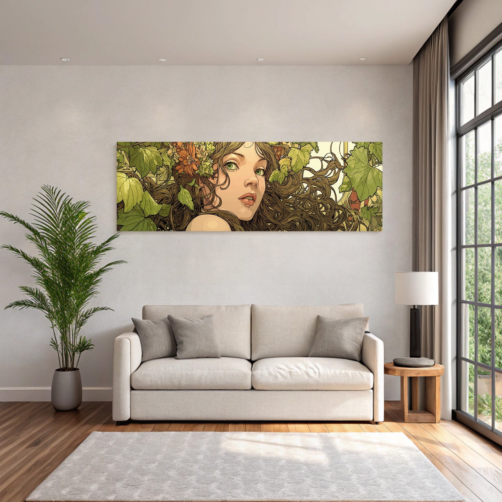 Ein einzigartiges Kunstwerk der Produktlinie FameFrame™ mit dem Titel „Frau Mit Blattwerk Und Blüten“, im Stil Jugendstil.