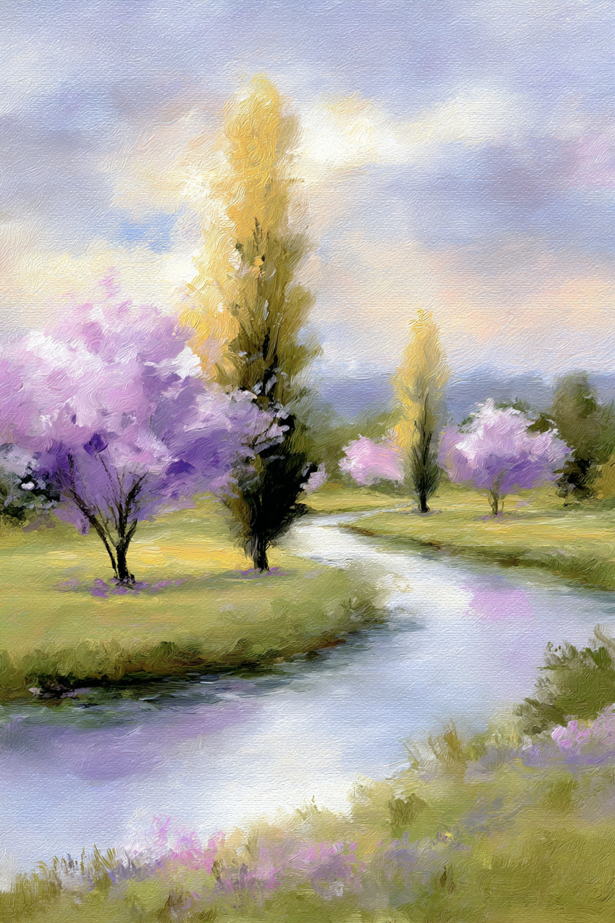 Die Kraft von „Idyllische Herbstlandschaft Am Flussufer“ liegt in seiner einzigartigen Verbindung von Farbe und Form, ganz im Sinne des Stils Jugendstil. Der FameFrame™ bietet dafür die perfekte Bühne.