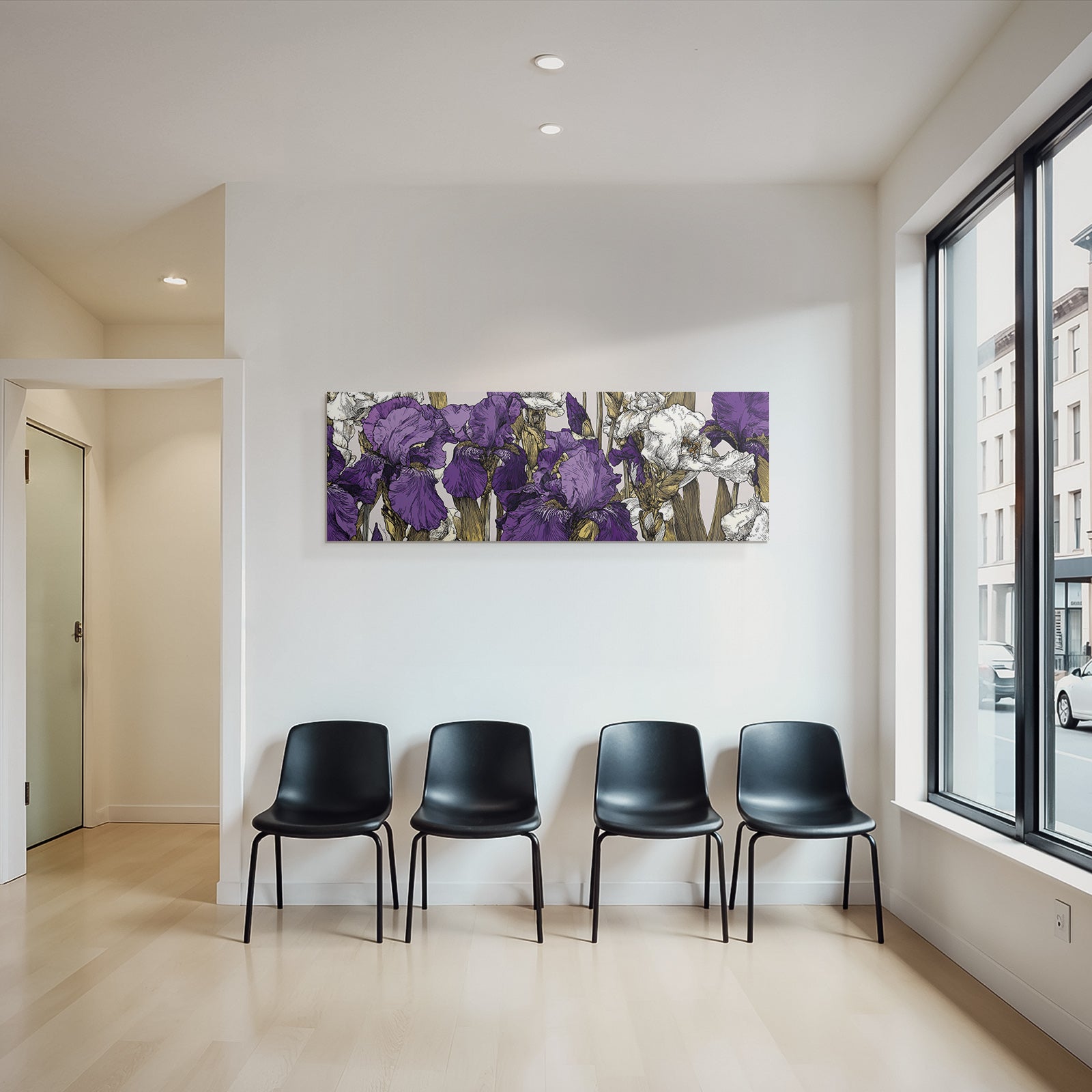 „Lila Und Weisse Iris Blumenzeichnung“ im Stil Jugendstil sorgt für stilvolle Ruhe im Schlafzimmer oder inspirierende Energie im Büro – perfekt im FameFrame™ inszeniert.